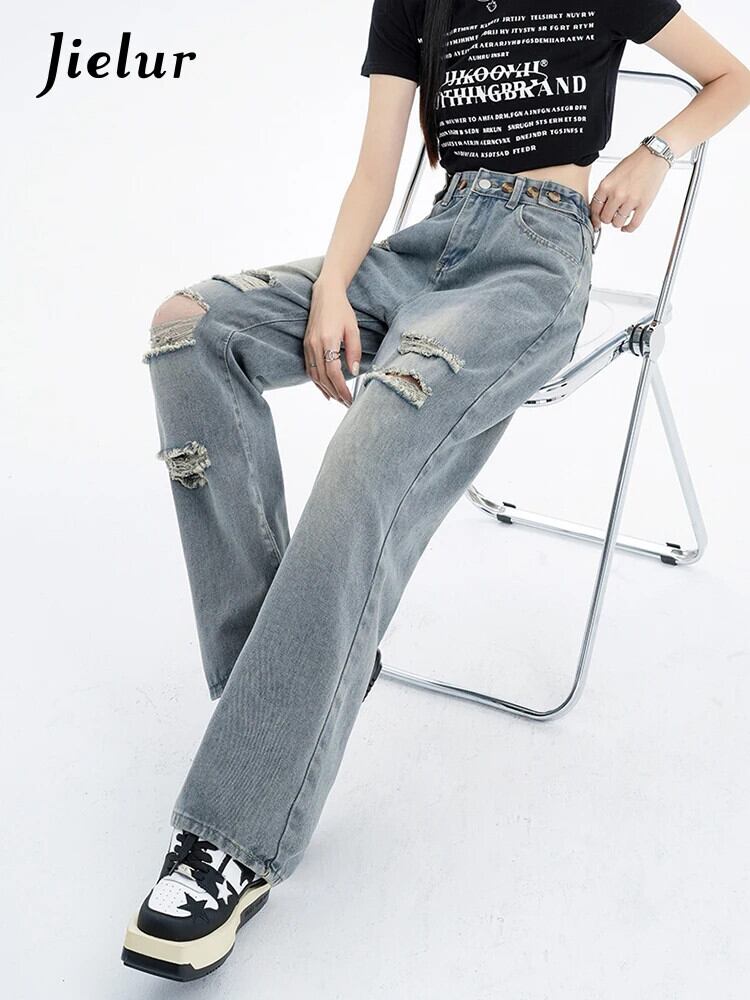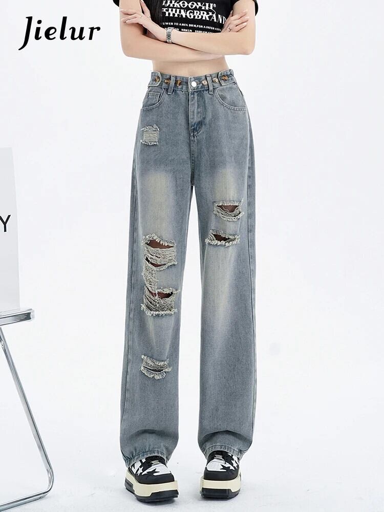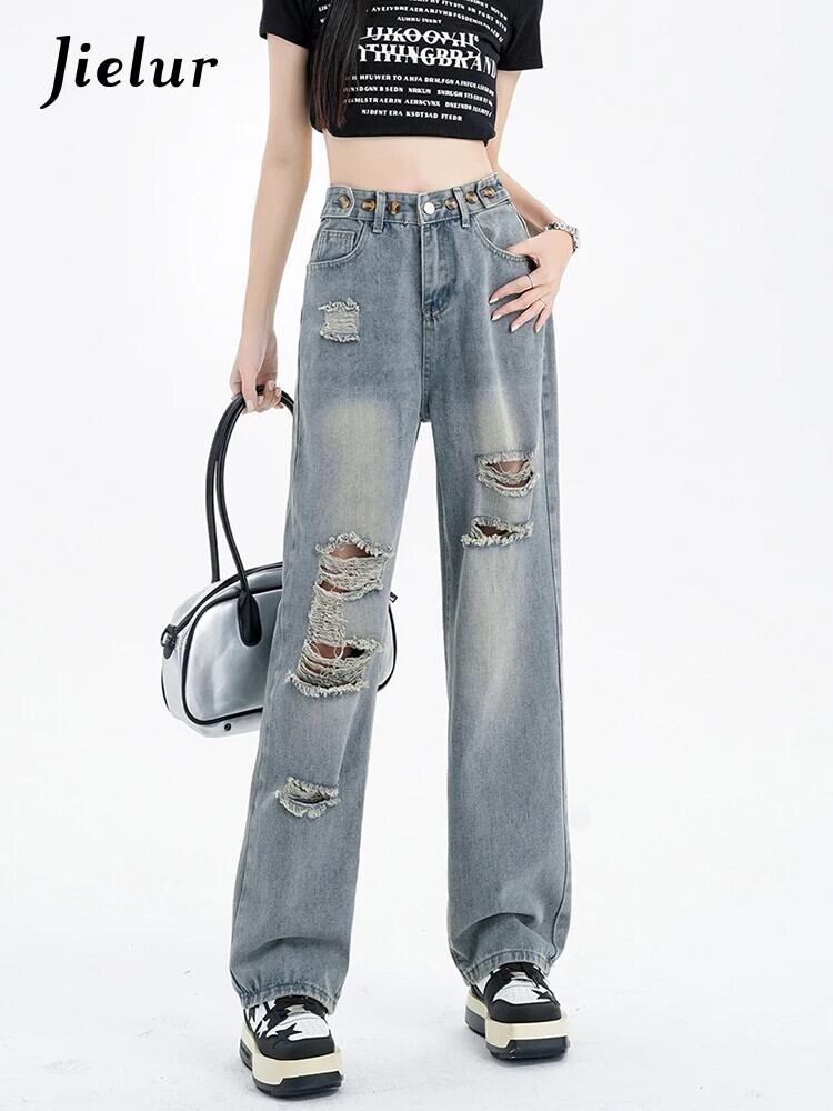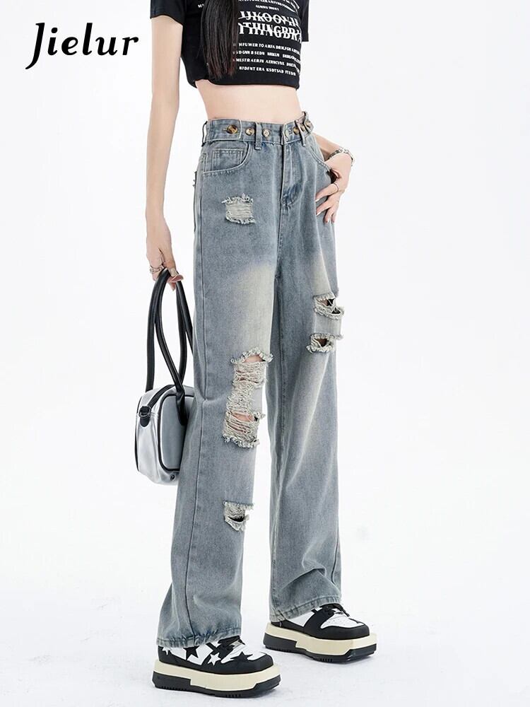 送料無料 Jielur レトロウエストリッピングジーンズストレートデニムパンツ女性だぶだぶワイドレッグジーンズ Kpop スタイル夏床ジーンズ サマー 夏物 ワイドパンツ AE12188787811881343985