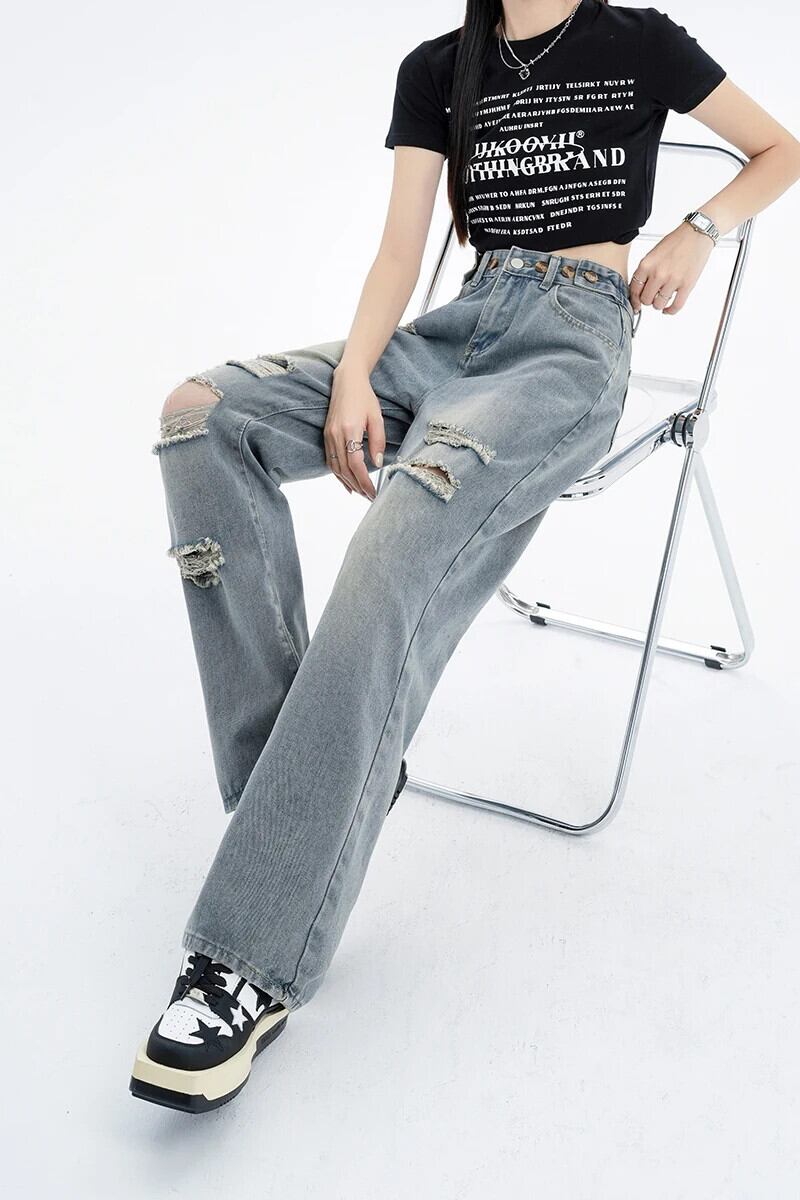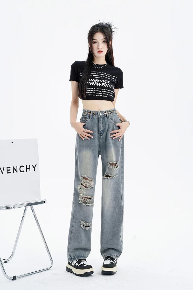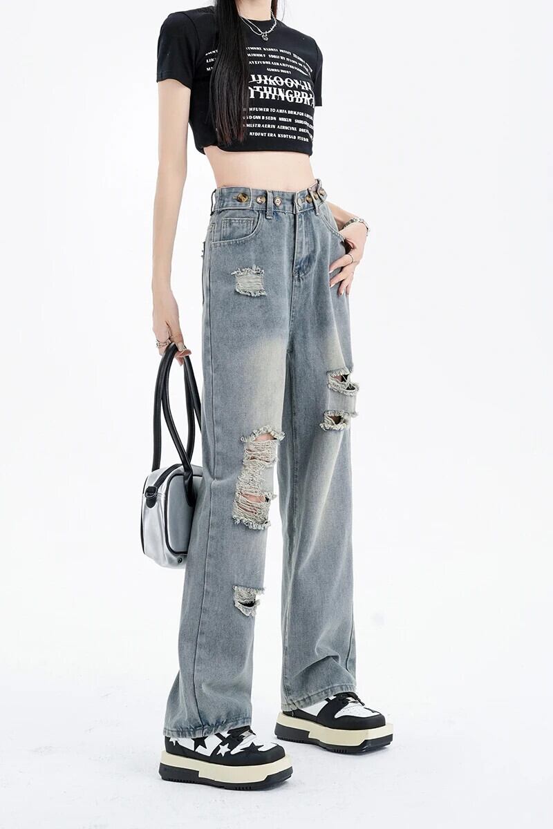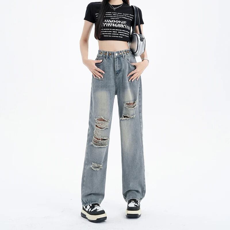 送料無料 Jielur レトロウエストリッピングジーンズストレートデニムパンツ女性だぶだぶワイドレッグジーンズ Kpop スタイル夏床ジーンズ サマー 夏物 ワイドパンツ AE12188787811881343985