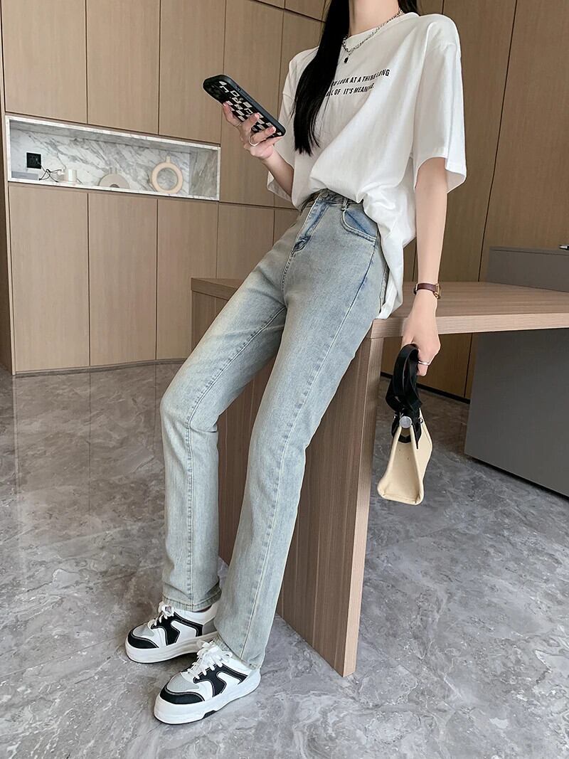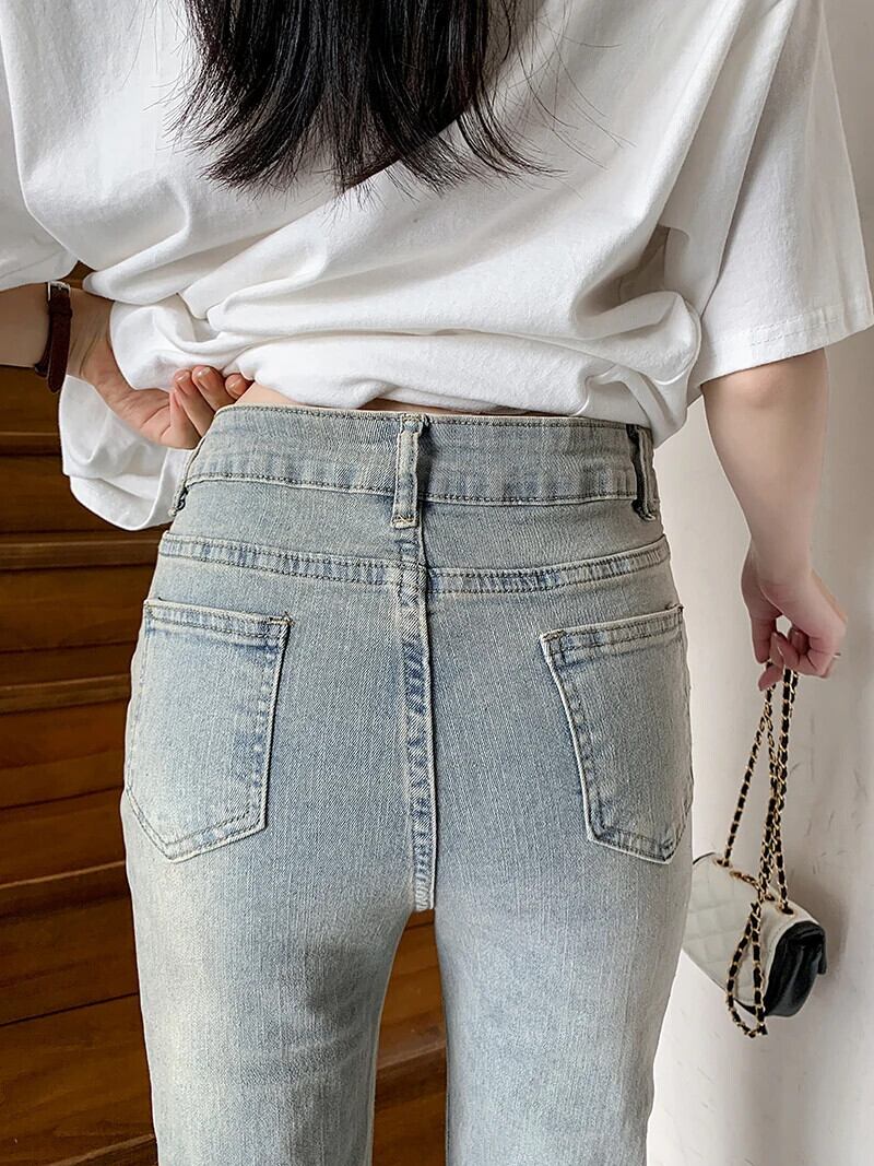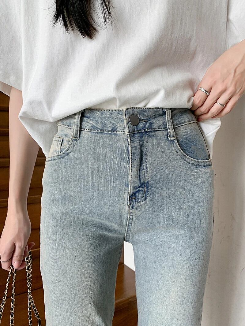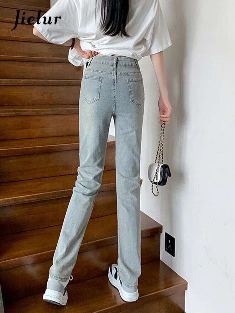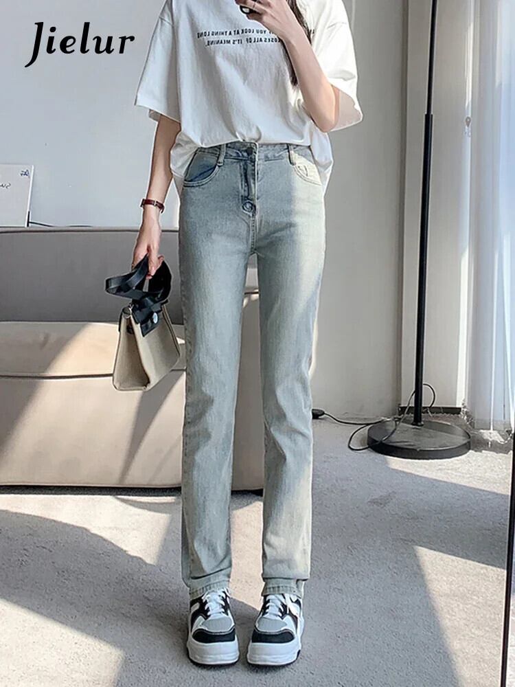 送料無料 Jielur スキニージーンズストレートレトロライトブルージーンズ女性の夏のウエストデニムパンツシックなポケットデニムパンツ女性 サマー 夏物 AE12188787824776840079