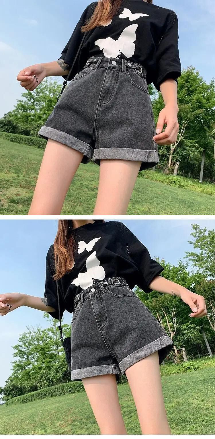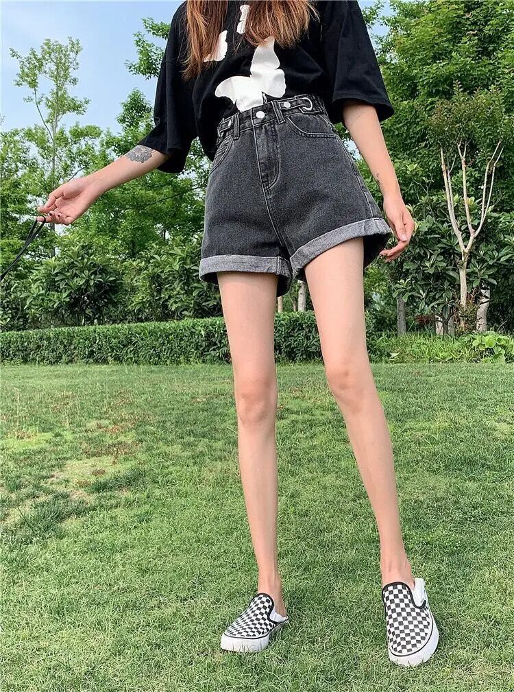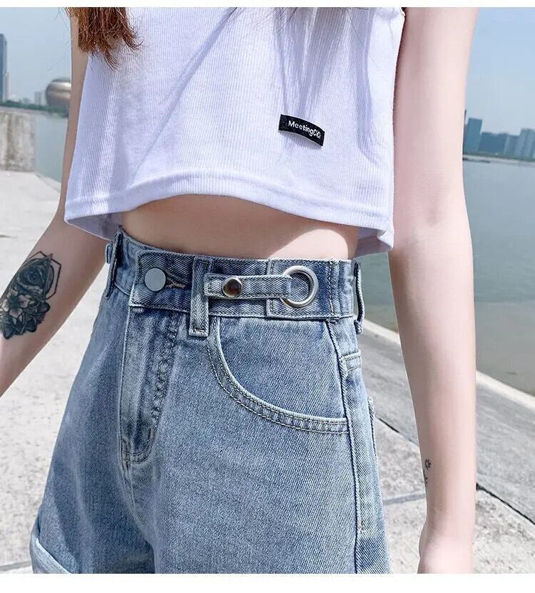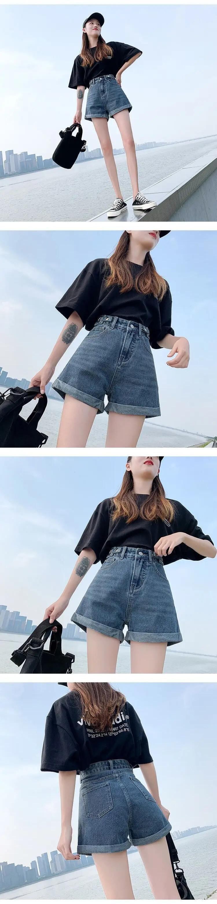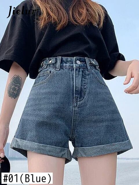送料無料 Jielur 夏の女性の調節可能なウエストスリムショートジーンズレディストリートワイドレッグショートパンツウエスト A ラインショーツ サマー 夏物 アジャスタブル ブルマー Aライン ワイドパンツ AE12188787885942417057