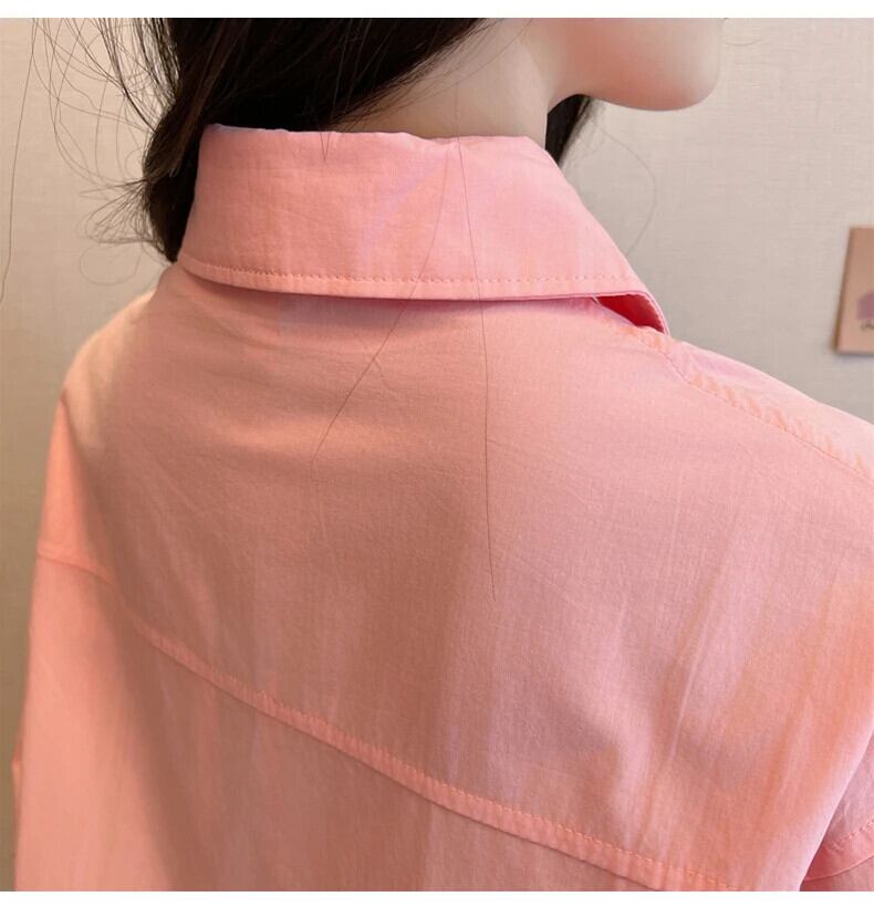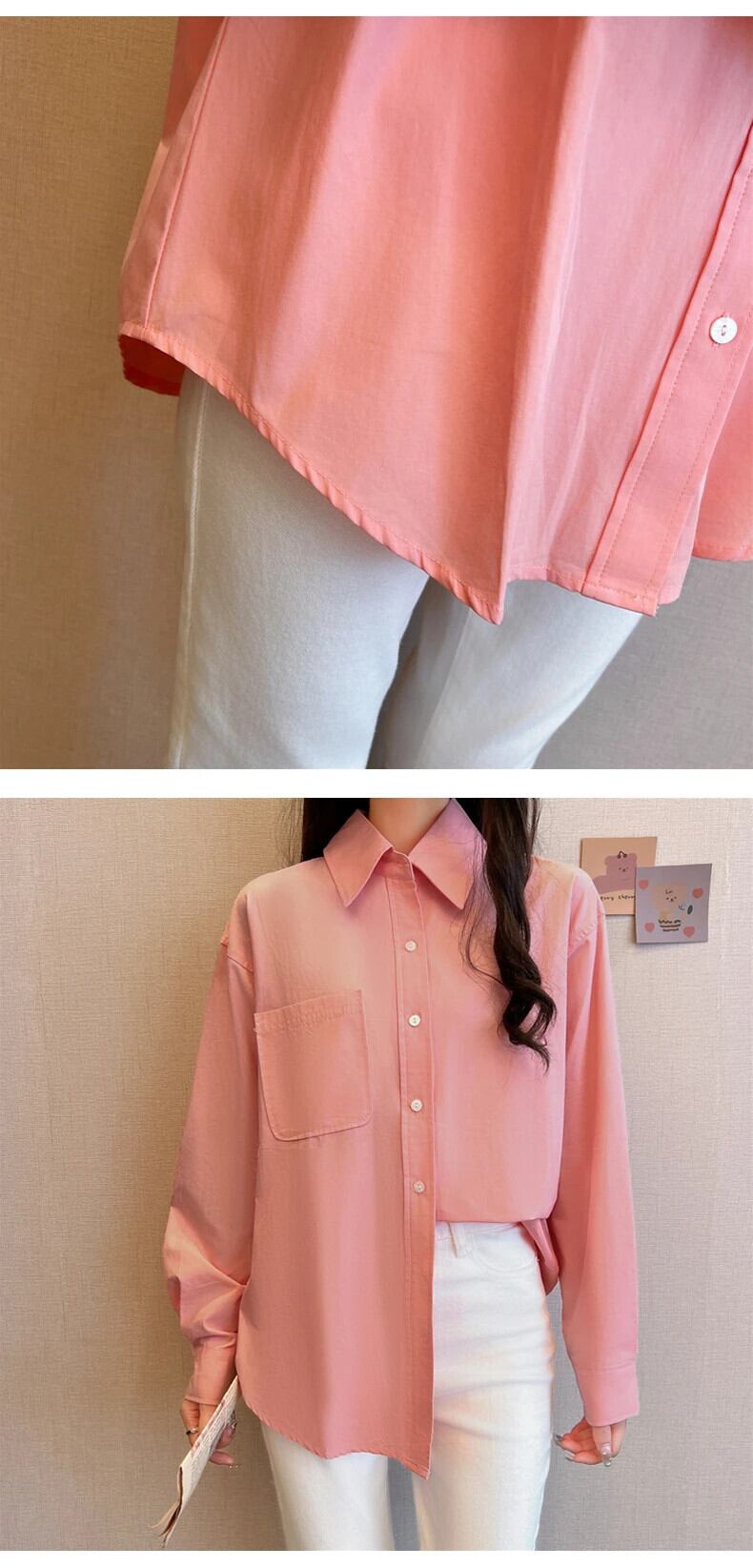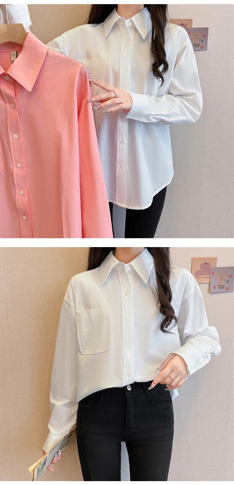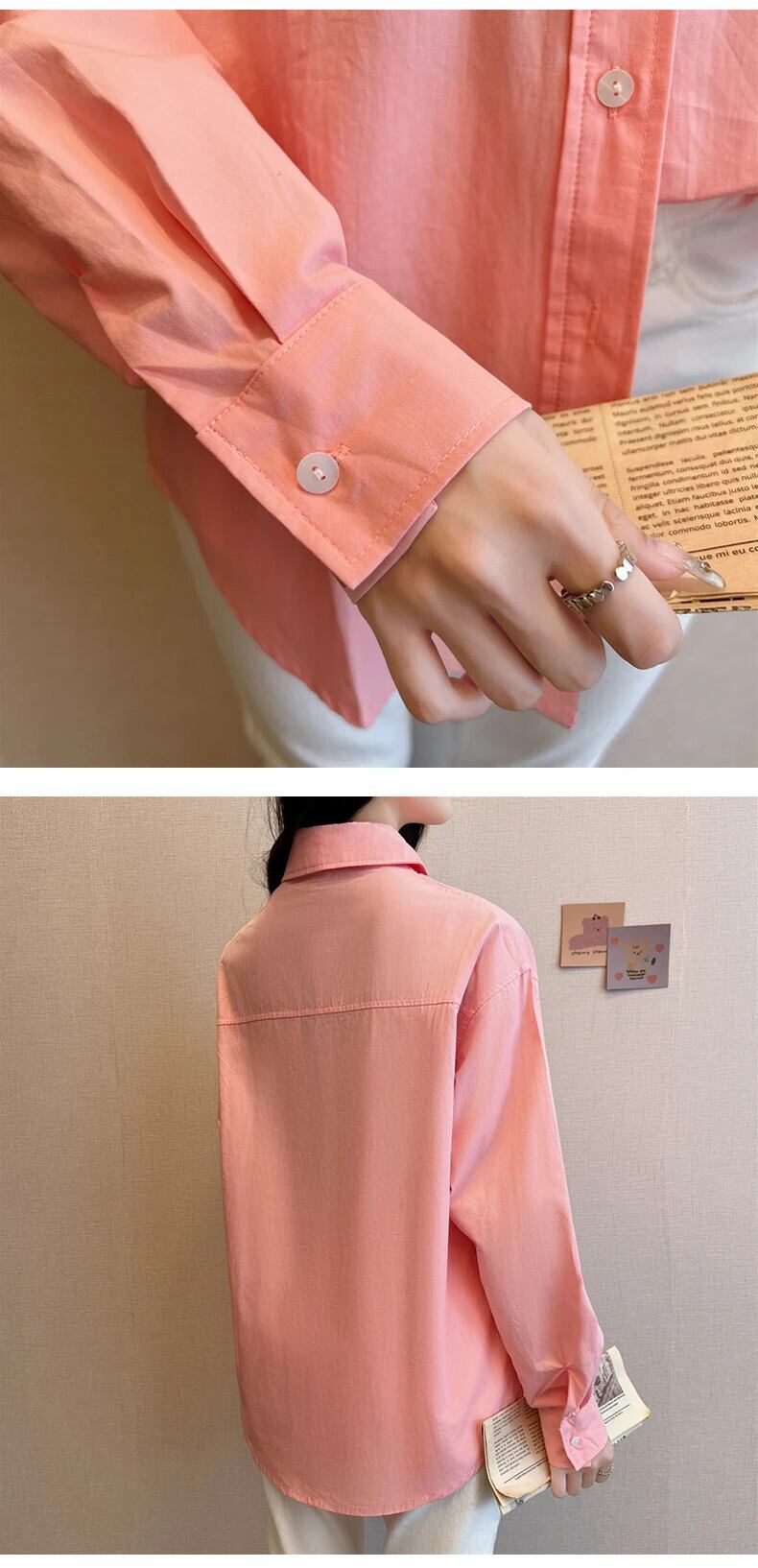 送料無料 Jielur 秋フレンチソリッドカラーの女性シャツスリムシンプルなベーシック女性シャツピンクホワイトルーズストリートトップ オータム 秋物 AE1218878782814636037