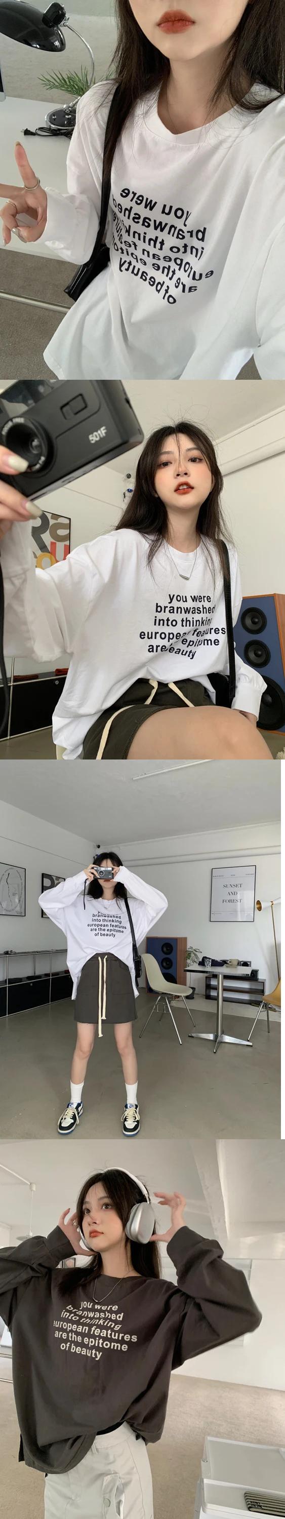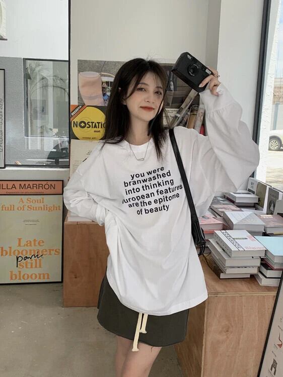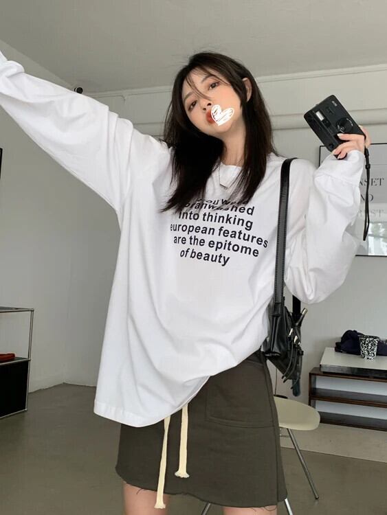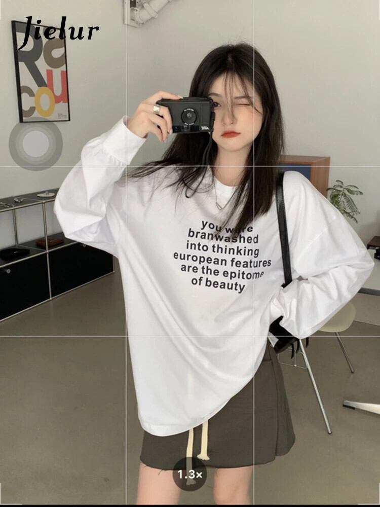 送料無料 Jielur 春ルーズ女性ブラウススリムシンプルなラウンドネック長袖ヤングホワイトグレーベーシックレディーストップ ロング スプリング 春物 Oネック AE12188787817168098489