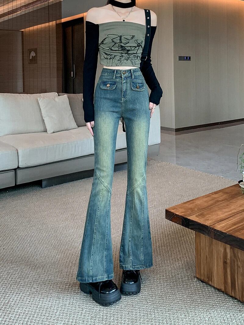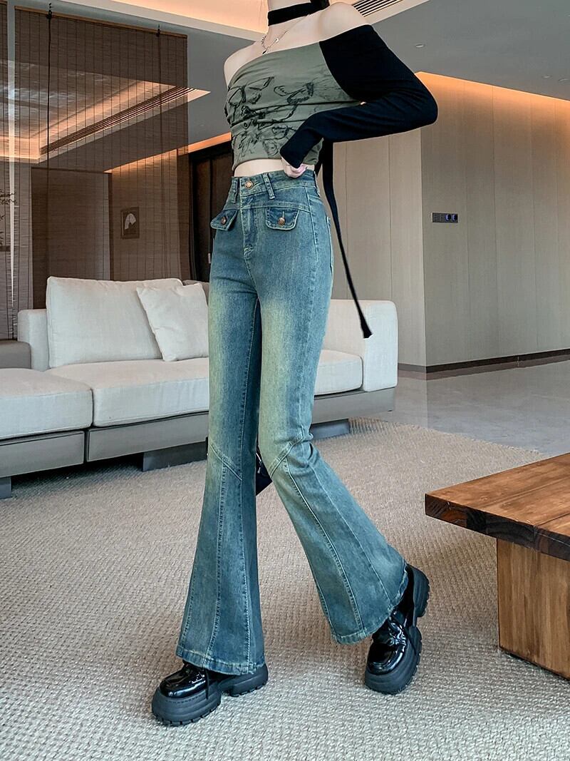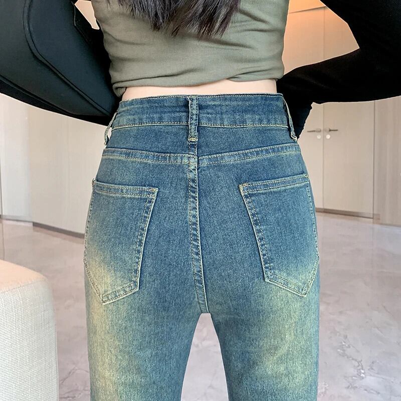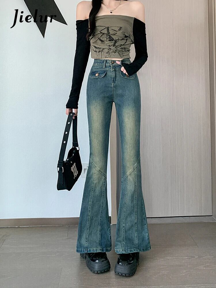送料無料 Jielur スリム秋のセクシーなシックな女性のジーンズウエストヴィンテージ女性ジーンズブルーストリートシンプルなベーシックフレアパンツ オータム 秋物 ビンテージ AE12188787880589414908