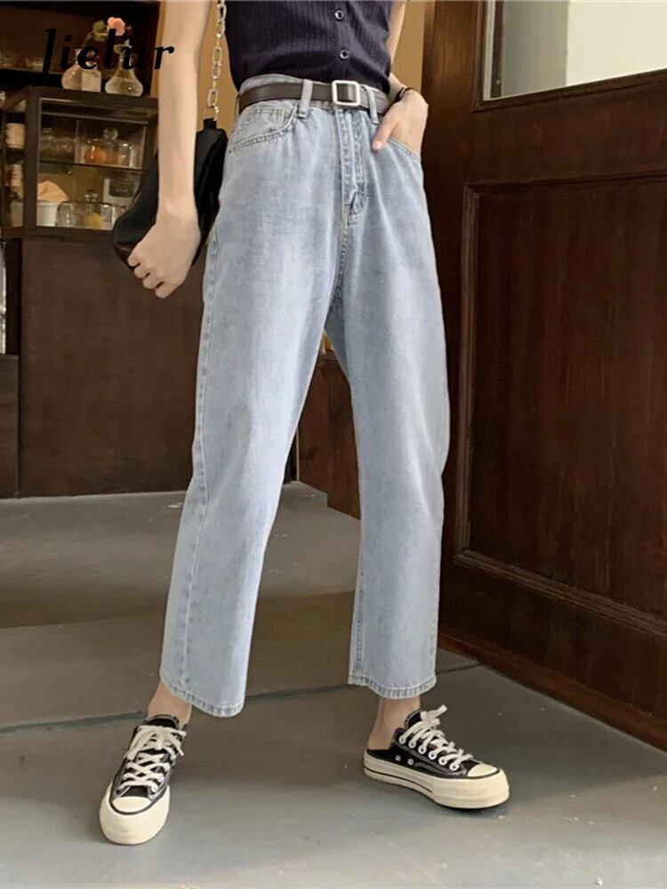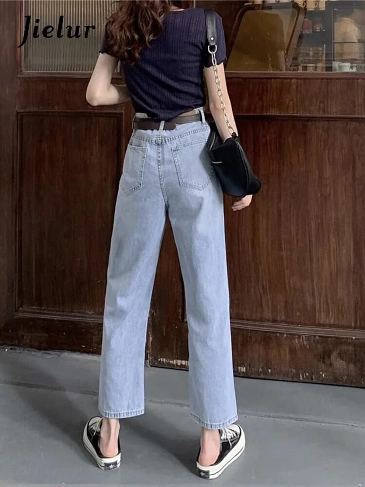 送料無料 Jielur 夏ウエストスリム女性のジーンズライトユーズド加工ストリートジーンズ女性黒のシンプルなベーシックシックなジーンズ ブラック サマー 夏物 AE1218878787612793262