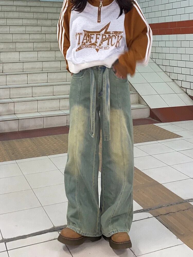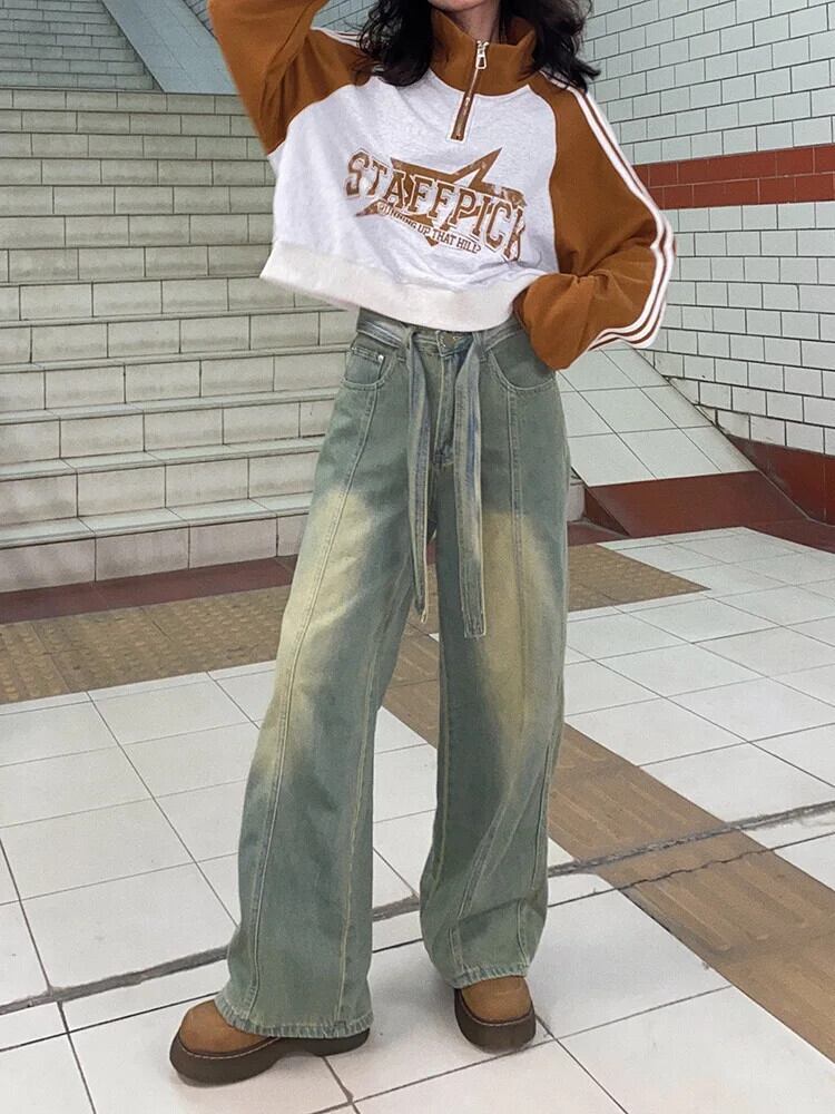 送料無料 Jielur 春アメリカンヴィンテージウエストスリムレディースジーンズストレートベーシックパンツ若々しいライトジーンズ スプリング 春物 ビンテージ AE12188787813754604116