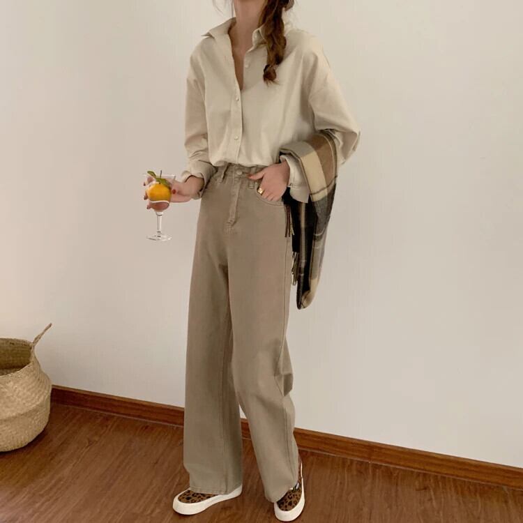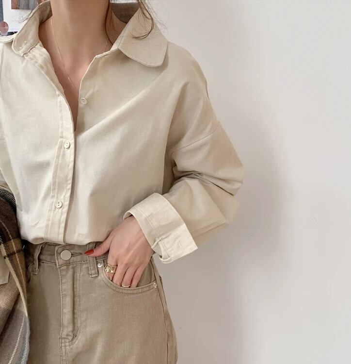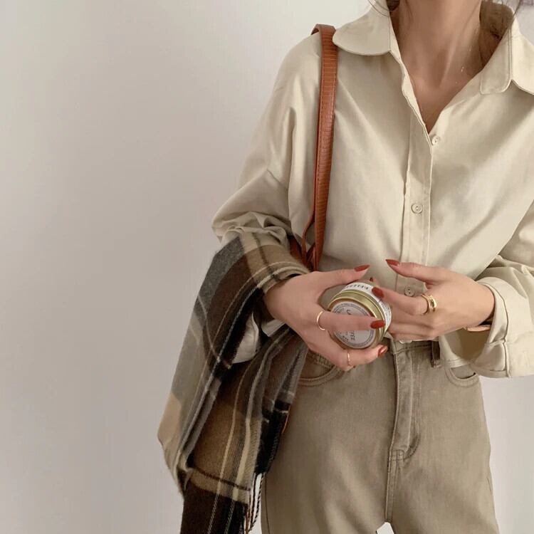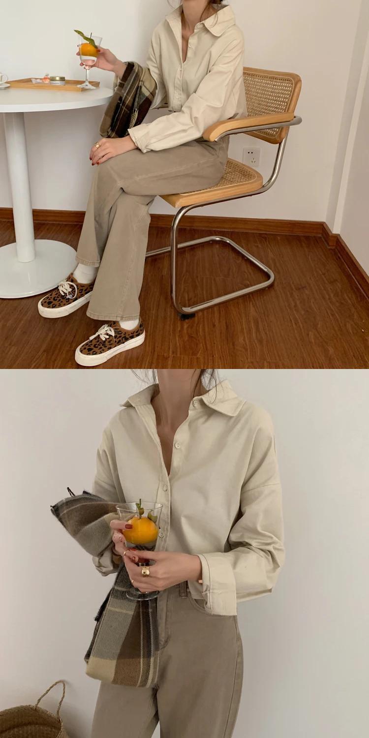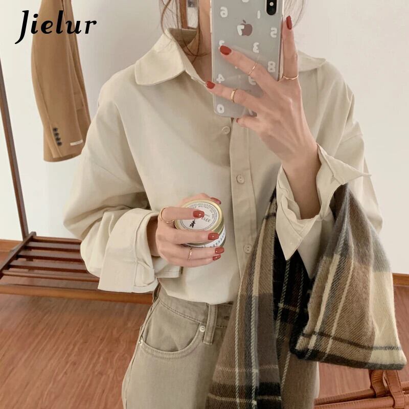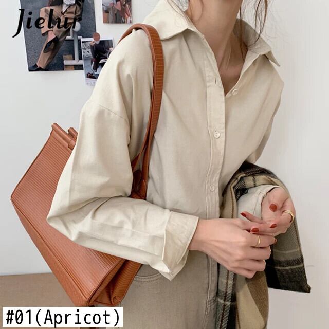 送料無料 Jielur 無地レディシャツ女性トップスターンダウンカラーブラウス長袖秋レトロレジャーアプリコット ロング オータム 秋物 ソリッドカラー AE12188787897396837733