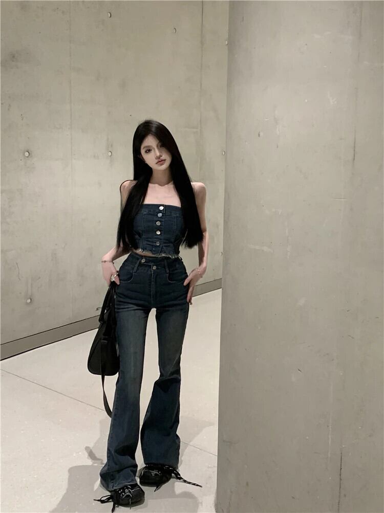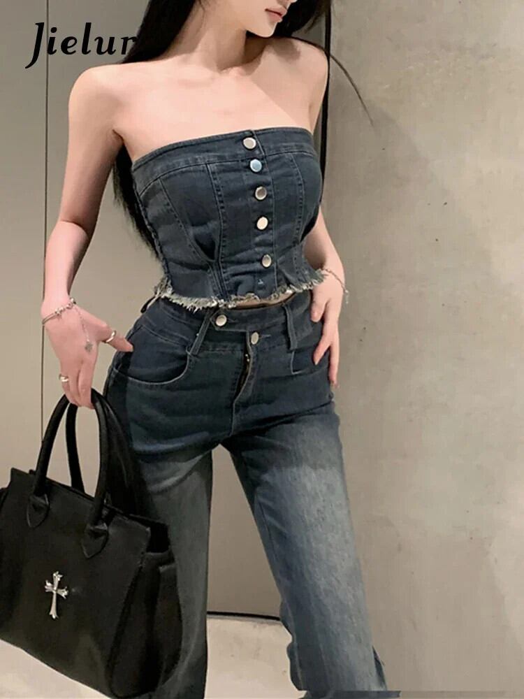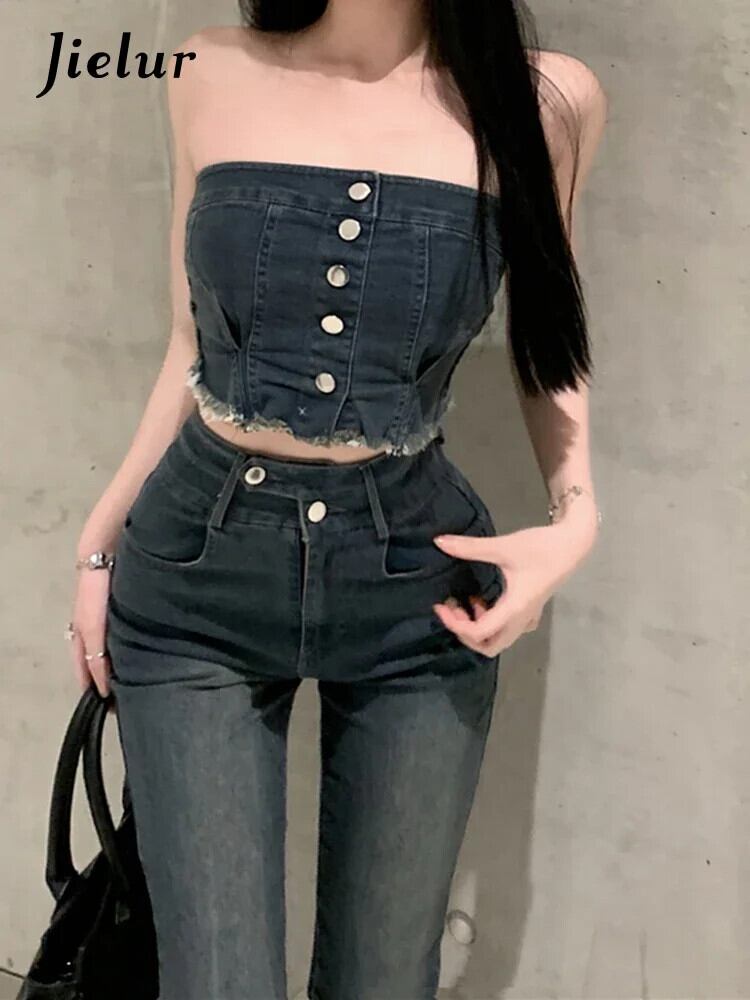 送料無料 Jielur ツーピース夏ウエストスリム女性のジーンズセクシーなジーンズ女性 Chicly ストリートノースリーブトップ サマー 夏物 AE12188787821248245584