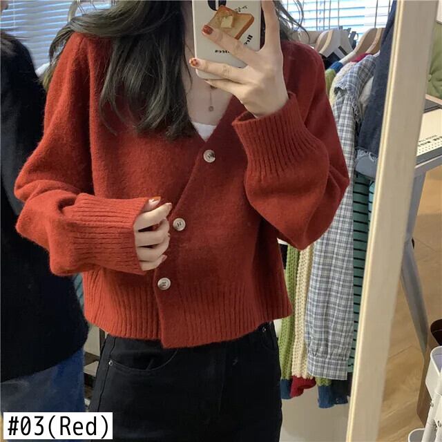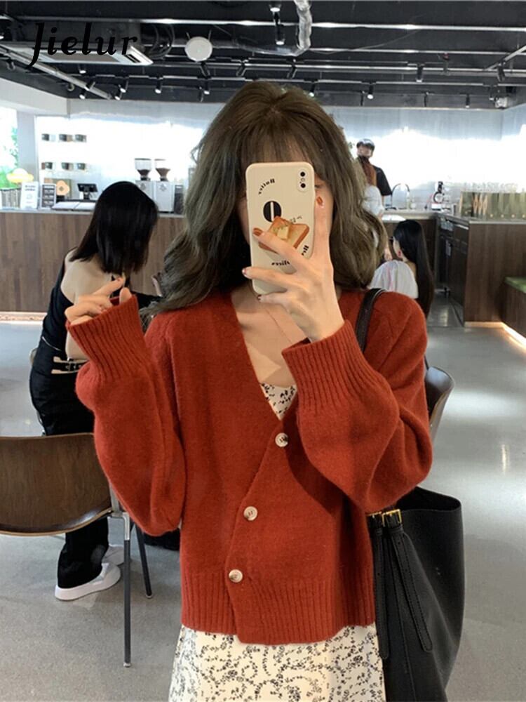 送料無料 Jielur 赤 Chicly セーターニットルーズ女性カーディガン秋 V ネックシングルブレスト無地カーディガン レッド オータム 秋物 Vネック ソリッドカラー AE12188787811024881271