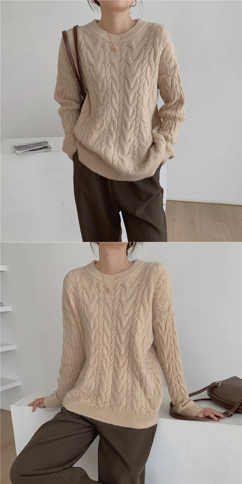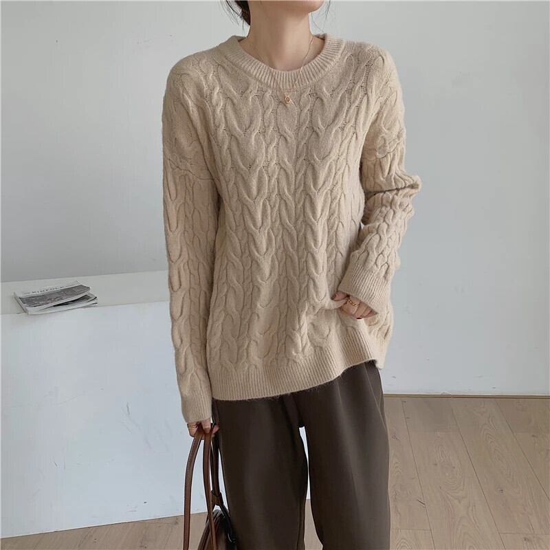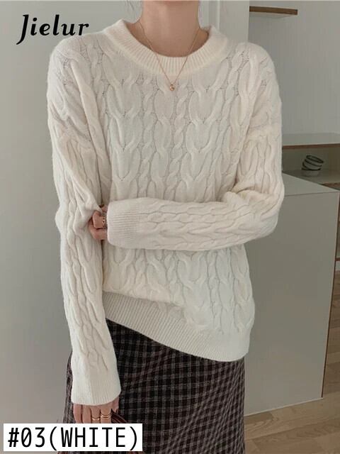 送料無料 Jielur 冬の女性のセータールーズレトロツイストホワイトオレンジセーター長袖ニットプルオーバートップ ロング ウィンター 冬物 AE12188787880550052206