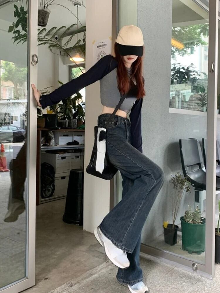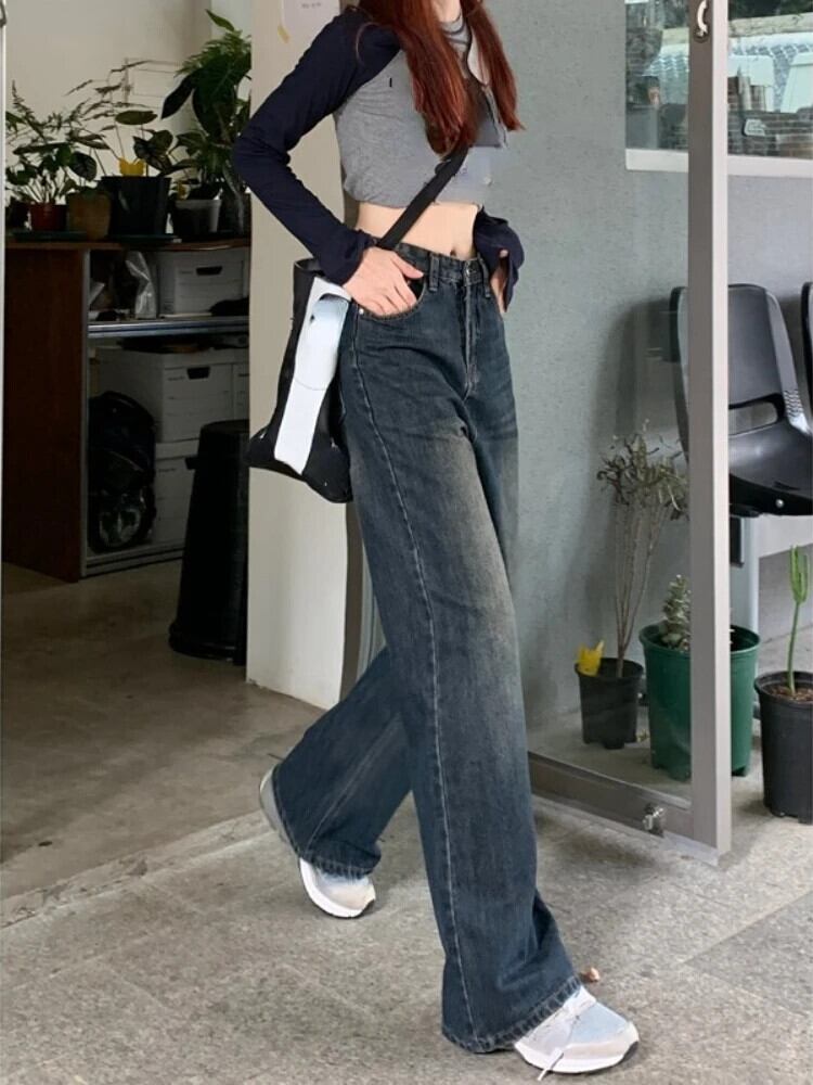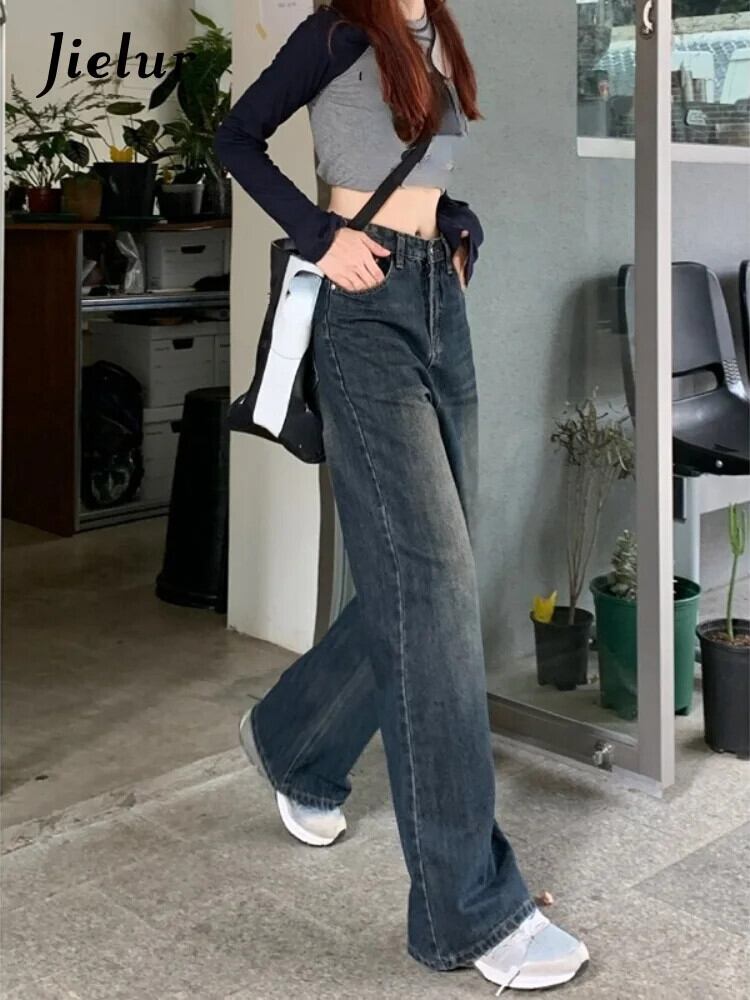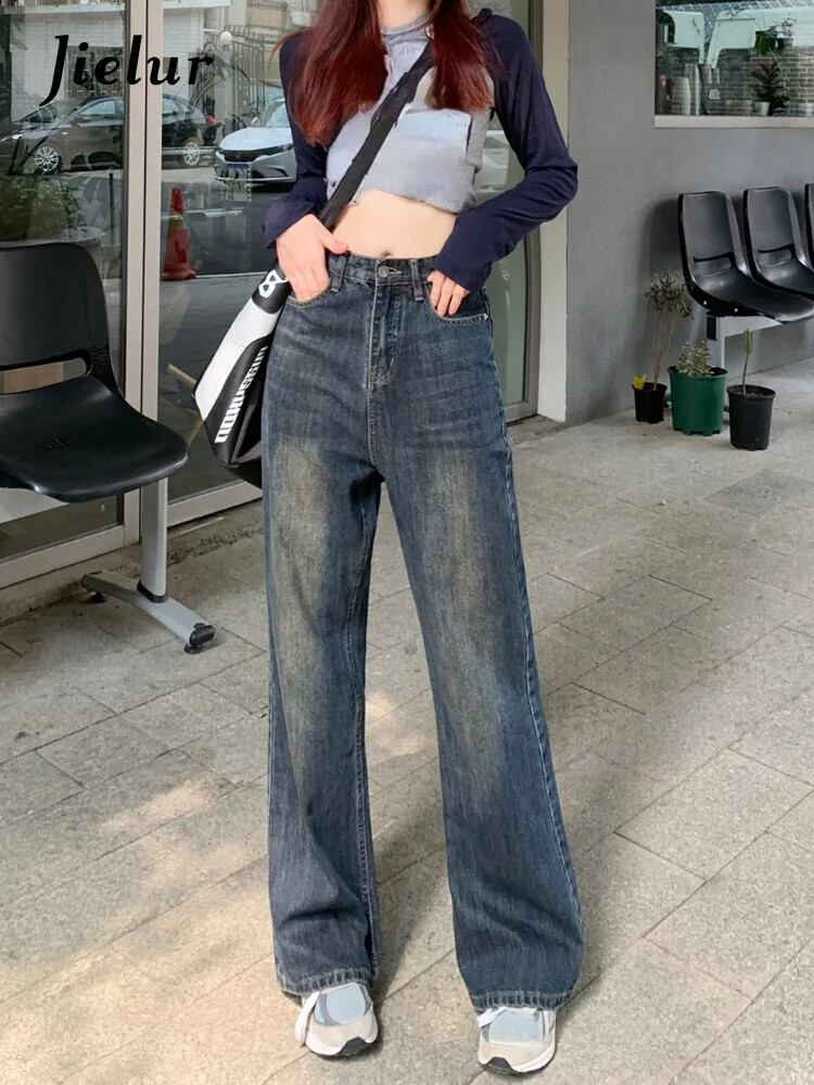 送料無料 Jielur ストリートワイド脚ジーンズ女性ヴィンテージ Y2k だぶだぶのデニムズボンウエストストレートロングジーンズ春 スプリング 春物 ワイドレッグ ワイドパンツ ビンテージ AE12188787893509135649