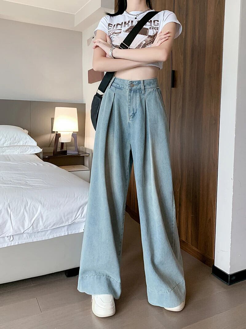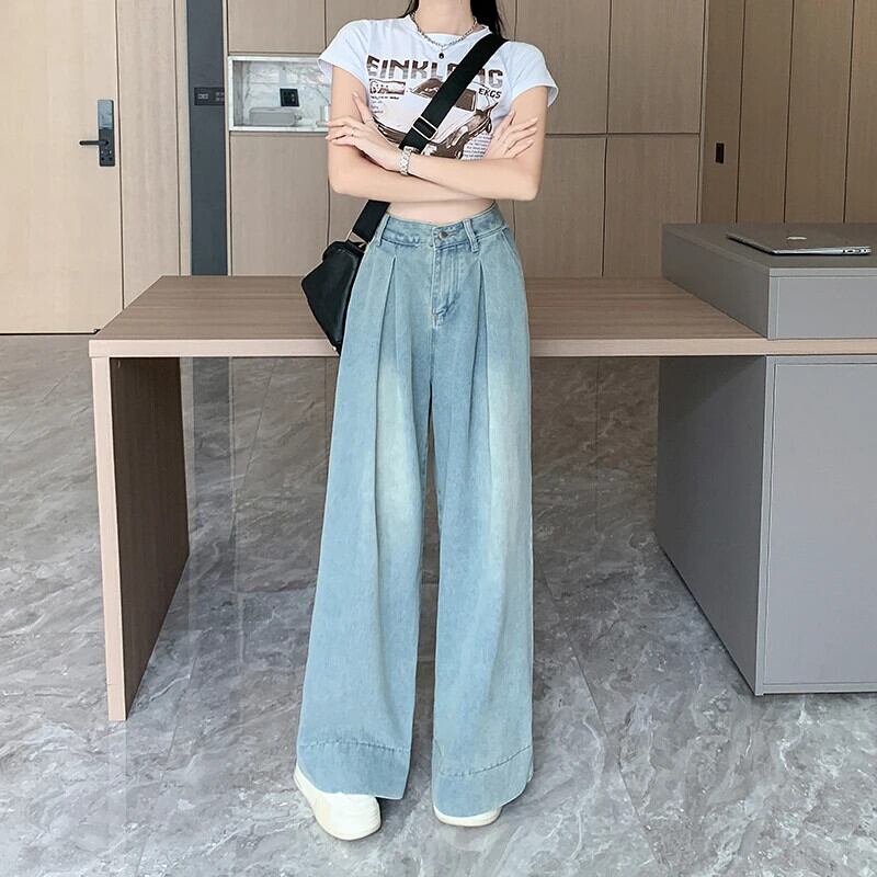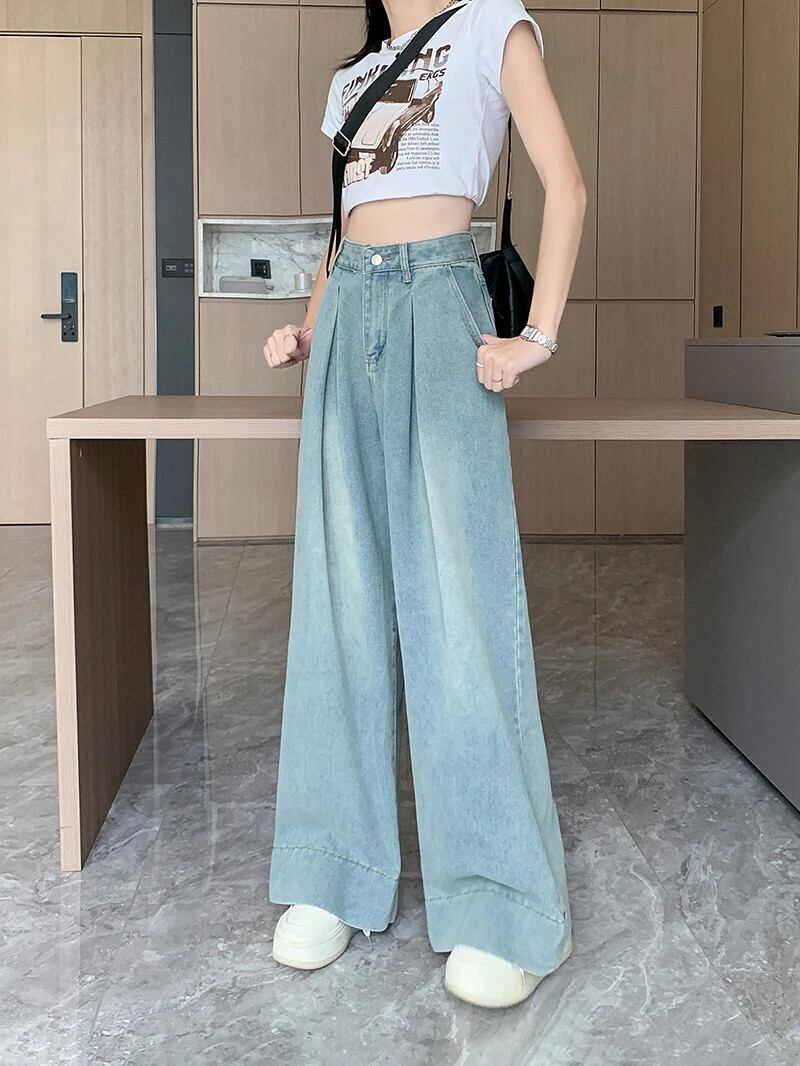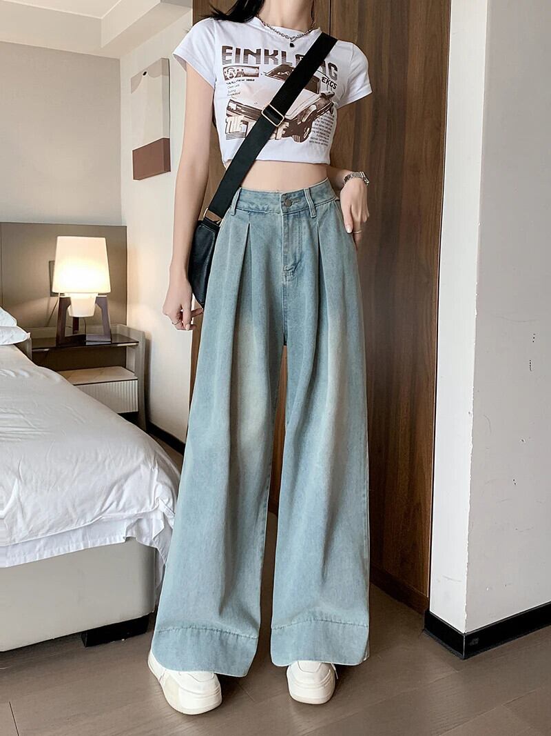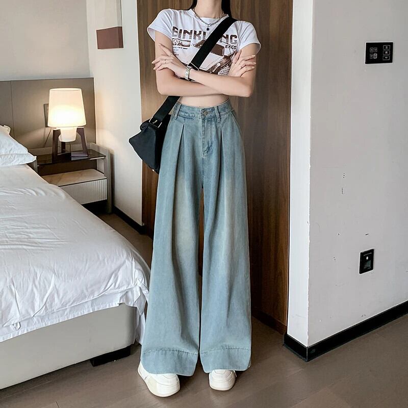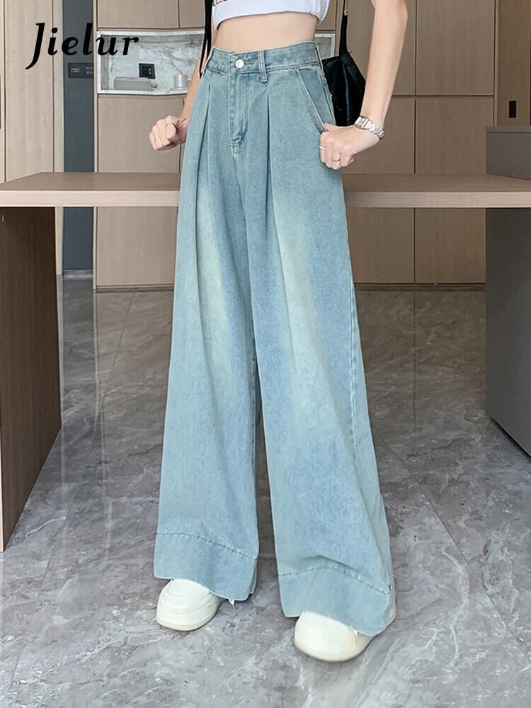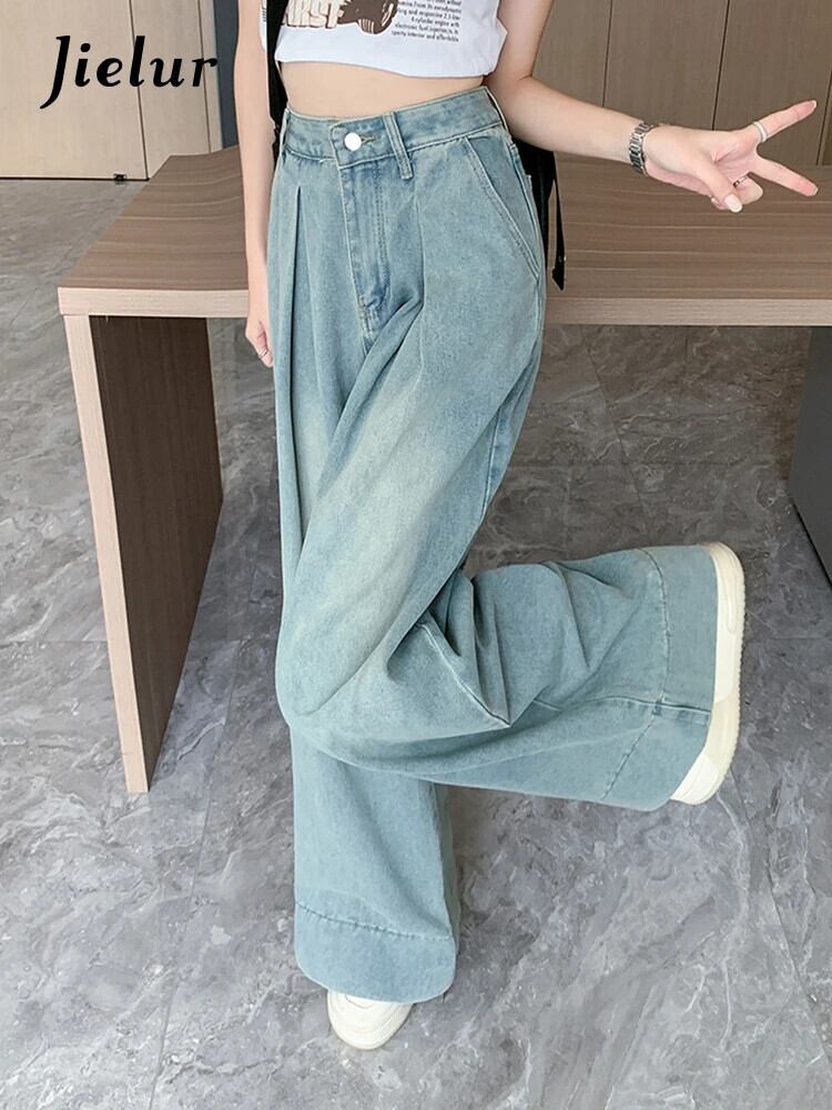 送料無料 Jielur ヴィンテージユーズド加工ルーズ女性ジーンズアメリカンストリートウエストスリムベーシックシンプルな全身ジーンズ ビンテージ AE12188787883899265875