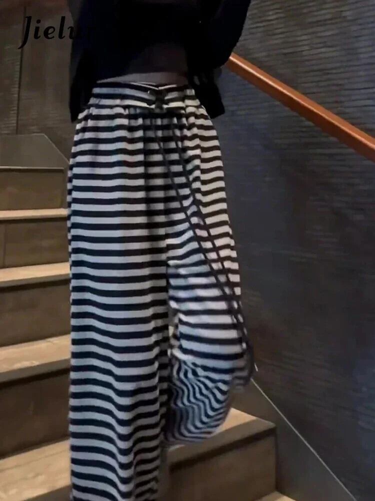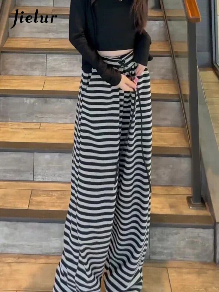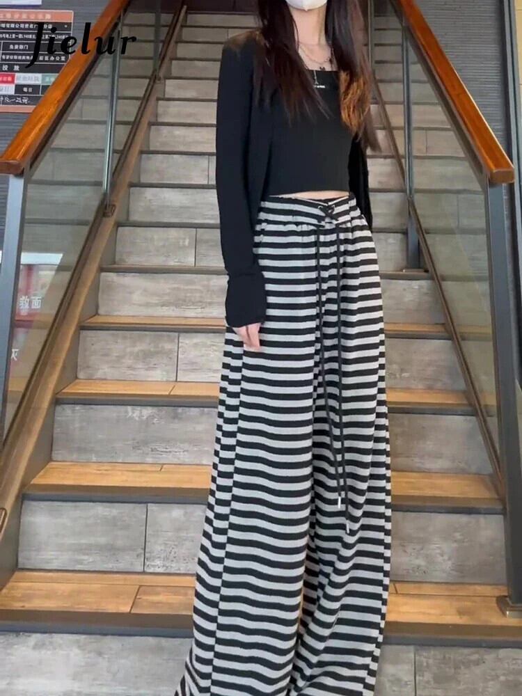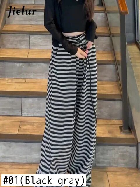 送料無料 Jielur ウエストパンツスリムルーズサイドストライプの女性のパンツベーシックブラックグレーストリートサマーパンツ女性 夏物 AE12188787844624073611