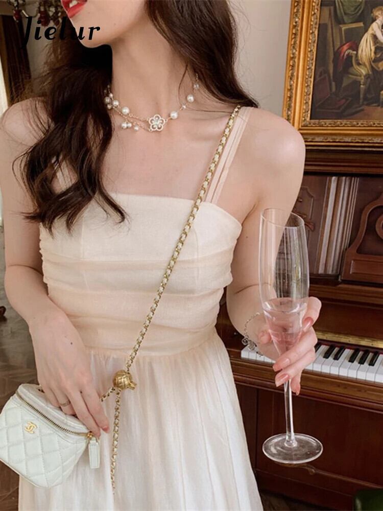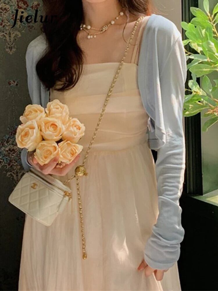 送料無料 Jielur フレンチソリッドカラーストラップレスドレス夏スリムスイートドレスシンプルベーシックツーピース長袖トップ ロング 大人ガーリー スウィート キュート カジュアル サマー 夏物 AE12188787818162605448
