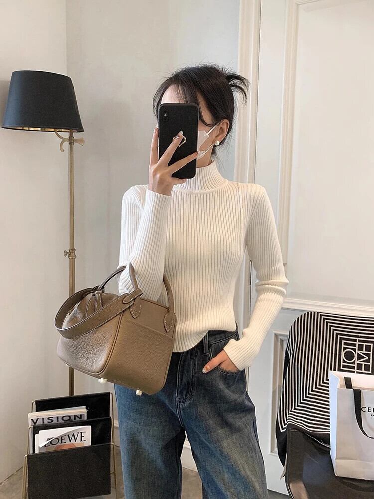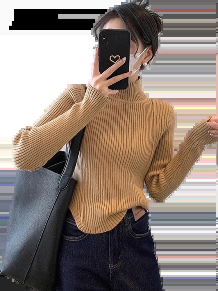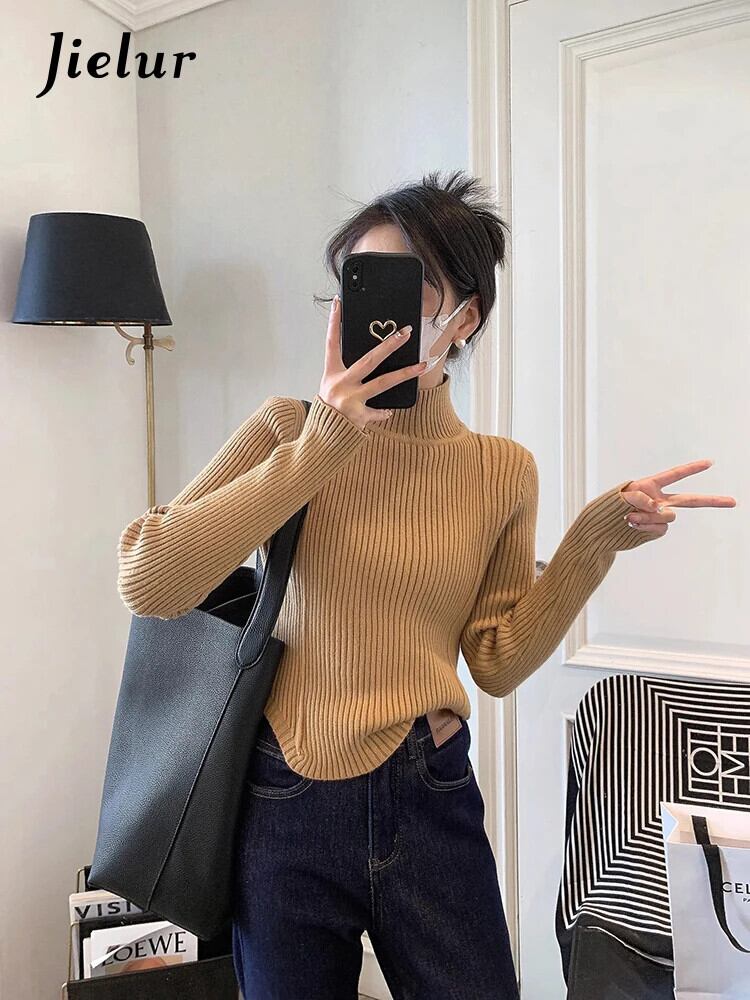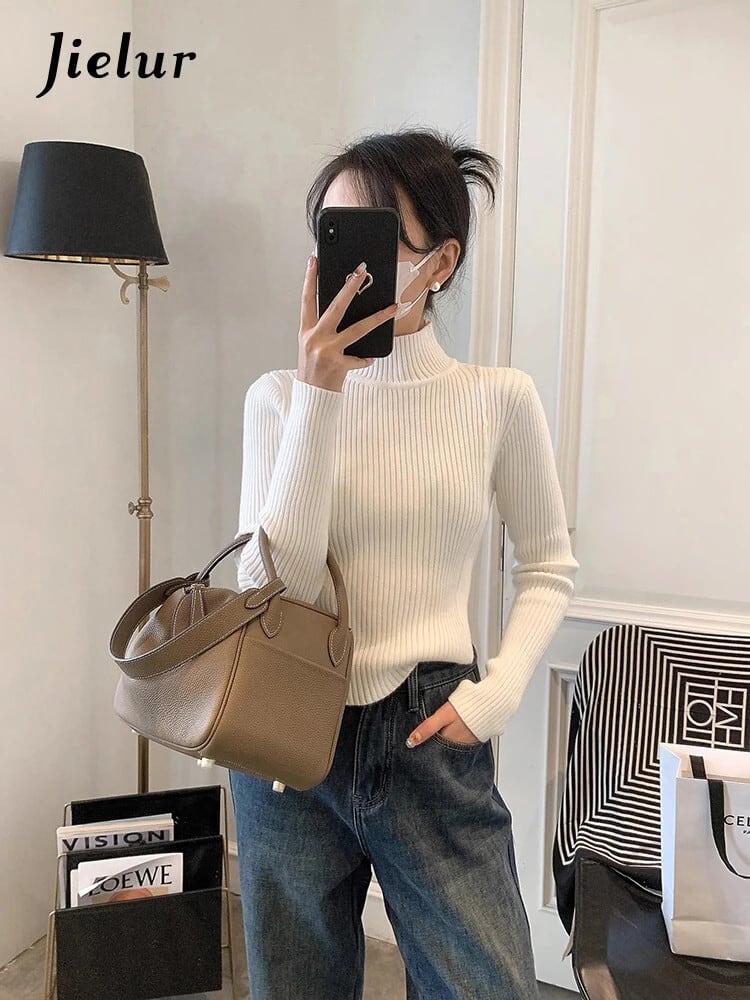 送料無料 Jielur 春無地スリム女性プルオーバーシンプルなベーシックストリートニット女性プルオーバー白黒カーキセーター ホワイト ブラック スプリング 春物 ソリッドカラー AE12188787896783489868