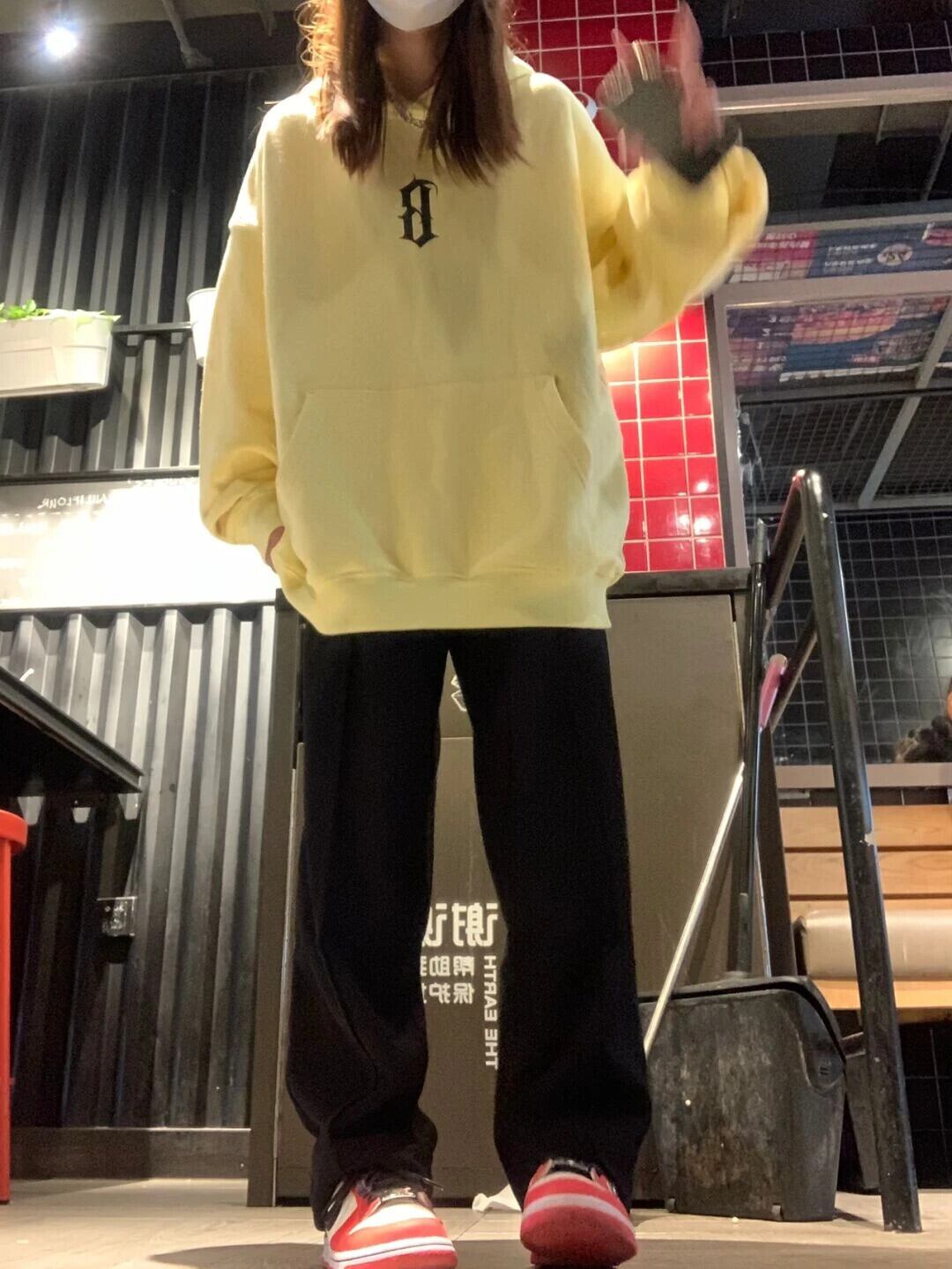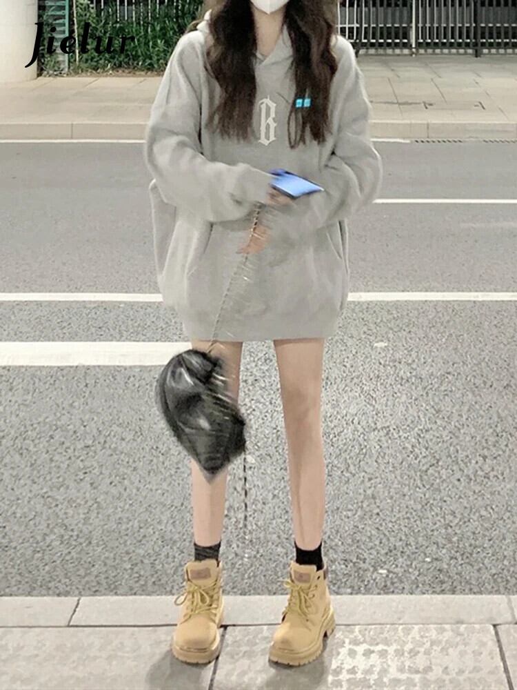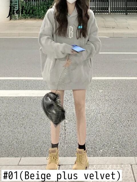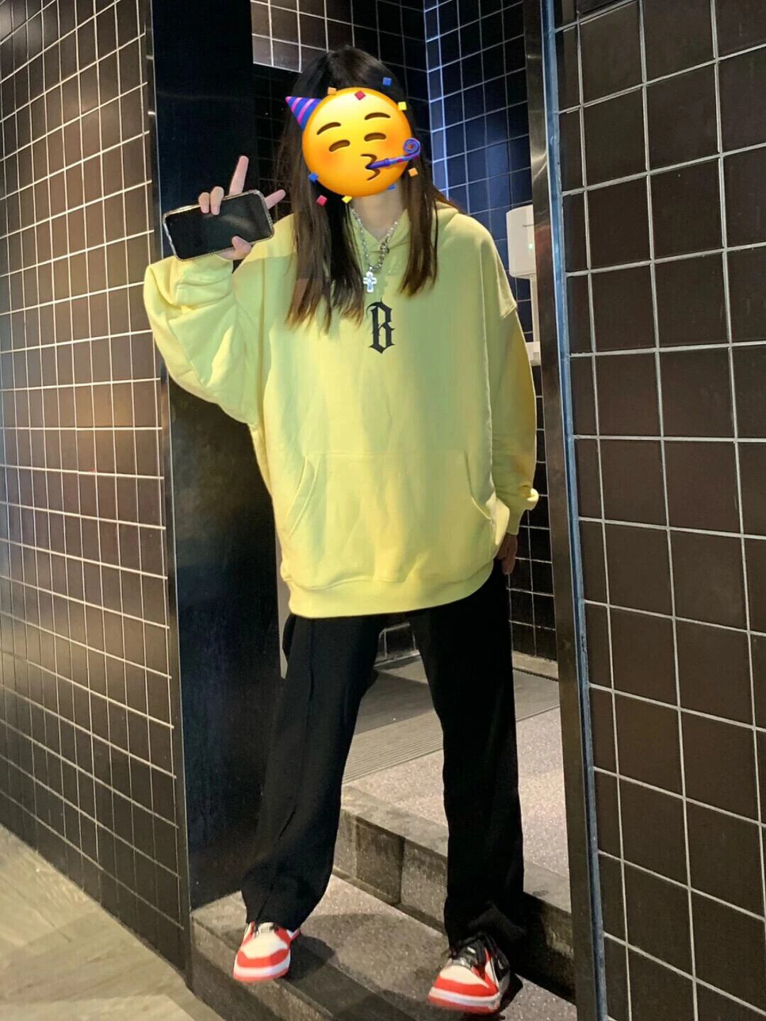 送料無料 Jielur 秋の手紙トレーナーフリースフード付きトップルーズクールレディースパーカープルオーバー Y2K イエローパーカー M-XXL オータム 秋物 AE12188787810372234899