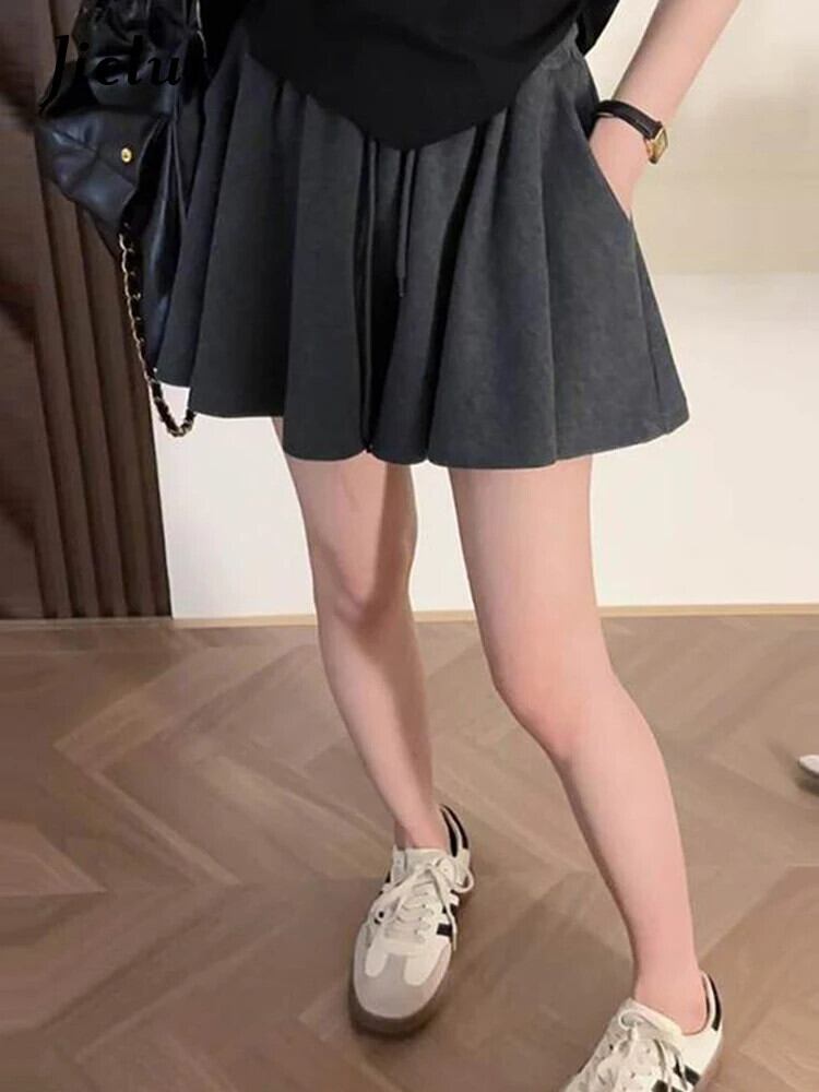 送料無料 Jielur 夏無地スリム女性のショーツルーズショーツ女性黒グレーアプリコットシンプルなベーシックシックなショーツ ブラック サマー 夏物 ブルマー ソリッドカラー AE12188787864537584649