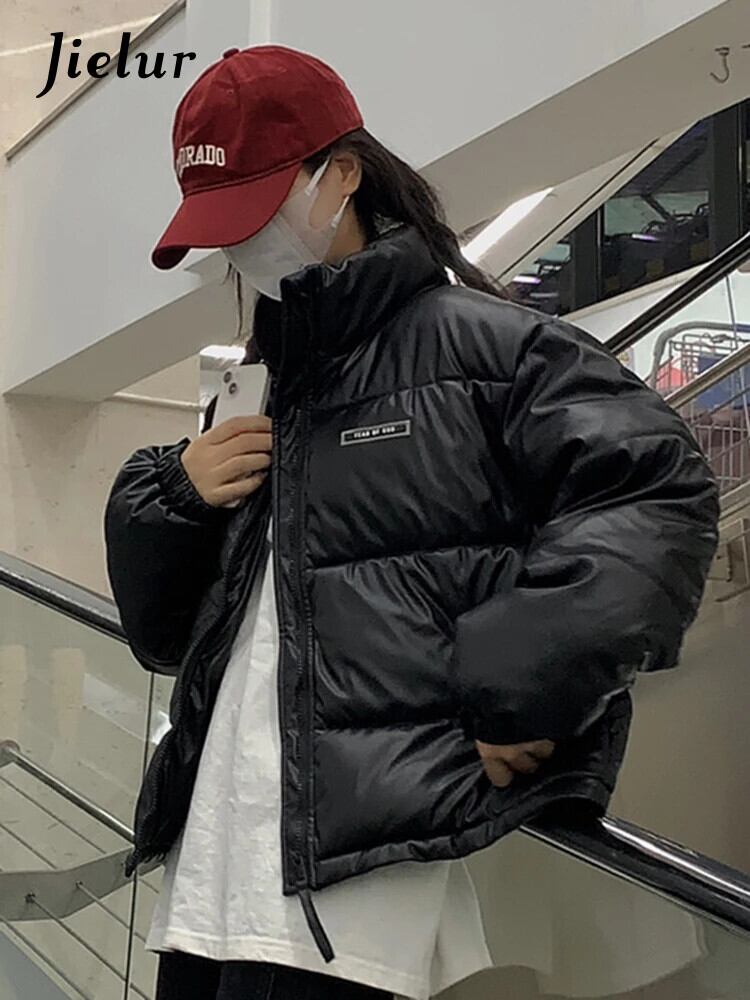 送料無料 Jielur 黒ルーズ無地厚く暖かいパーカーベーシックシンプルシックなジッパー 3 色の女性パーカー ブラック ソリッドカラー AE12188787862457894041