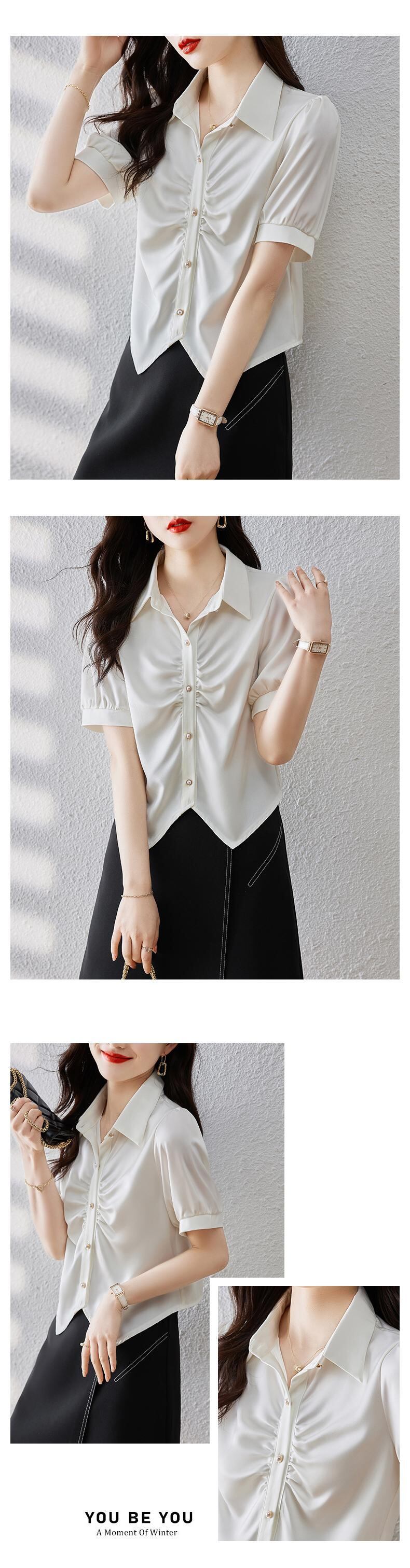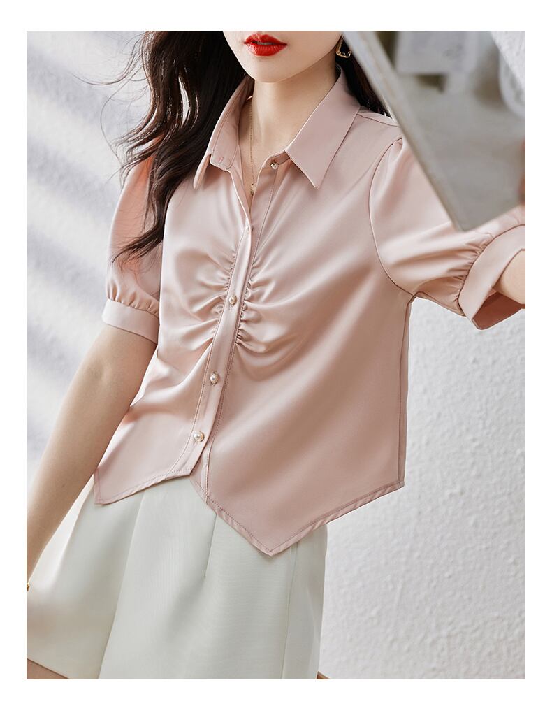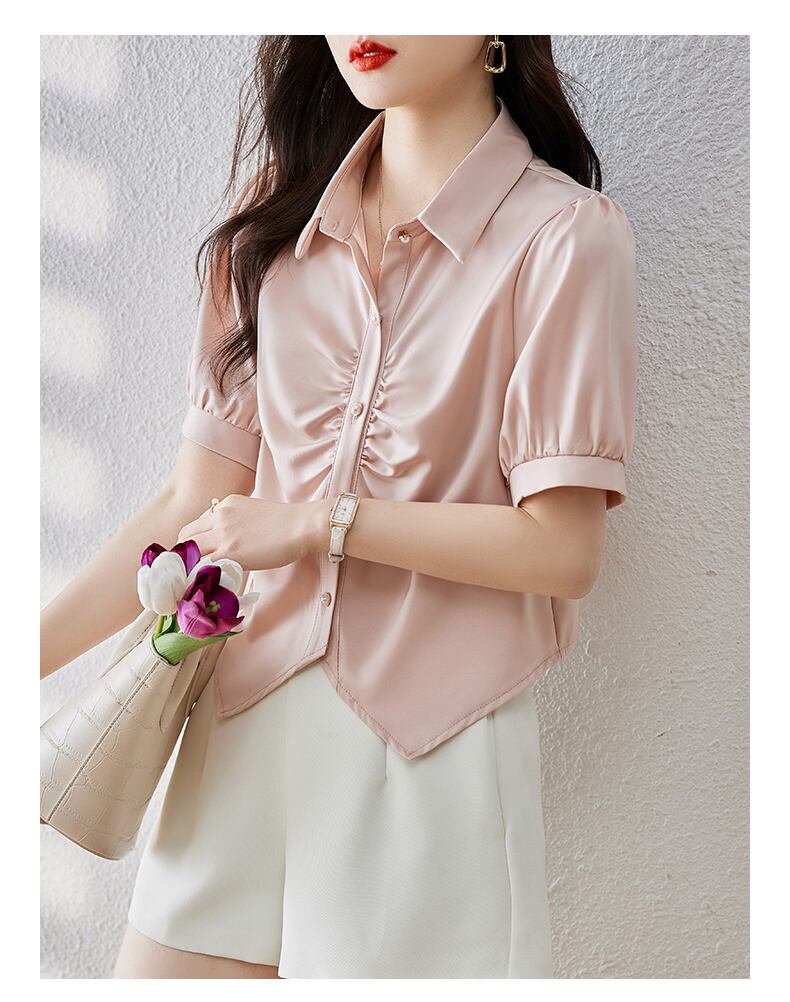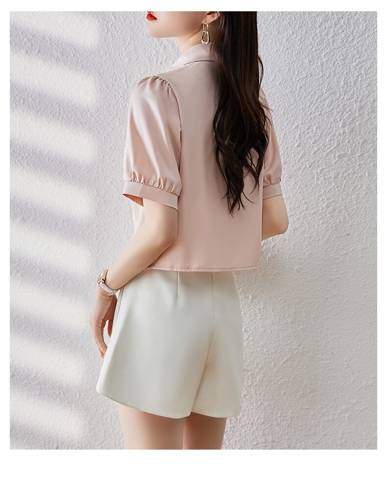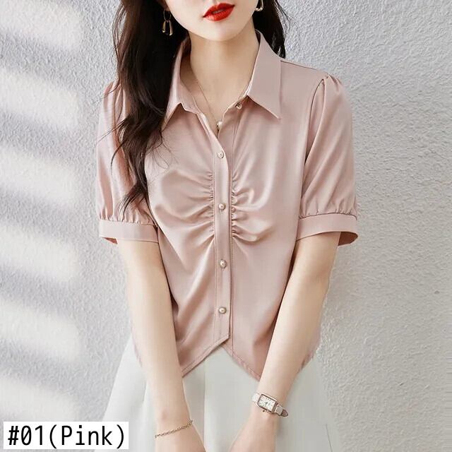 送料無料 Jielur 夏無地シックな女性シャツ甘いシンプルなシャツ女性ホワイトピンクパフスリーブトップ 大人ガーリー スウィート キュート カジュアル サマー 夏物 ソリッドカラー AE12188787898656264334