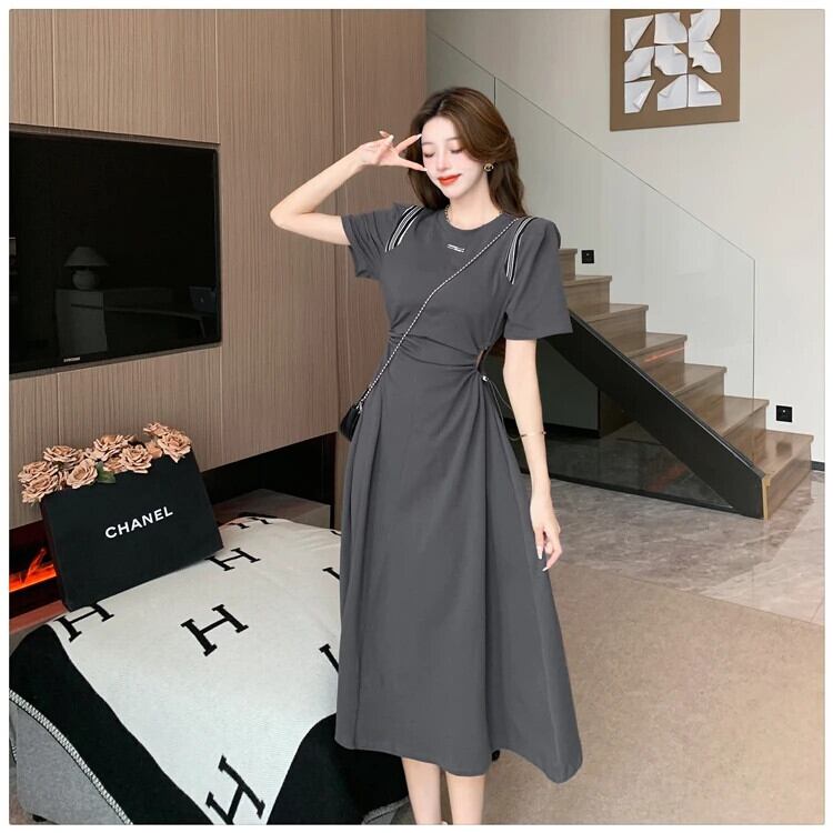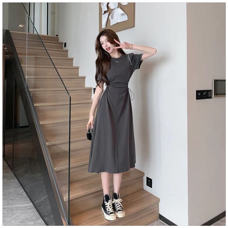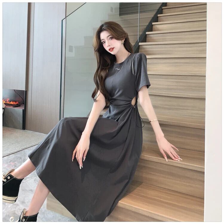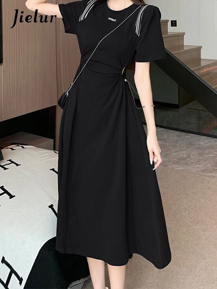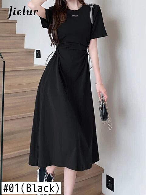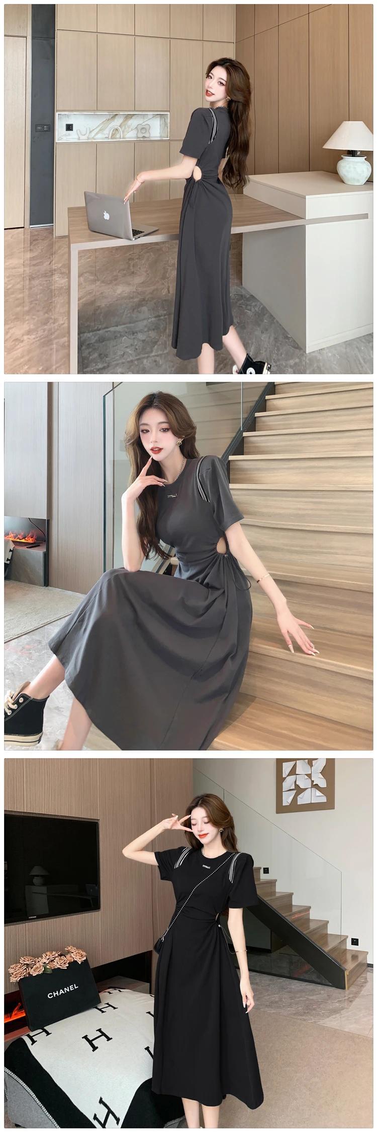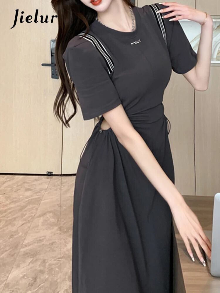 送料無料 Jielur 夏固体中空アウト女性のドレス甘い巾着ドレス女性グレー黒ドレス ブラック 大人ガーリー スウィート キュート カジュアル サマー 夏物 ソリッドカラー AE12188787845291598428