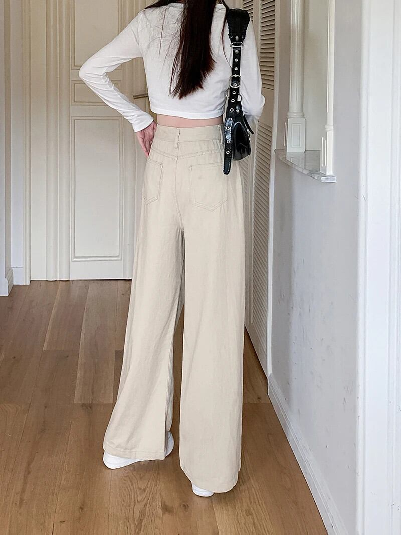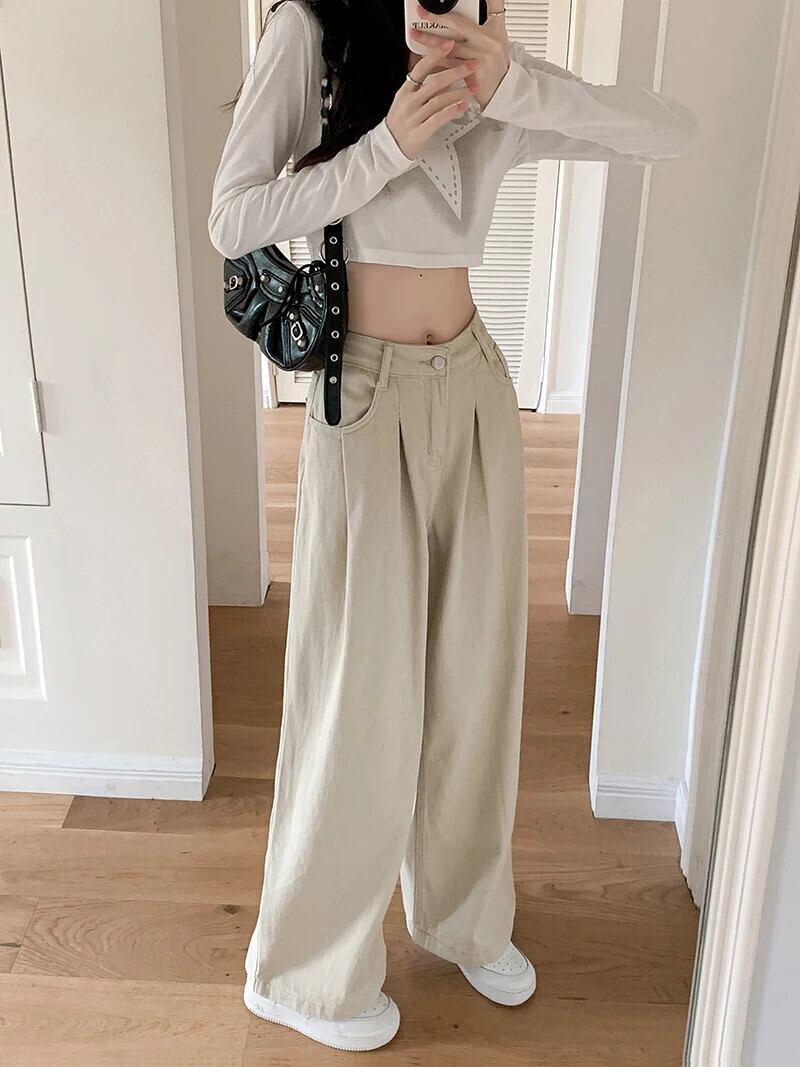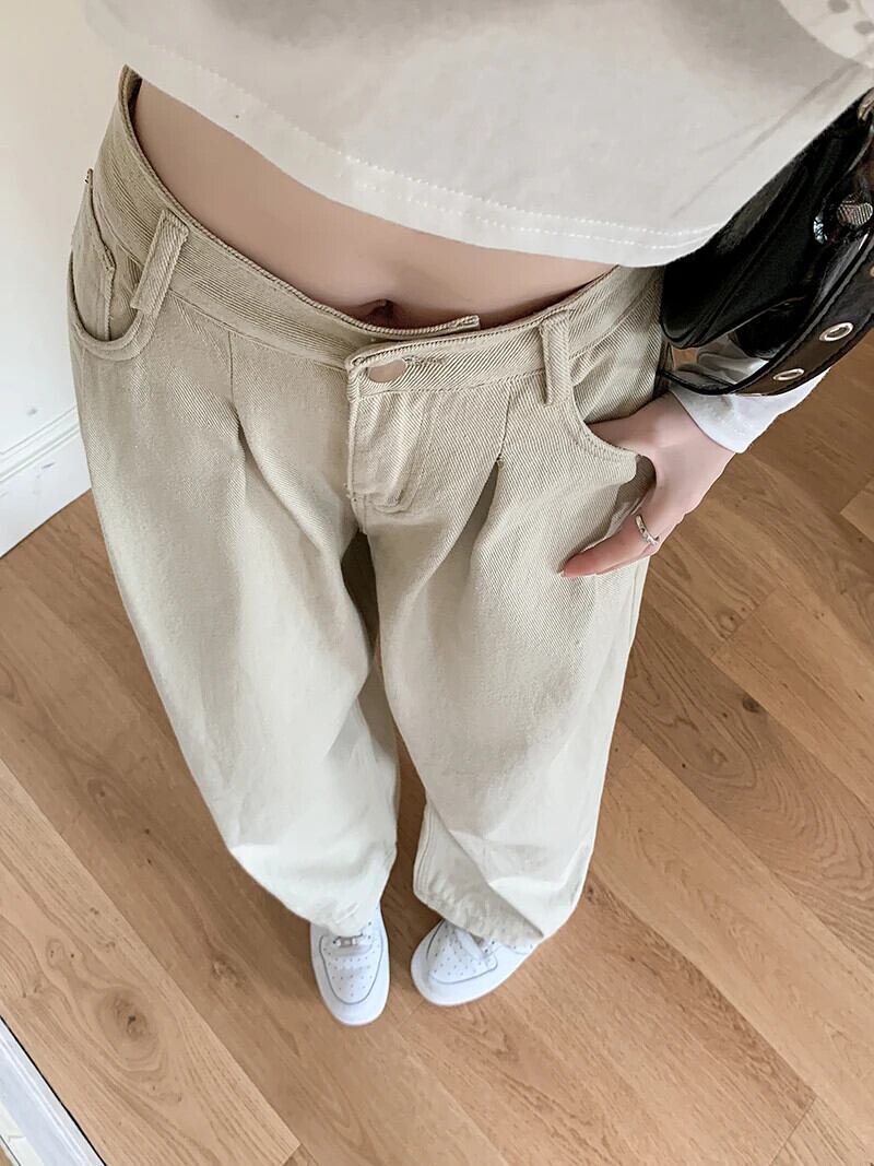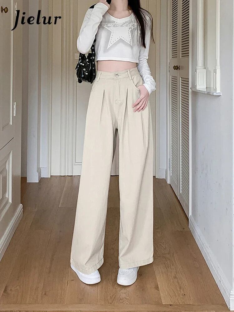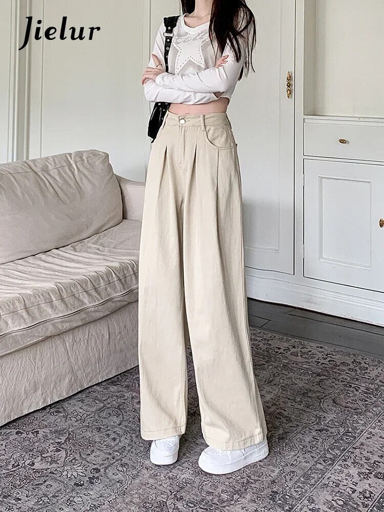 送料無料 Jielur ルーズウエスト女性ジーンズストリート女性ジーンズカーキシンプルなベーシックパンツストレートレッグパンツ AE12188787817874376379