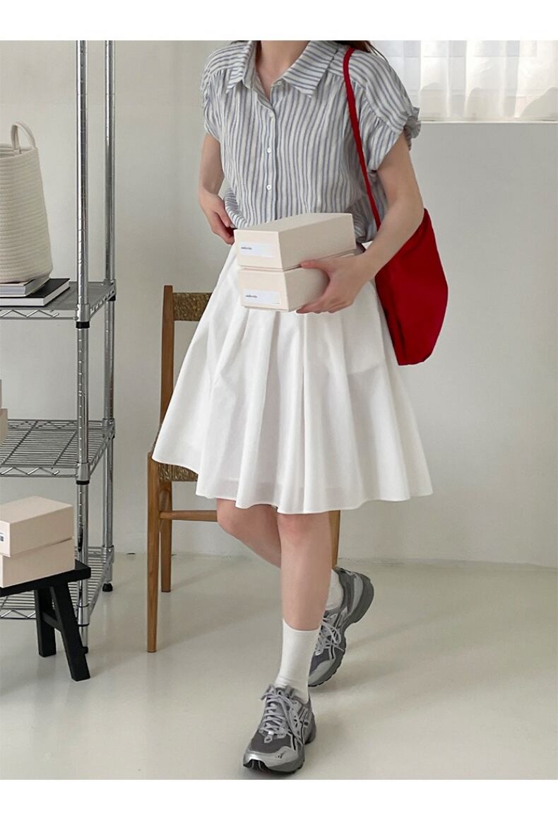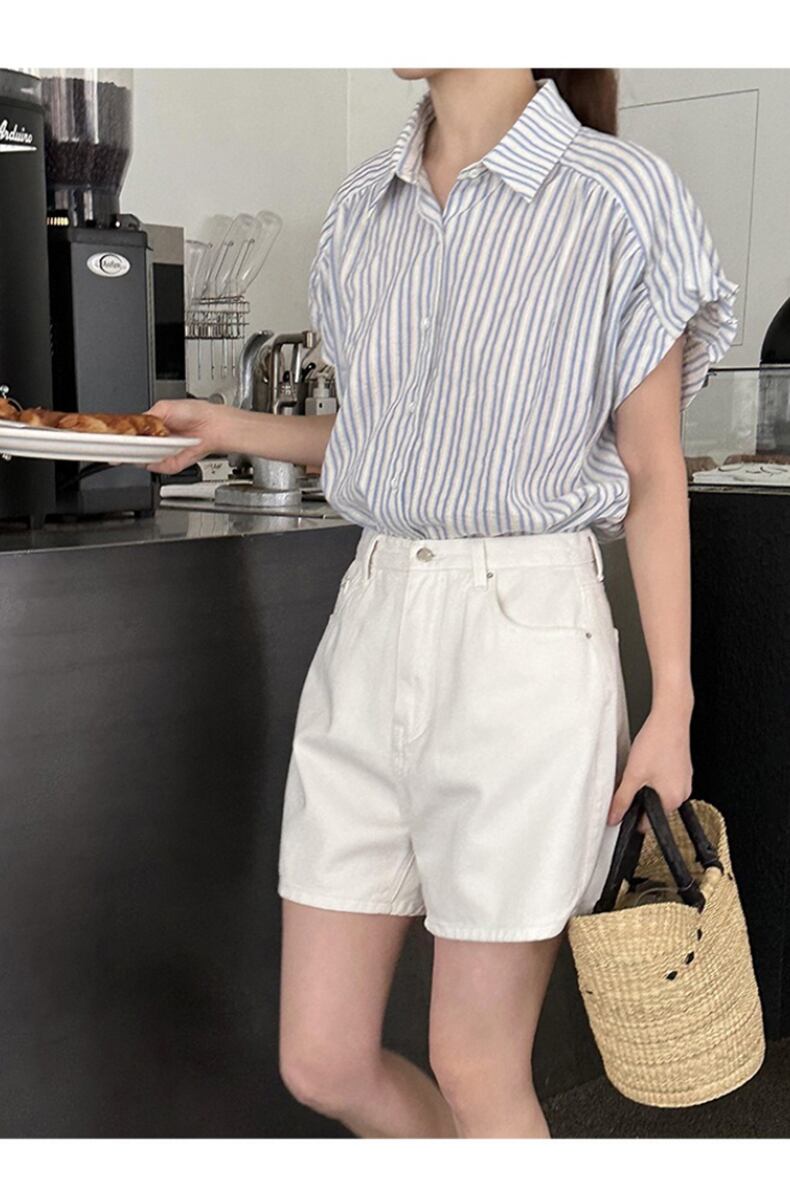 送料無料 Jielur 夏スリム女性シャツルーズストライプオフィスレディシャツ女性シンプルなベーシックストリートシックなトップ サマー 夏物 会社 学校 通勤や通学にも AE1218878784707828245