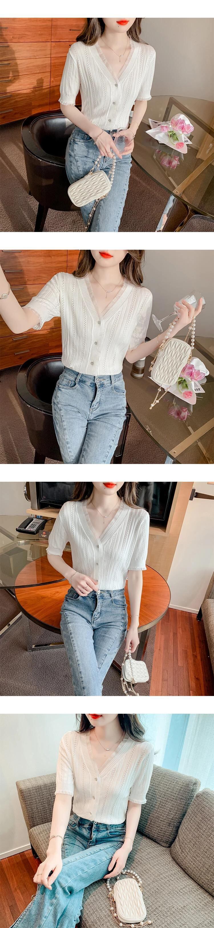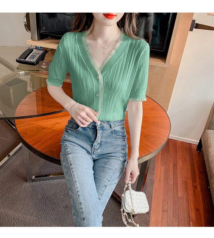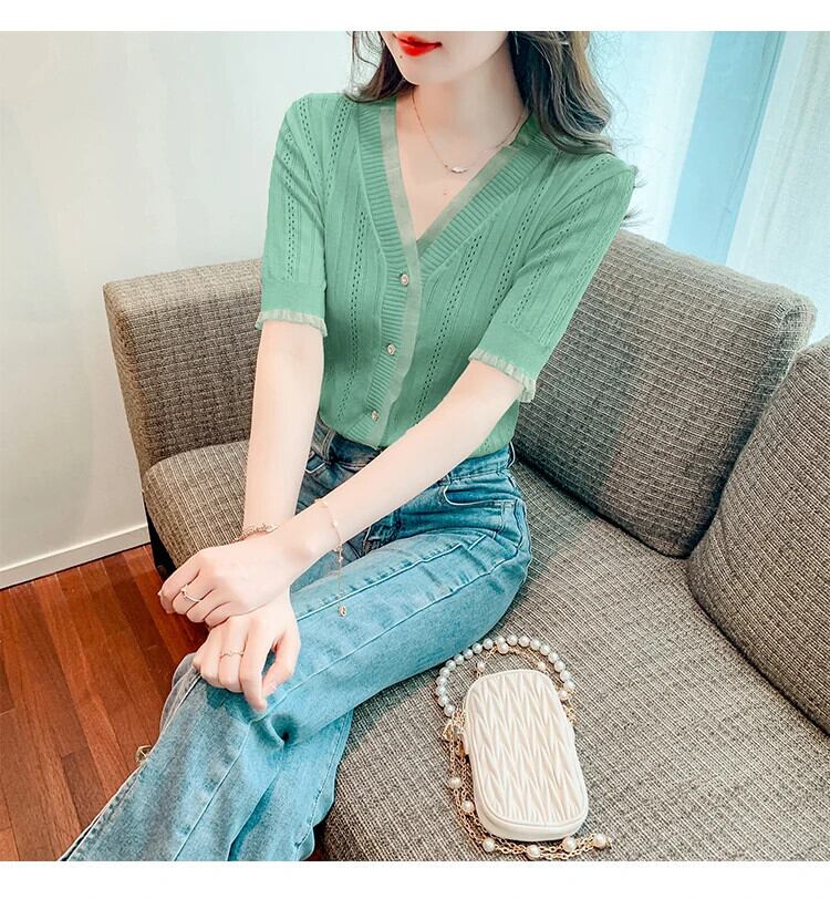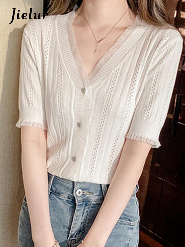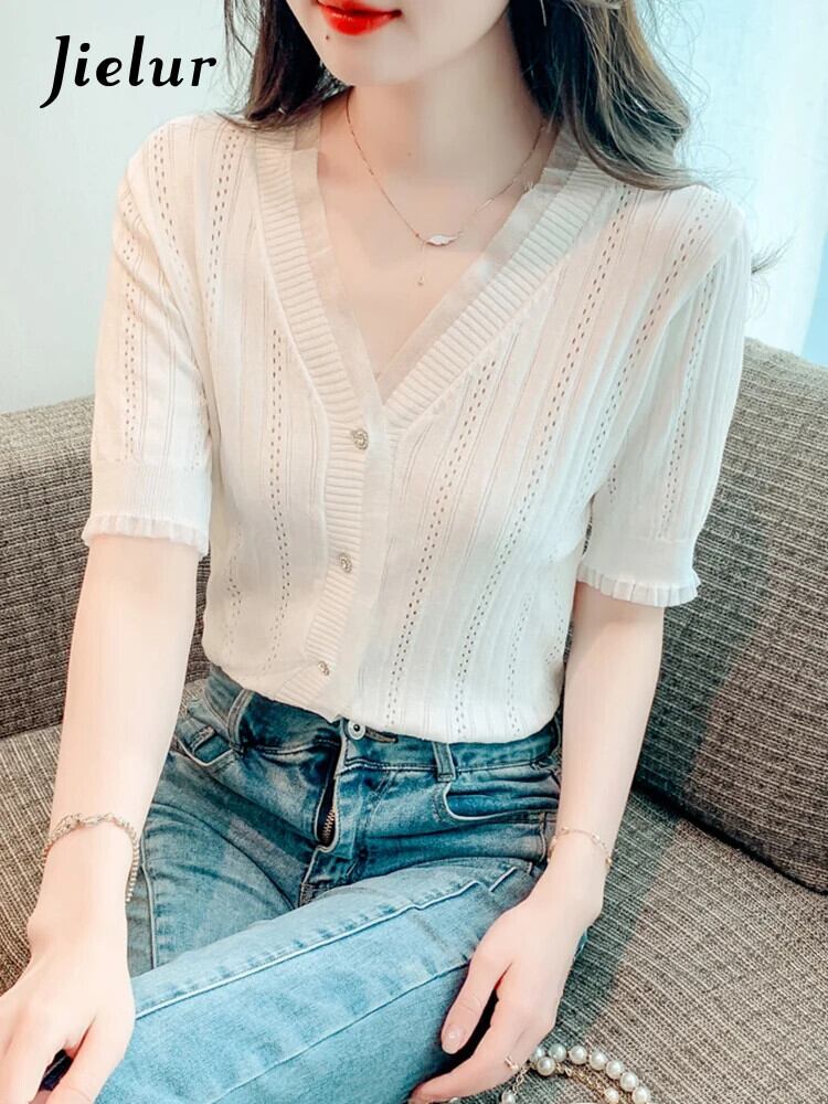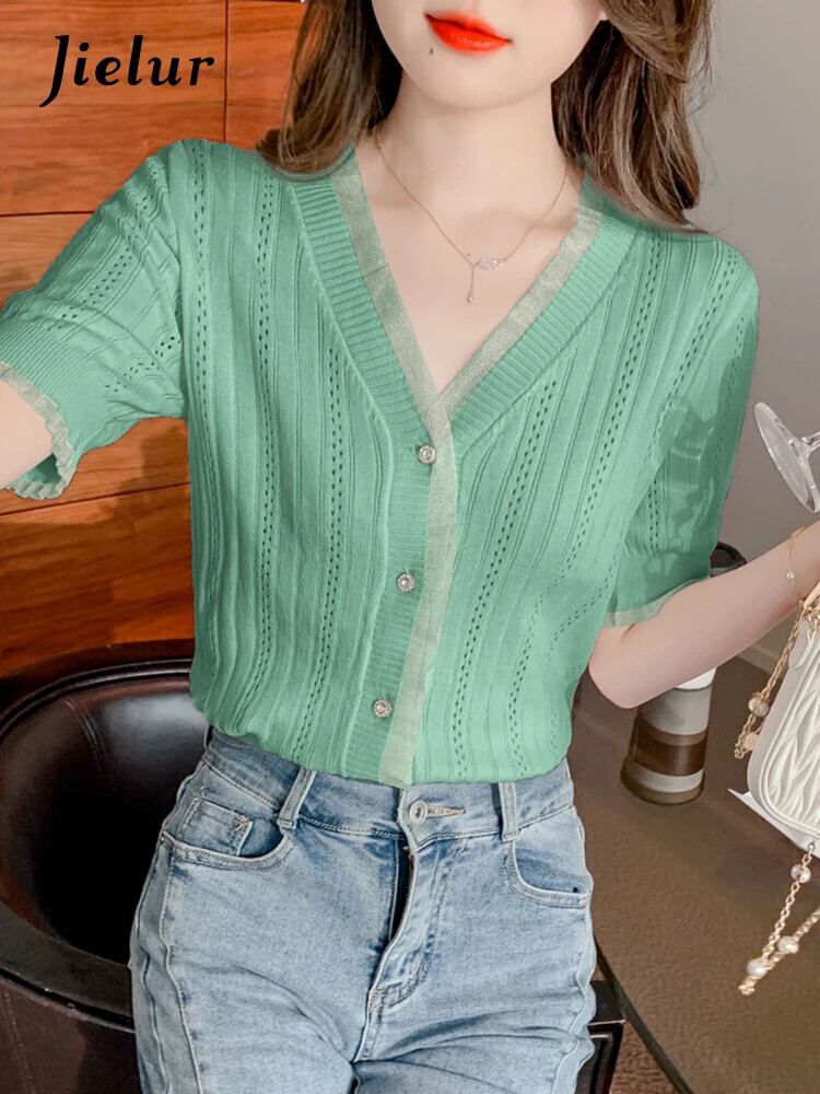 送料無料 Jielur 夏ルーズスリム女性シャツ無地甘い女性シャツ若いシックな白緑ニットトップ ホワイト 大人ガーリー スウィート キュート カジュアル サマー 夏物 ソリッドカラー グリーン AE12188787830910579712