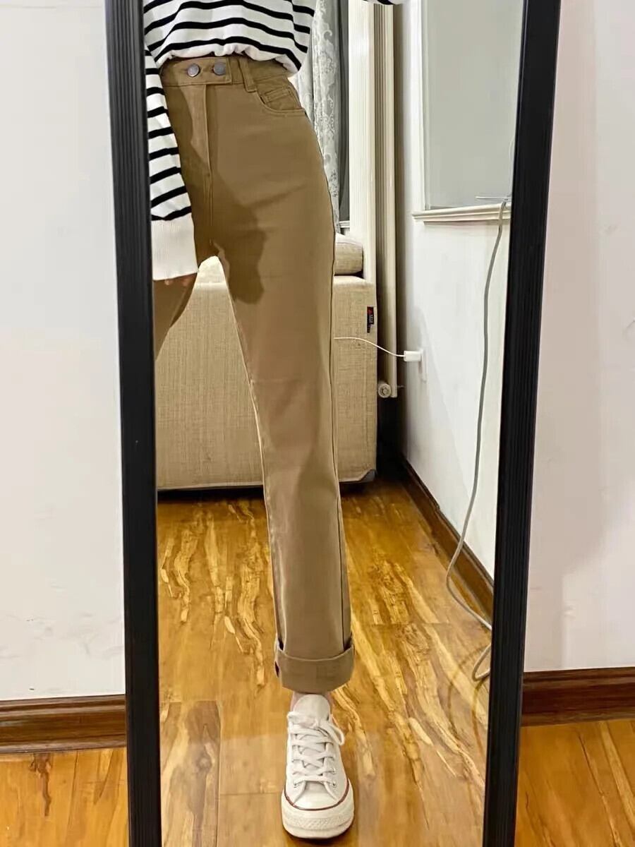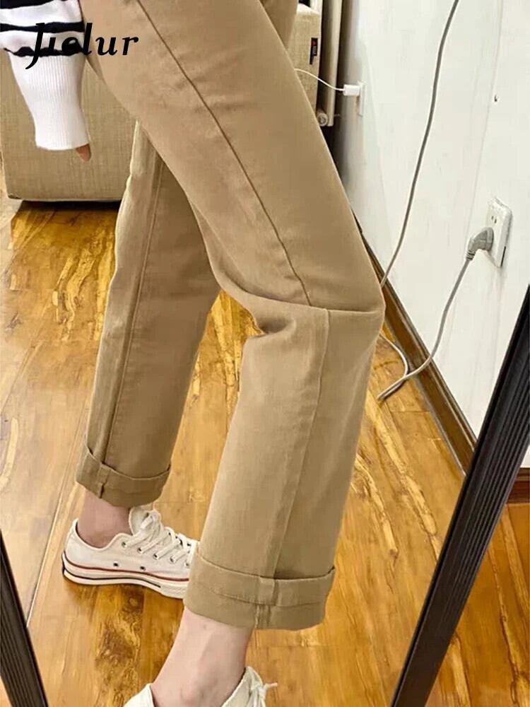 送料無料 Jielur カーキストレートジーンズ秋の足首丈パンツスリム女性ジーンズピュアカラー S-XL オータム 秋物 AE12188787840592365376