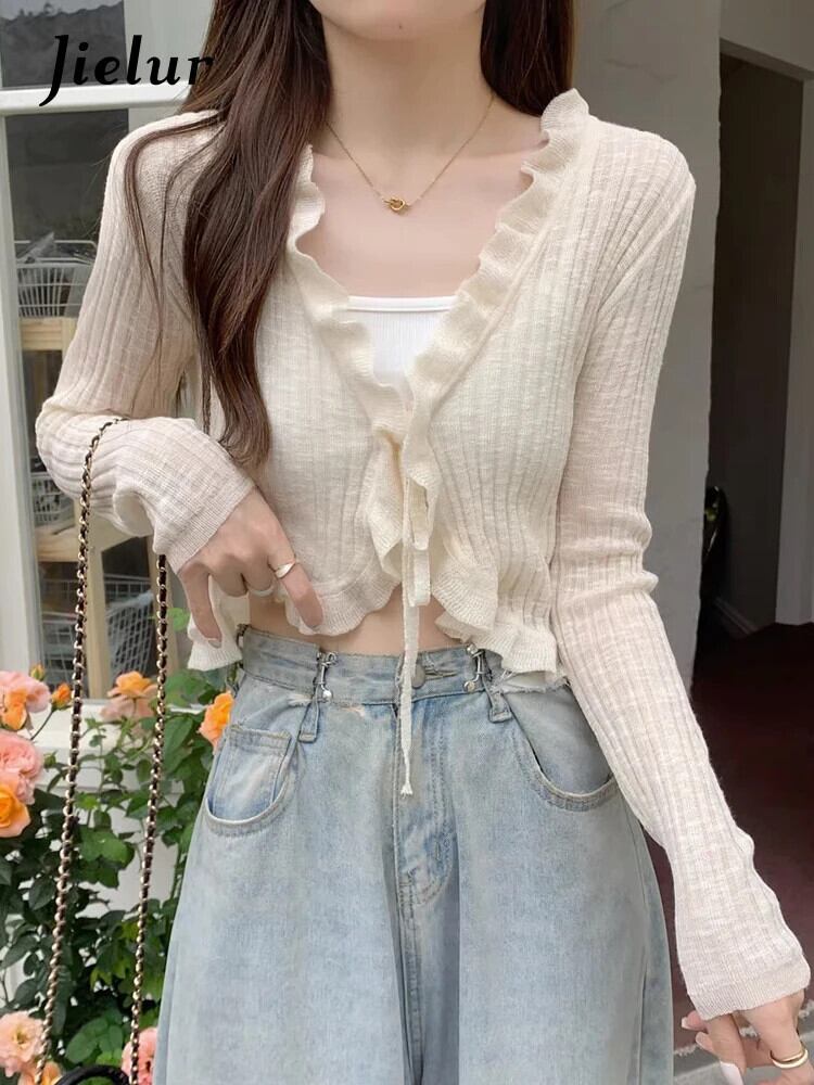 送料無料 Jielur 秋無地スリムカーディガン女性甘いカーディガン黒アプリコットグリーン白ニットカーディガン女性 ホワイト ブラック 大人ガーリー スウィート キュート カジュアル オータム 秋物 ソリッドカラー AE1218878788978749451