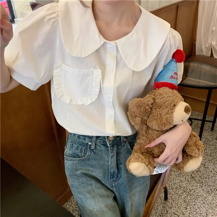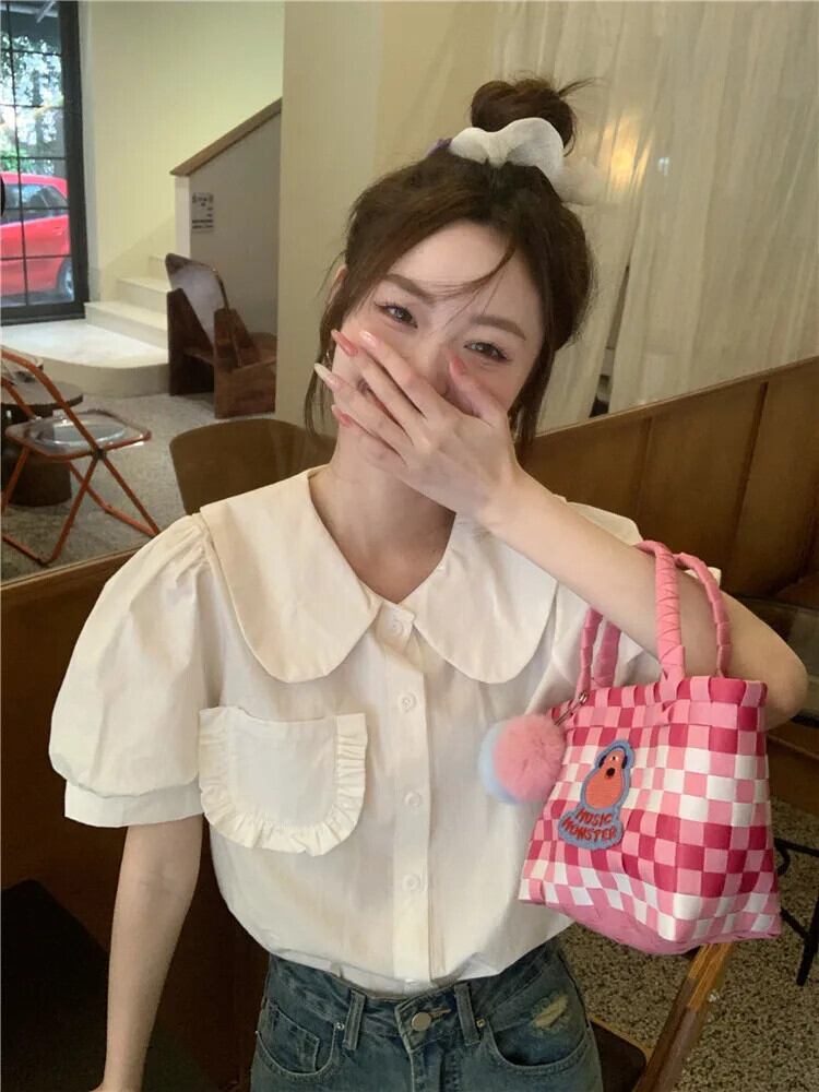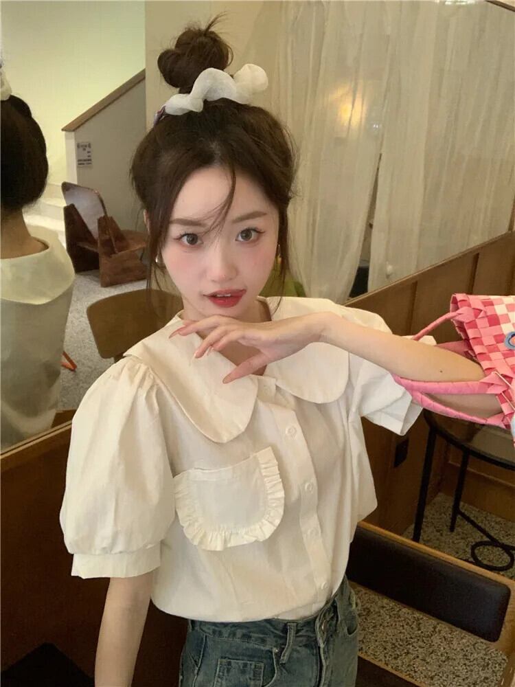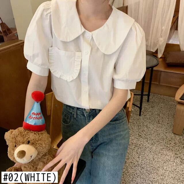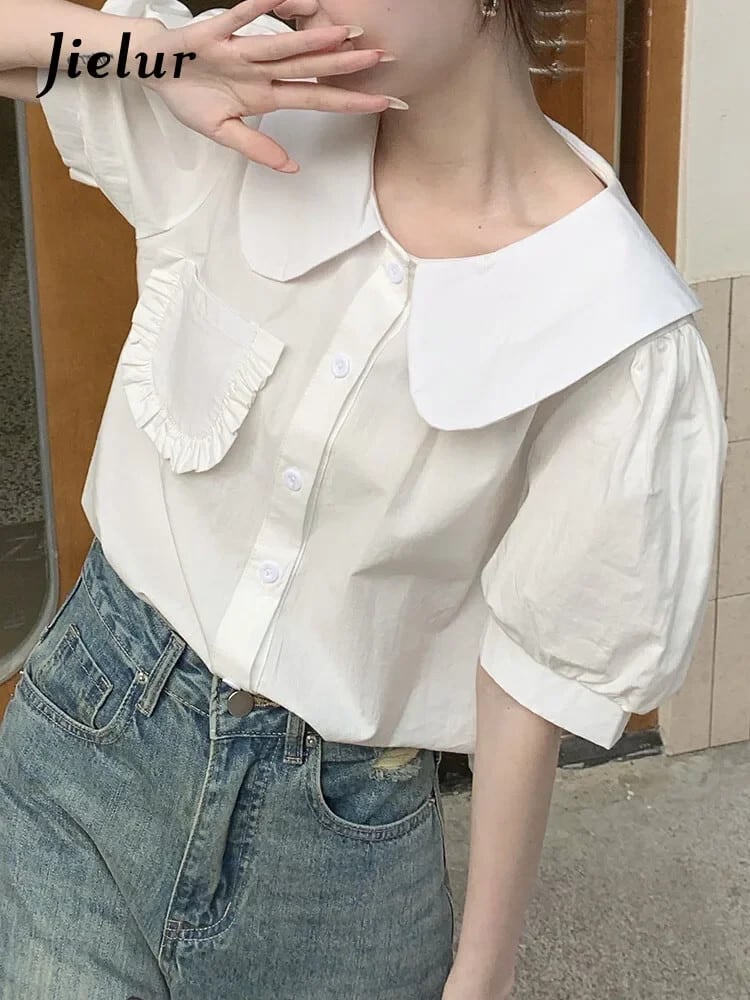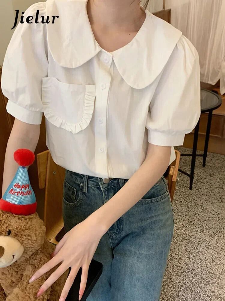 送料無料 Jielur 夏レトロスリム女性シャツルーズスウィートシャツ女性白赤シックストリートパフスリーブトップ ホワイト レッド 大人ガーリー キュート カジュアル サマー 夏物 AE12188787819551715565