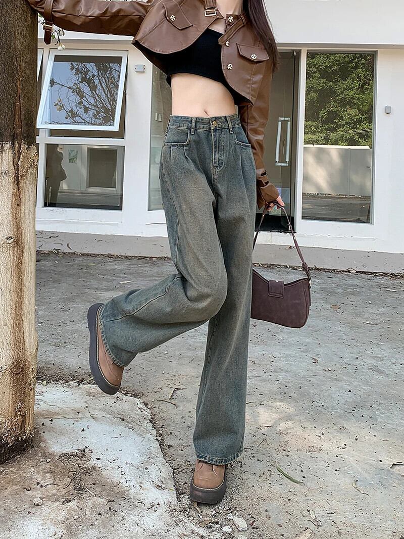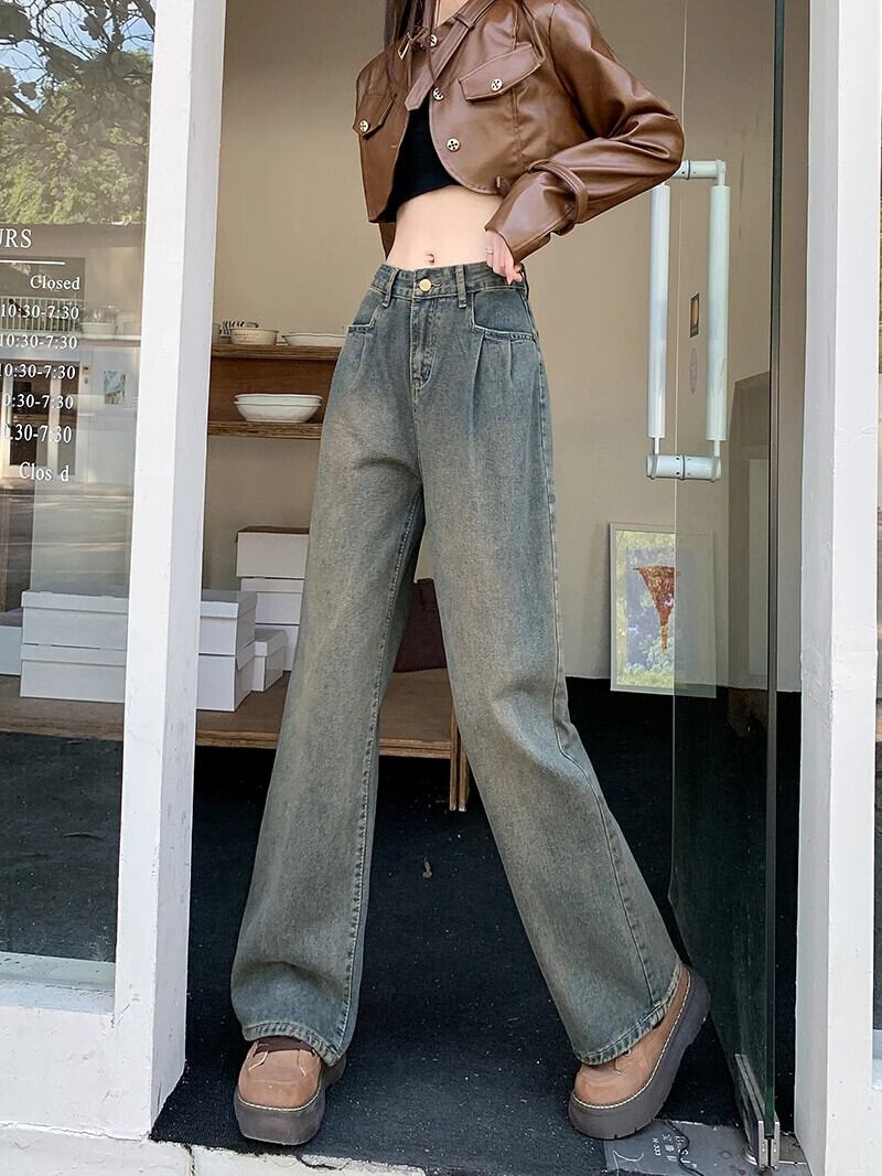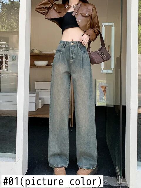 送料無料 Jielur レトロアメリカンドゥオールドベーシックシンプルな女性のジーンズルーズスリムシックな女性のジーンズウエストストリートパンツ AE12188787820452345101
