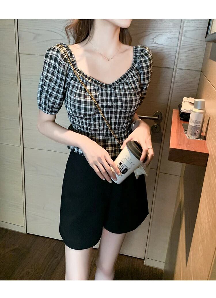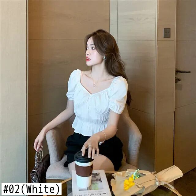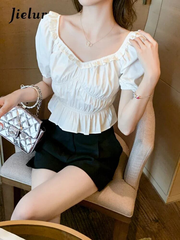 送料無料 Jielur 夏フレンチヴィンテージ女性ブラウススリムウエスト無地ブラウス女性白の基本的な甘いシフォントップ ホワイト 大人ガーリー スウィート キュート カジュアル サマー 夏物 ソリッドカラー ビンテージ AE12188787826782673604