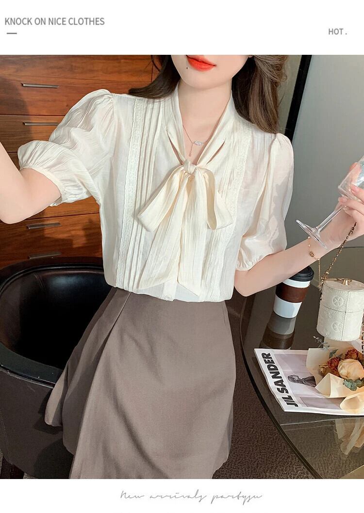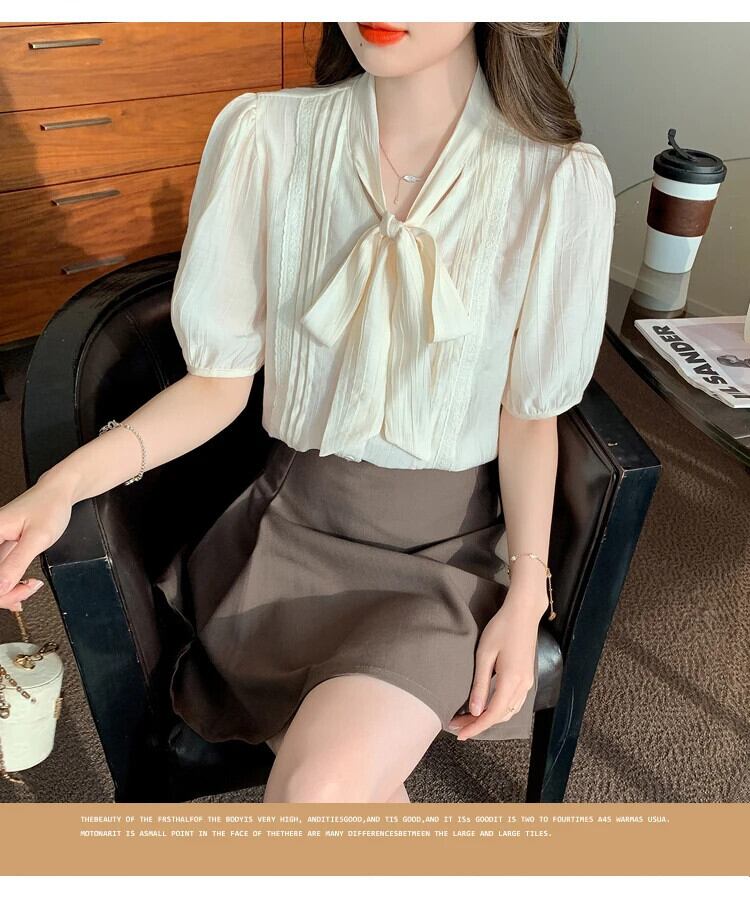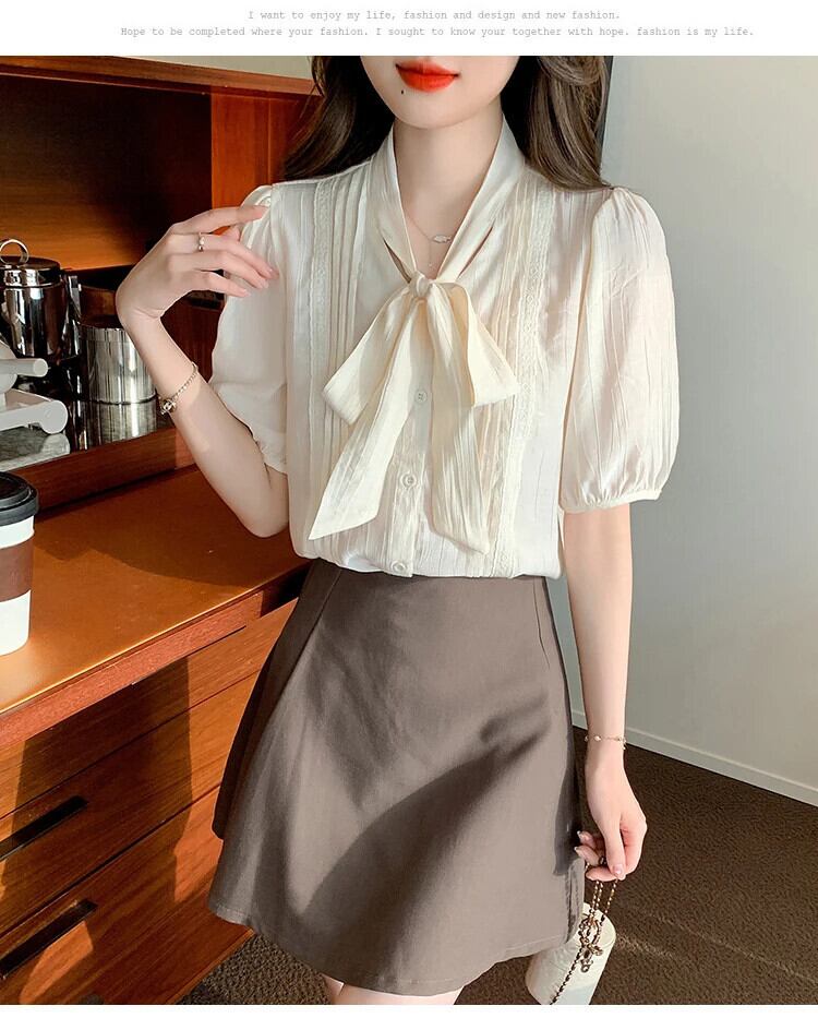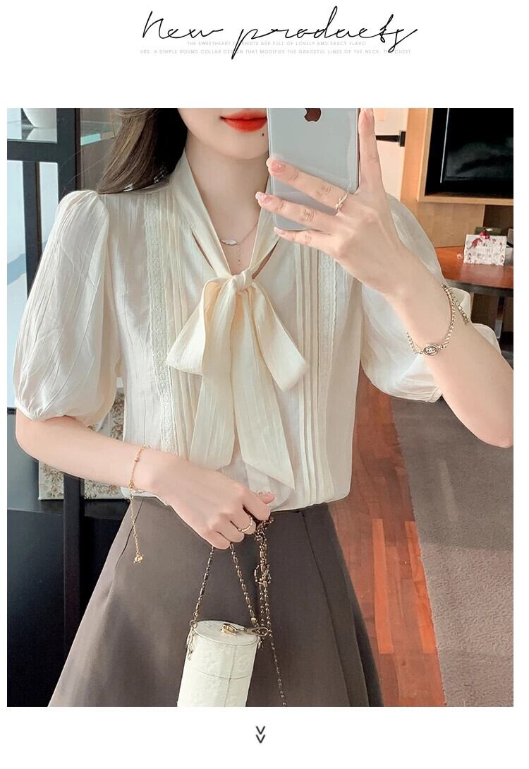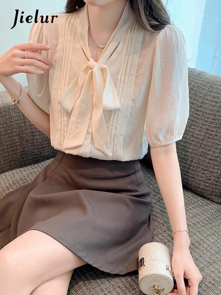 送料無料 Jielur 夏ルーズ女性シャツスリム無地甘いシャツ女性アプリコット V ネックシフォントップ 大人ガーリー スウィート キュート カジュアル サマー 夏物 Vネック ソリッドカラー AE12188787894204570260