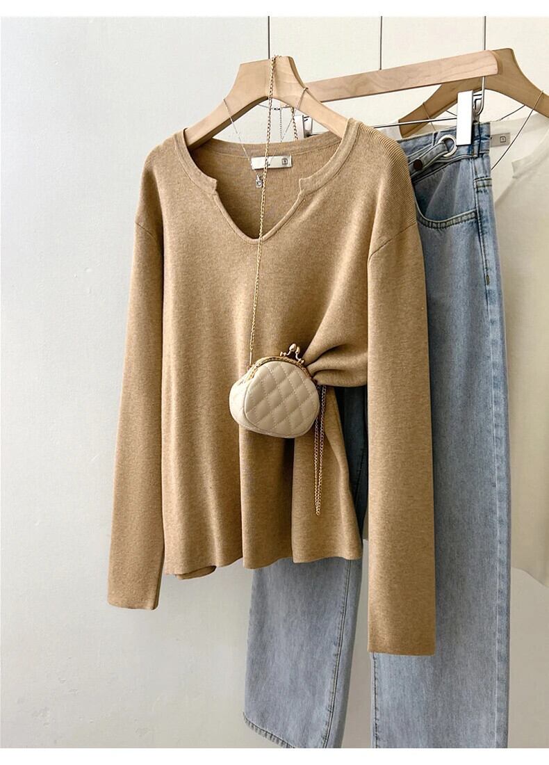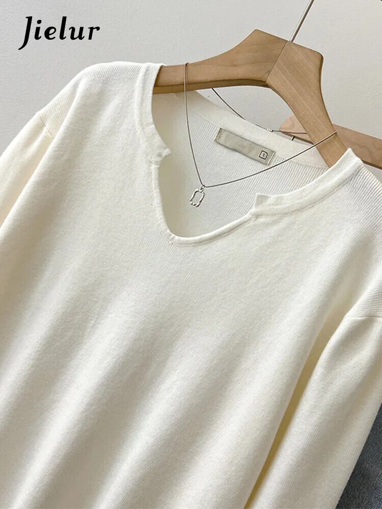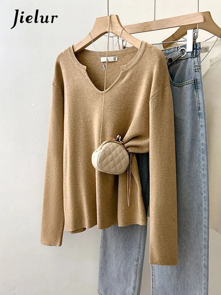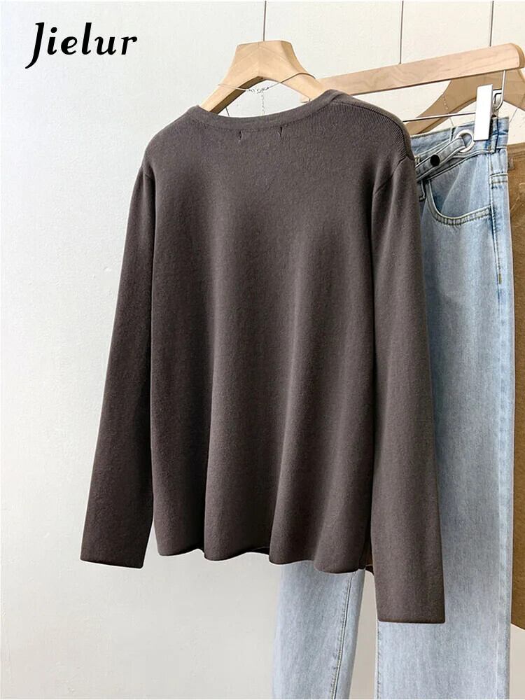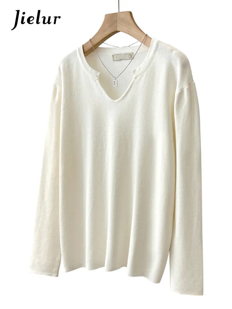 送料無料 Jielur 無地ルース女性プルオーバー甘いレディストリートシックなプルオーバー女性ホワイトカーキダークグレーニットトップ 大人ガーリー スウィート キュート カジュアル ソリッドカラー AE12188787895537155427