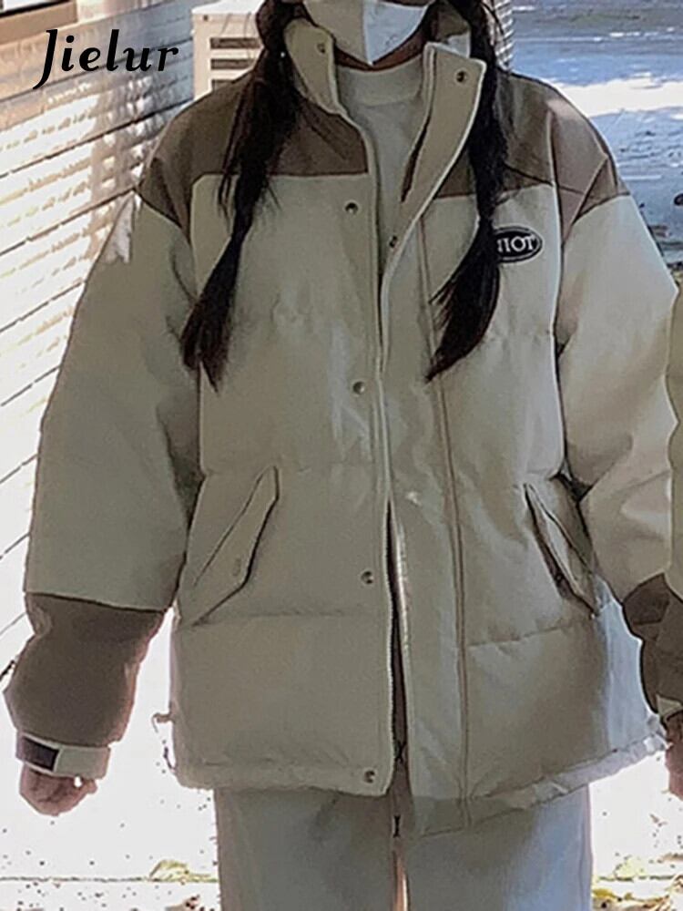 送料無料 Jielur 巾着レタープリントルーズパーカーコントラストカラーシックなジッパーポケットベーシックシンプルな女性パーカー AE12188787863067247258