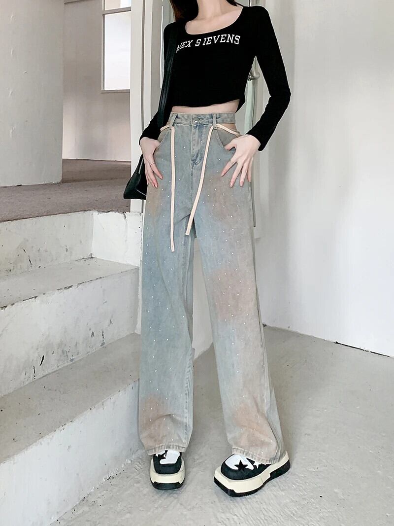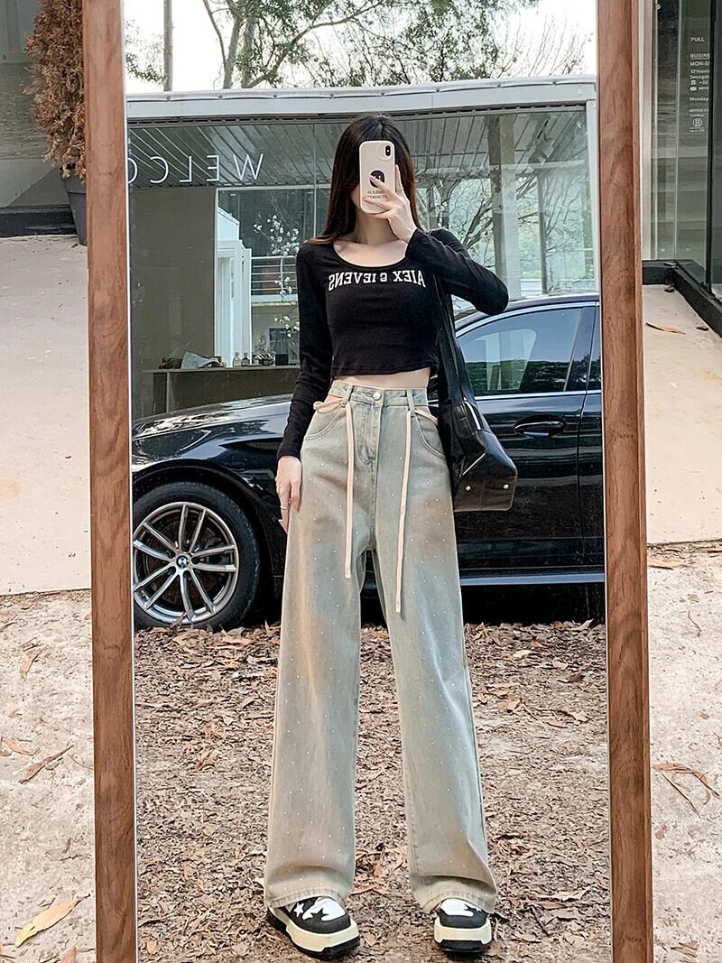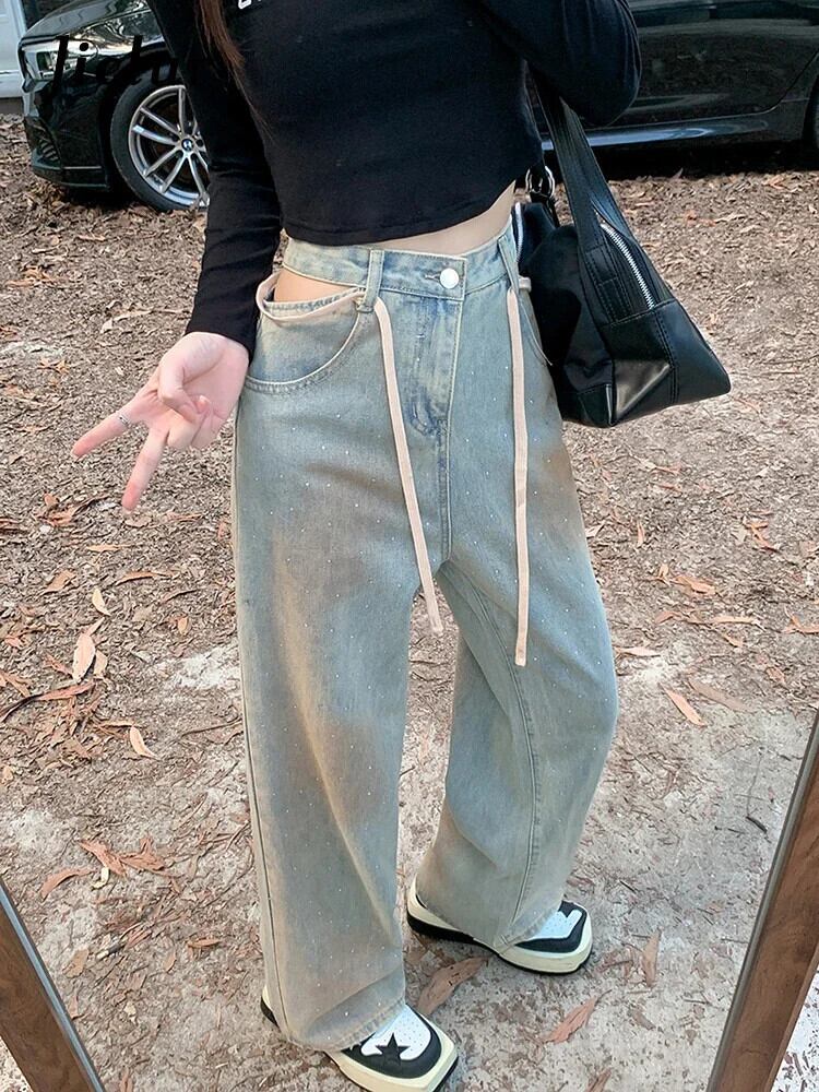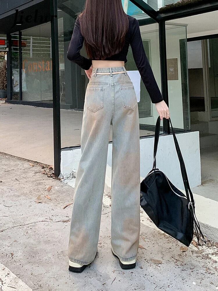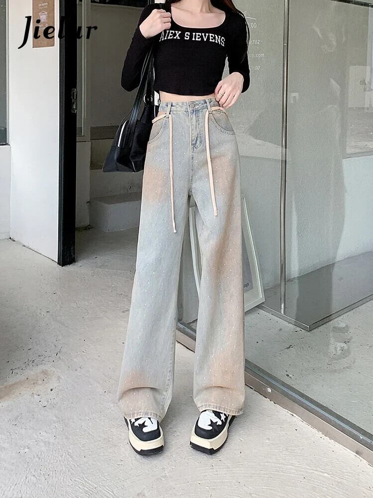 送料無料 Jielur Ins セクシーな中空アウトヴィンテージ女性ジーンズウエストスリム女性ジーンズ秋シックなストレートレッグパンツ オータム 秋物 ビンテージ AE12188787826379545249