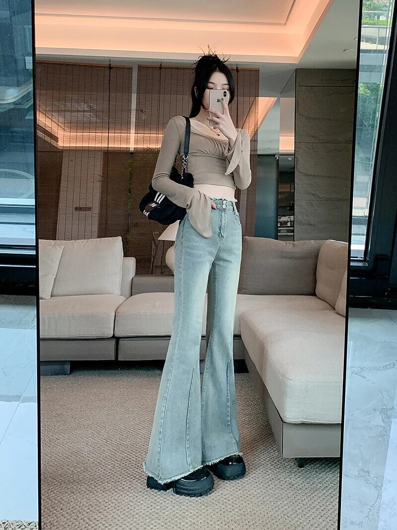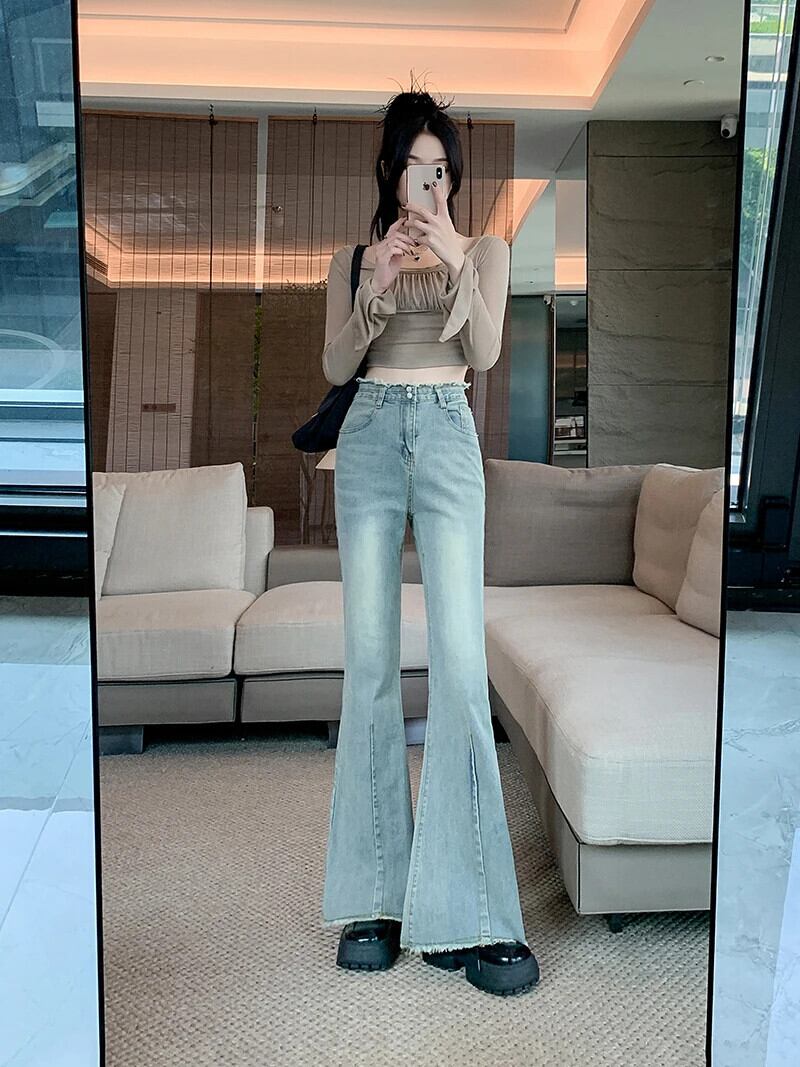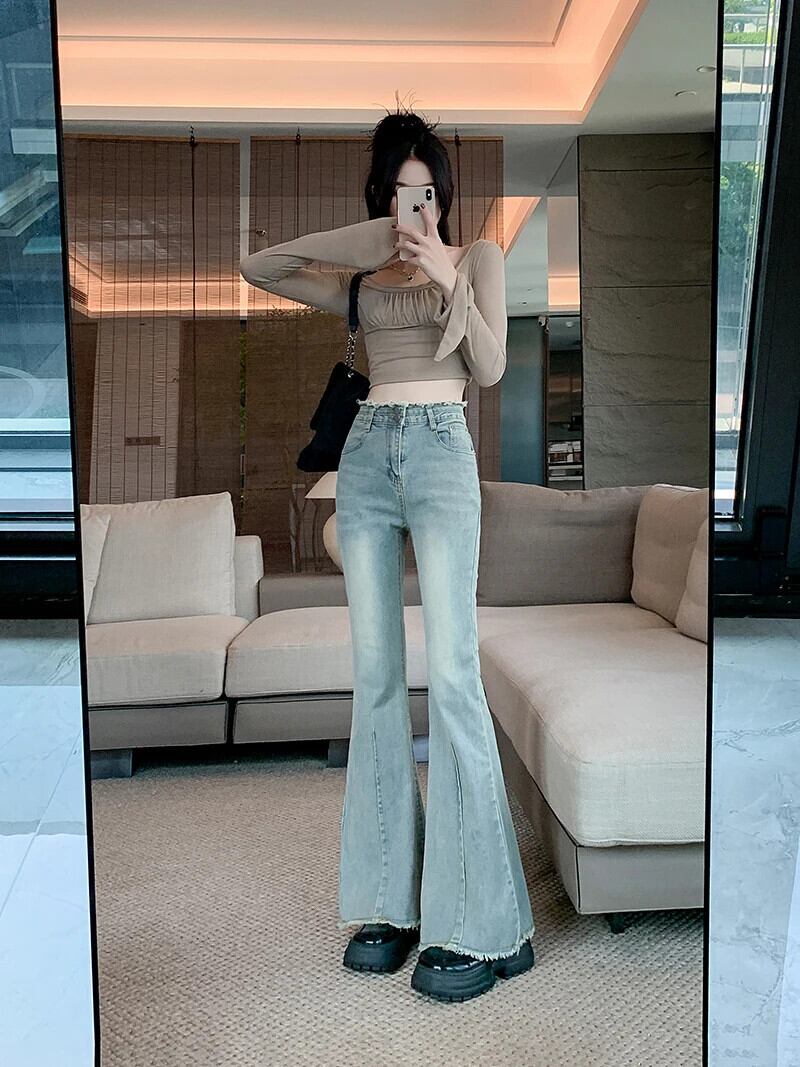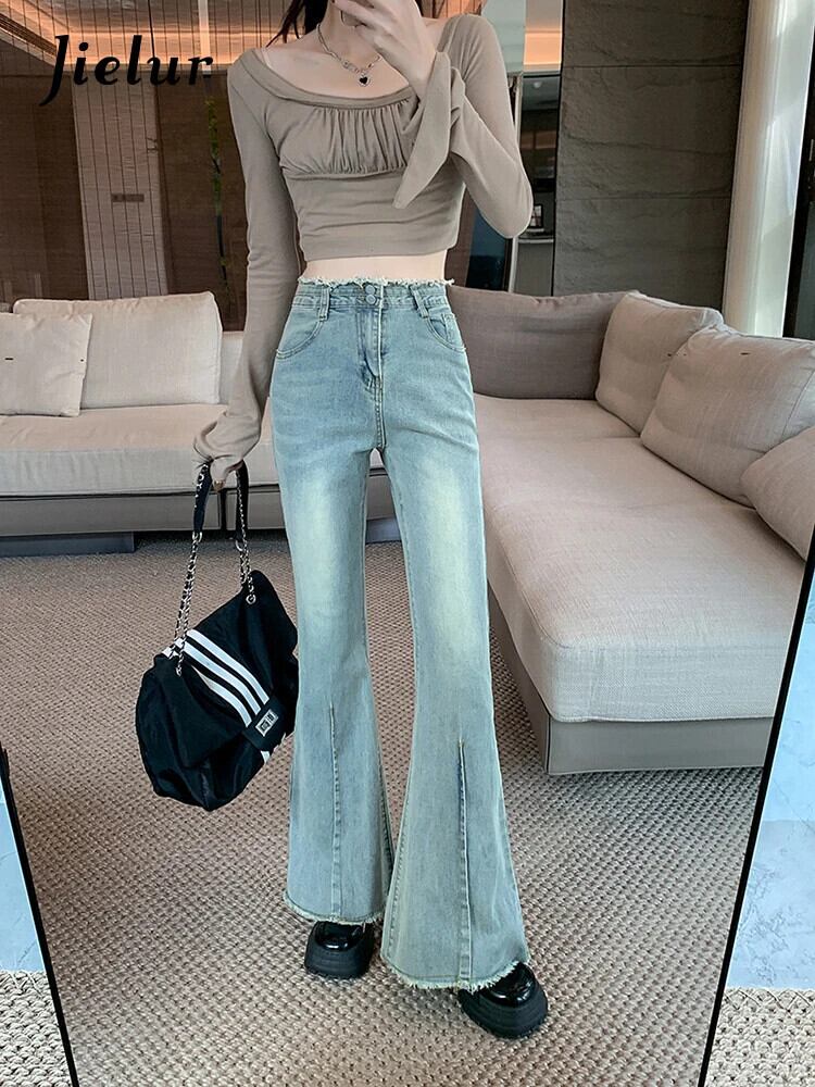 送料無料 Jielur ヴィンテージウエストスリムベーシックシンプルな女性のジーンズストリートシックな女性のジーンズブルー秋のパンツ オータム 秋物 ビンテージ AE12188787822729180701