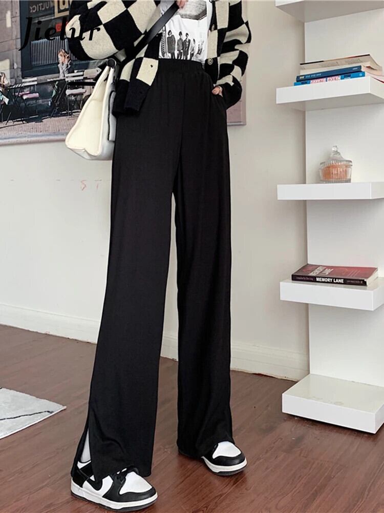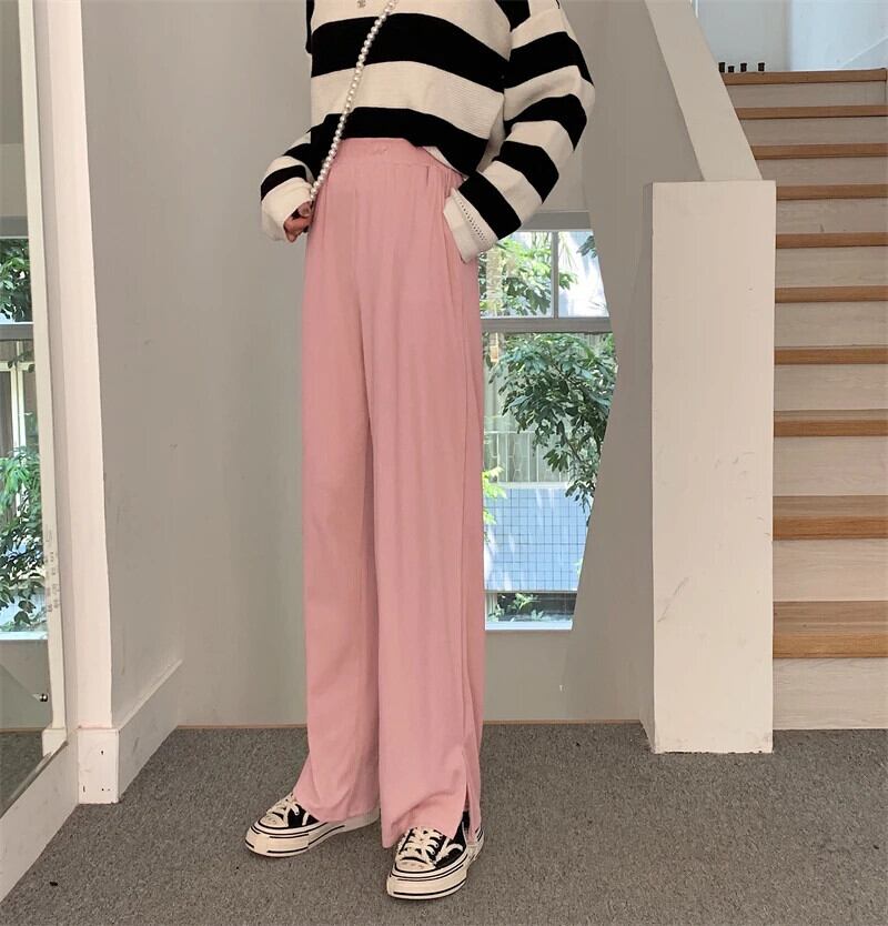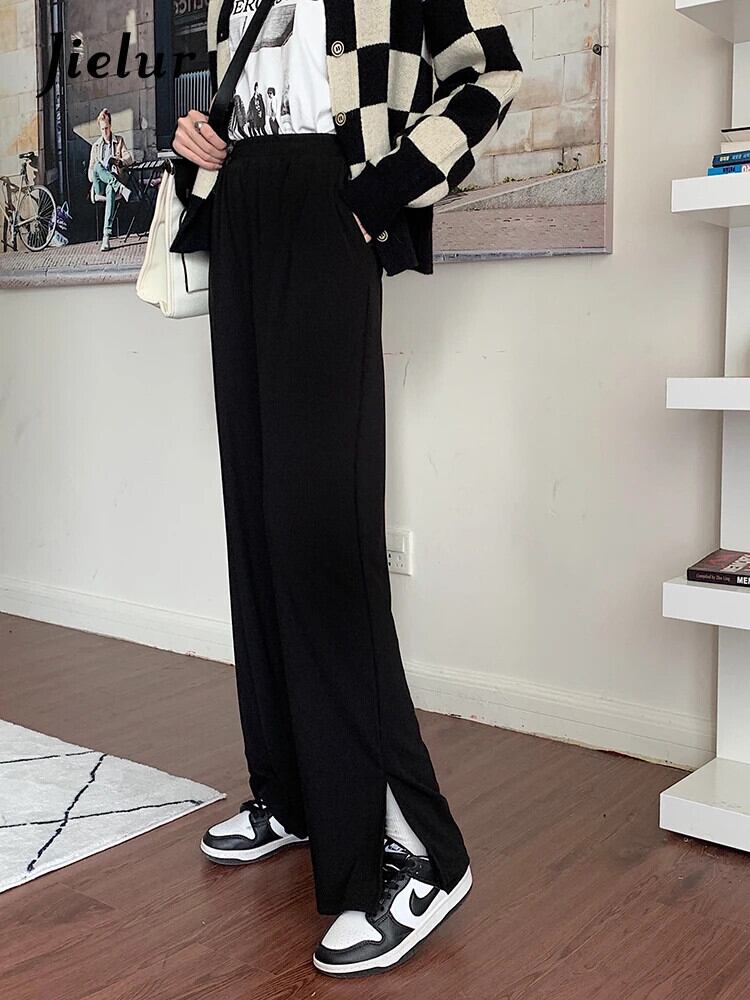 送料無料 Jielur アイスシルクワイドレッグパンツドレープウエスト女性ズボン黒ピンクストリート長ズボン夏 ロング ブラック サマー 夏物 ワイドパンツ AE1218878785871363047