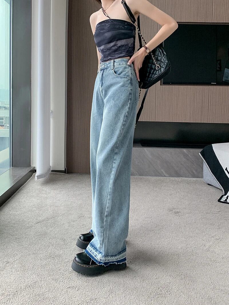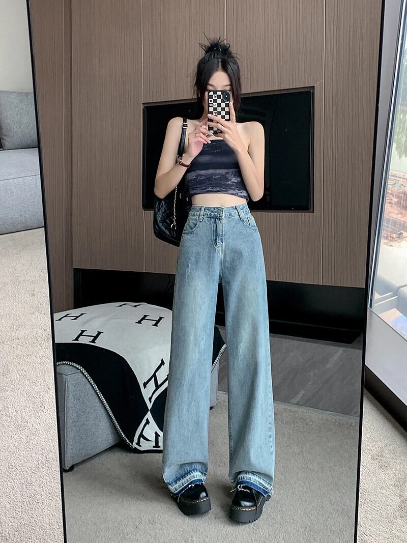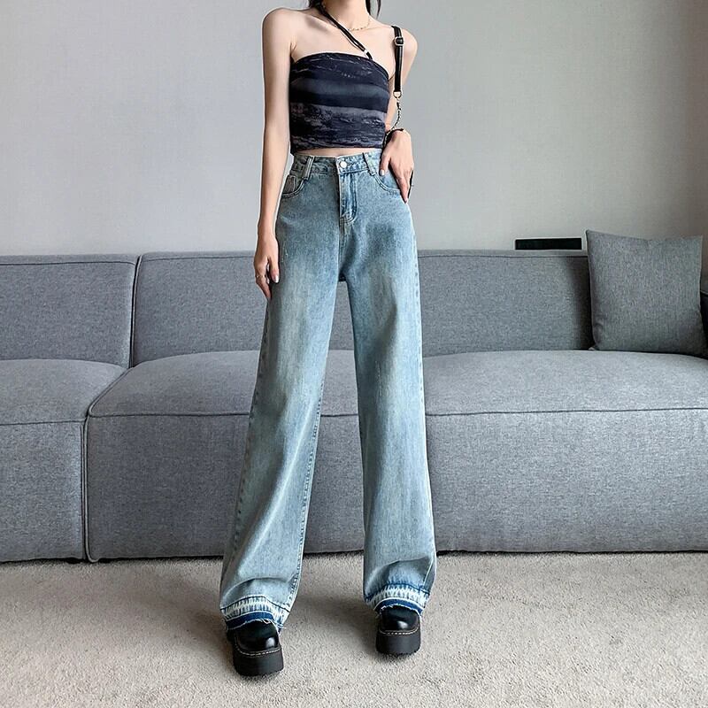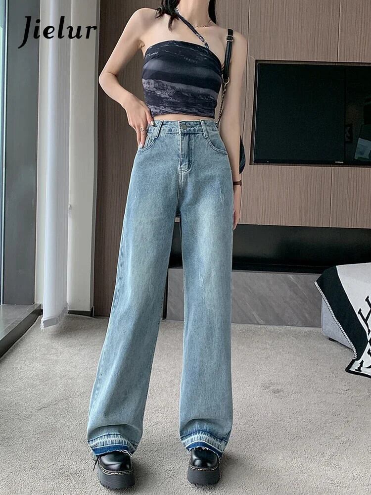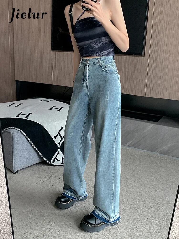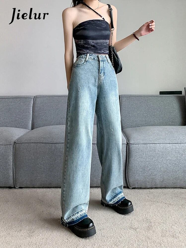 送料無料 Jielur 春ヴィンテージワイドレッグジーンズ女性ブルーウエストデニムパンツ夏だぶだぶのジーンズ Y2k 女性 スプリング 春物 サマー 夏物 ワイドパンツ ビンテージ AE12188787898945816331