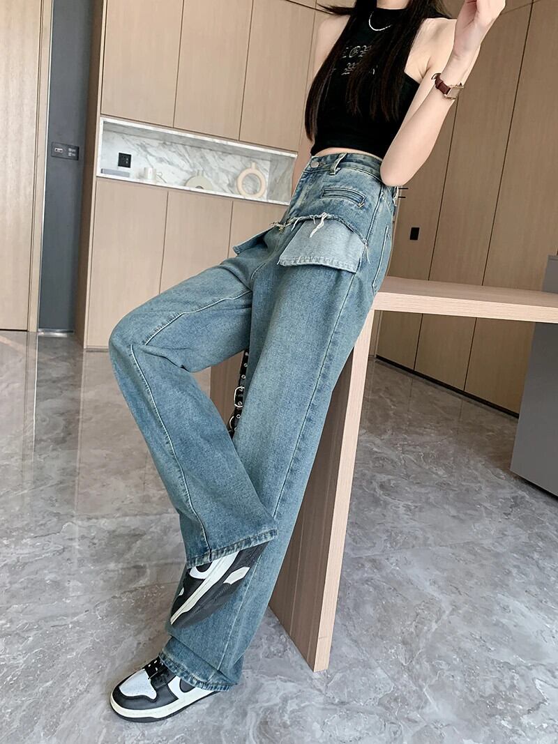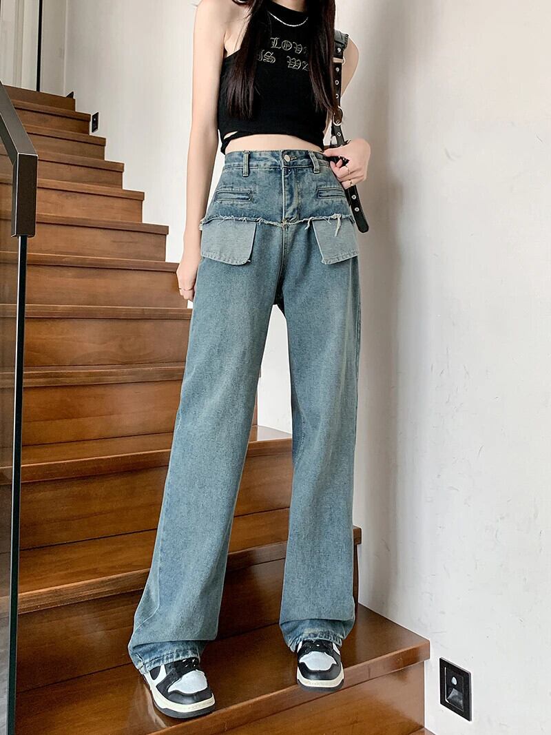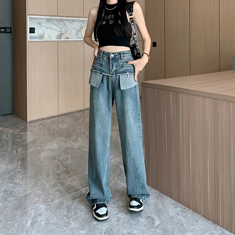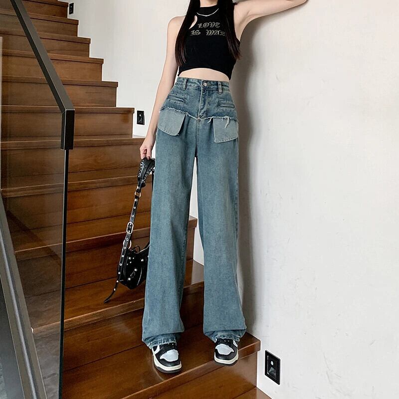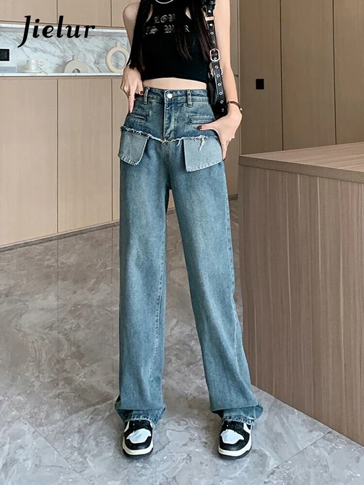 送料無料 Jielur 秋レトロスリム洗浄女性ジーンズルーズワイドレッグジーンズブルーウエストストリートシックな女性のパンツ オータム 秋物 ワイドパンツ AE12188787844580211859