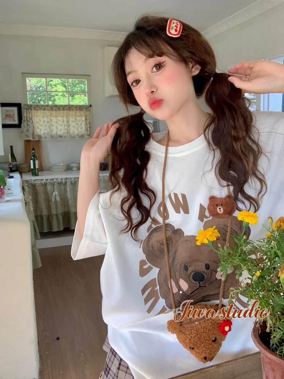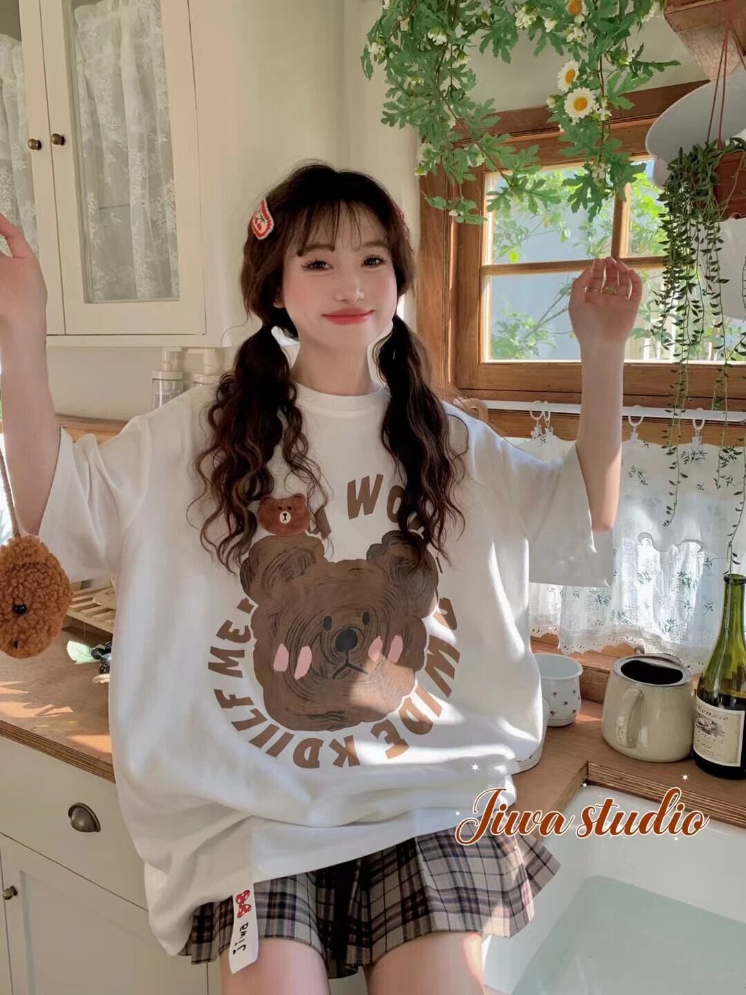 送料無料 Jielur 夏ストリート緩い若い女性の Tシャツスリムレジャー甘い Tシャツ女性白シックな O ネックトップ ホワイト 大人ガーリー スウィート キュート カジュアル サマー 夏物 Oネック AE12188787832970390601