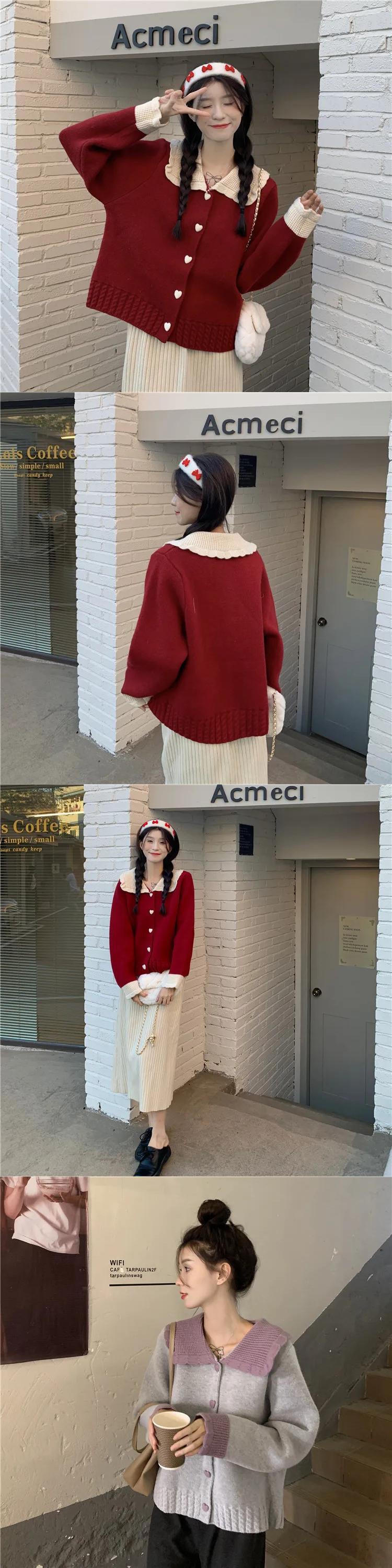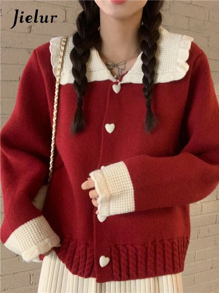 送料無料 Jielur 秋スリムカーディガン女性コントラストカラースイートストリートカーディガン白赤グレーニットカーディガン ホワイト レッド 大人ガーリー スウィート キュート カジュアル オータム 秋物 AE12188787823876871311