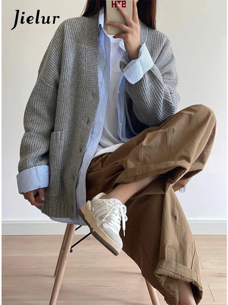 送料無料 Jielur 秋の甘いカーディガン女性固体ルーズシックなカーディガンストリートニットトップ女性 大人ガーリー スウィート キュート カジュアル オータム 秋物 ソリッドカラー AE12188787893733924894