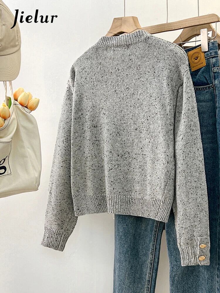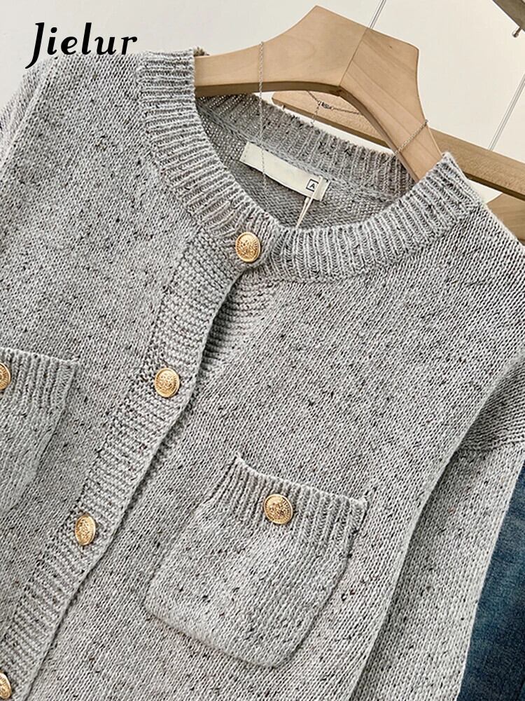 送料無料 Jielur 秋ルーズ女性カーディガンシンプルなベーシックカーディガン女性 O ネックストリートシックニットセーター オータム 秋物 Oネック AE12188787831435377157