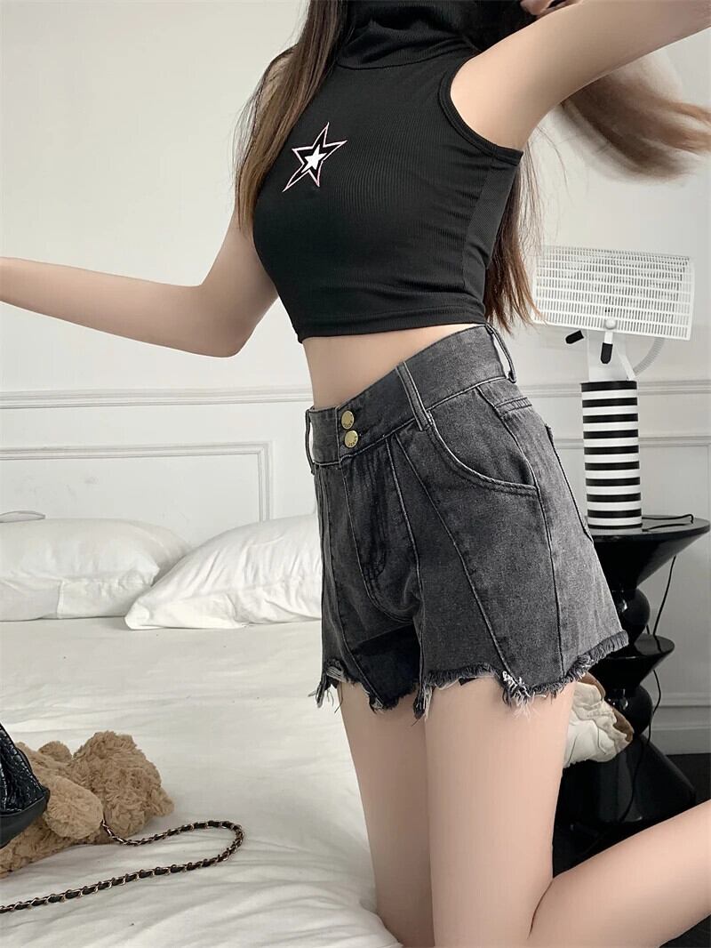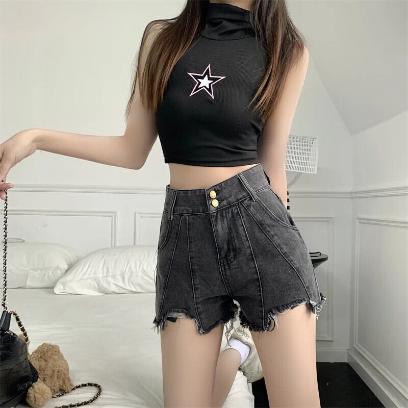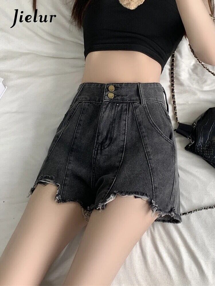 送料無料 Jielur 夏ウエストシックなデニム女性ジーンズブルーブラックスリムルーズ A ラインショーツ無地ライトジーンズ サマー 夏物 ブルマー Aライン ソリッドカラー AE12188787831272386742