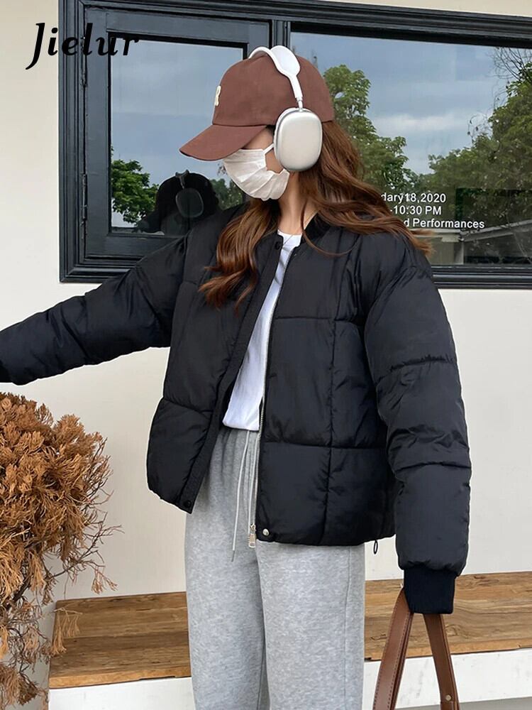 送料無料 Jielur 無地 Clic ルーズシックなジッパー暖かいパーカーポケットベーシックシンプル 4 色の女性パーカー ソリッドカラー AE1218878788265196575