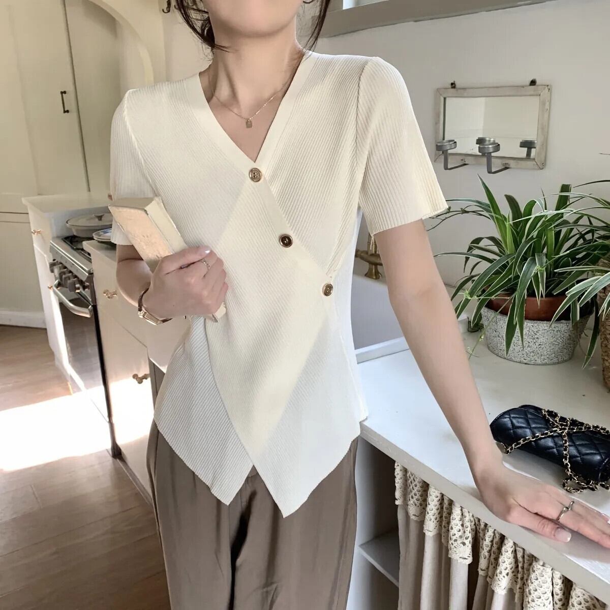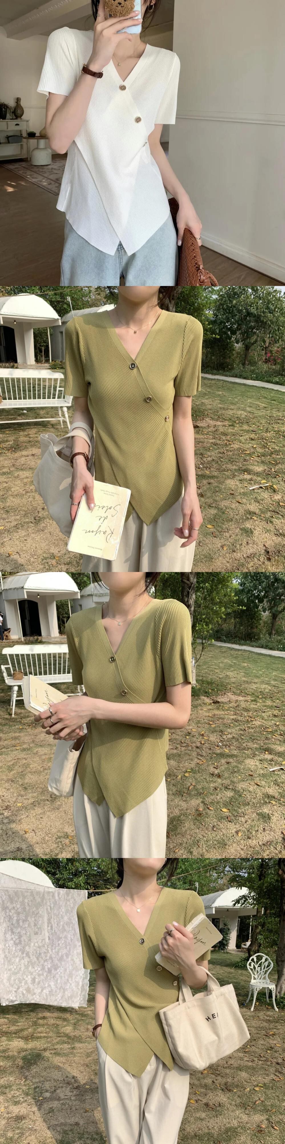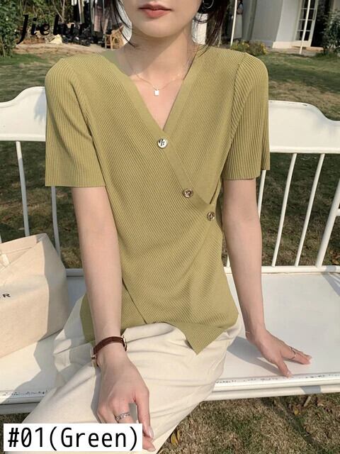 送料無料 Jielur 夏スリムフィットニット女性シャツ無地甘いシンプルなベーシックシャツ女性黒、白アプリコットグリーントップ ホワイト ブラック 大人ガーリー スウィート キュート カジュアル サマー 夏物 ソリッドカラー AE1218878786985591800