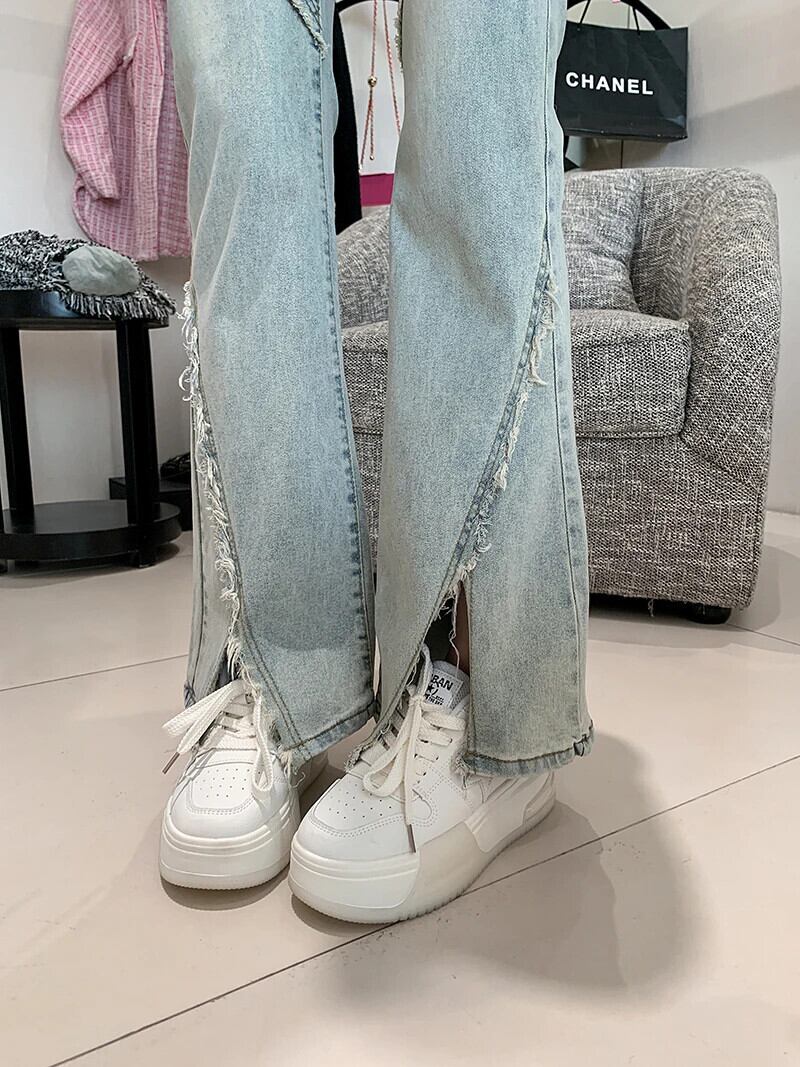 送料無料 Jielur スプリットフレアジーンズ女性ウエストスキニーストレートデニムパンツレースアップジーンズストリート Y2k ジーンズ AE12188787883100085142