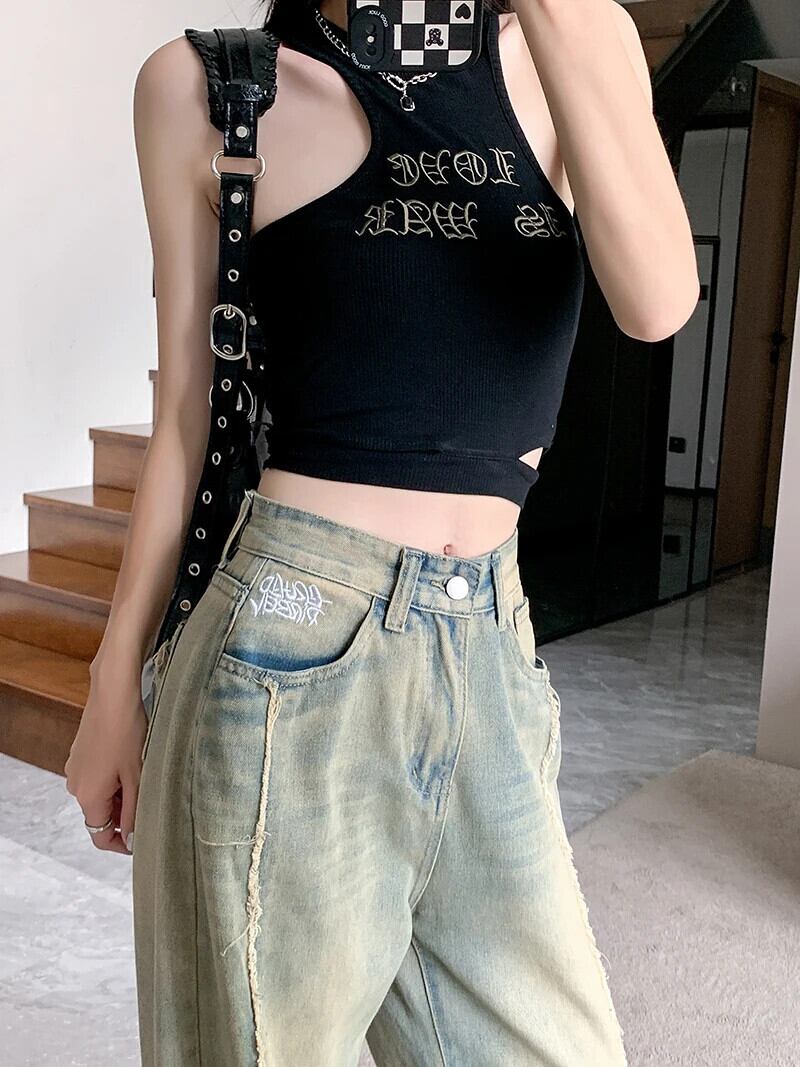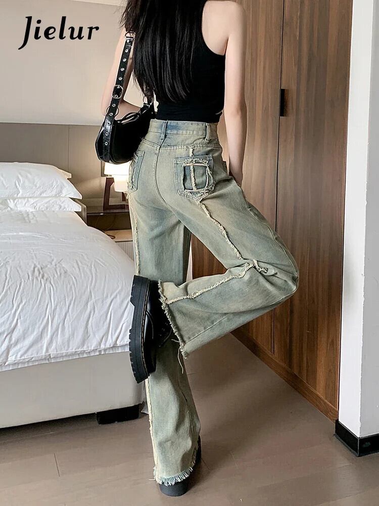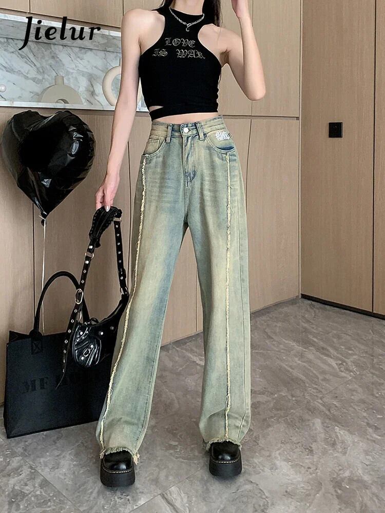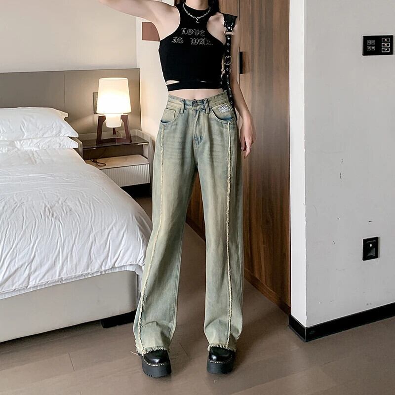 送料無料 Jielur だぶだぶのジーンズ刺繍ルーズジーンズ女性の夏のウエストレトロストレートデニムパンツ女性ワイドレッグジーンズ Y2k レッド サマー 夏物 ワイドパンツ AE12188787855430728565