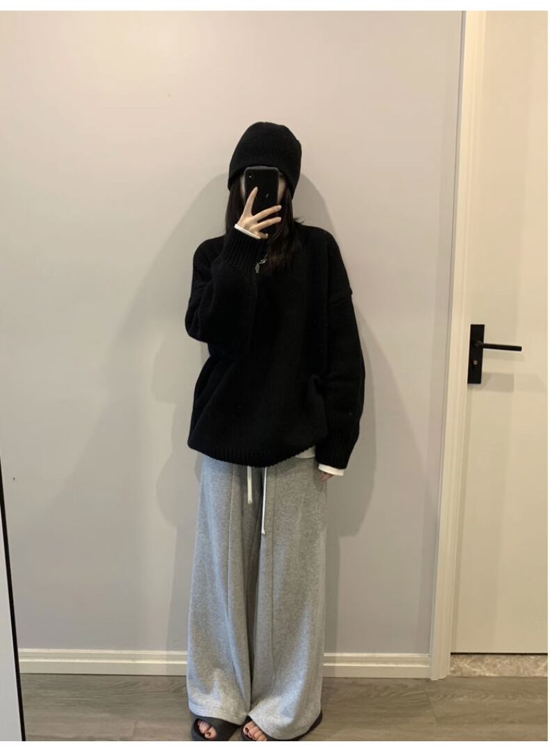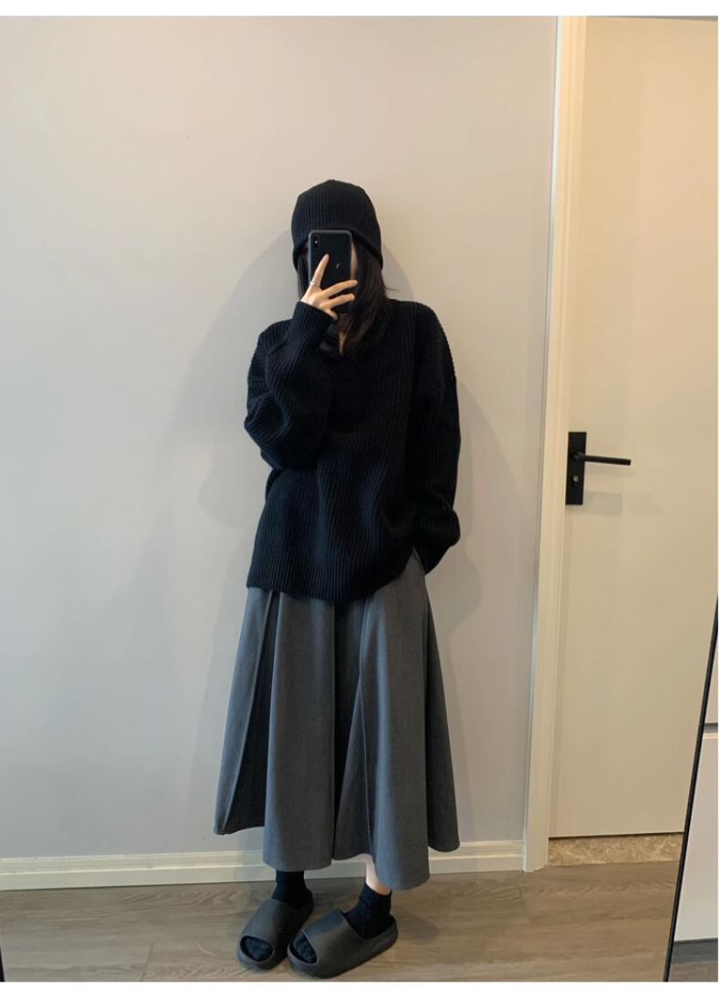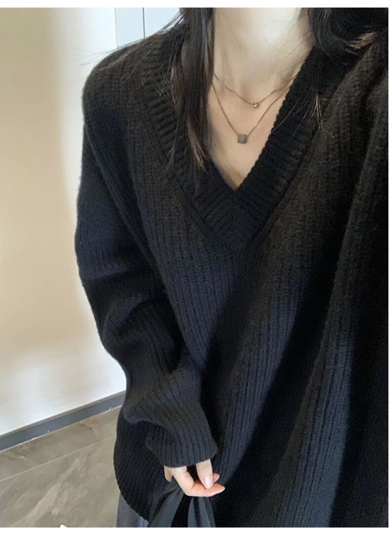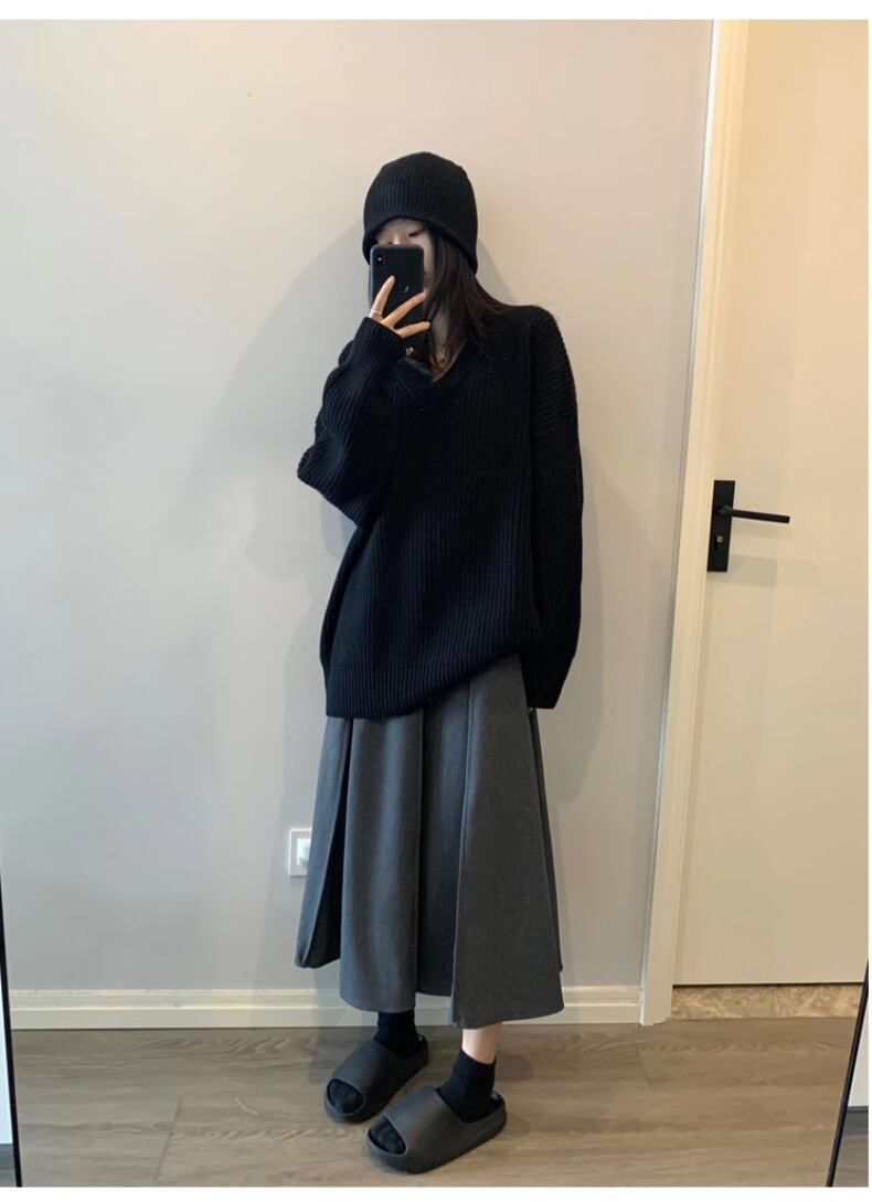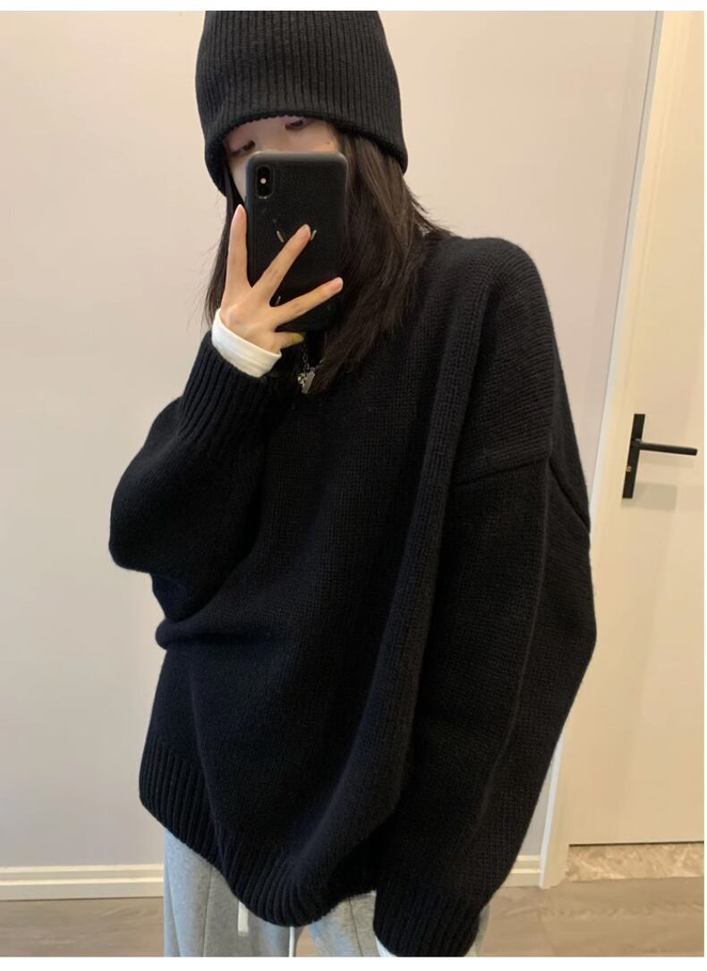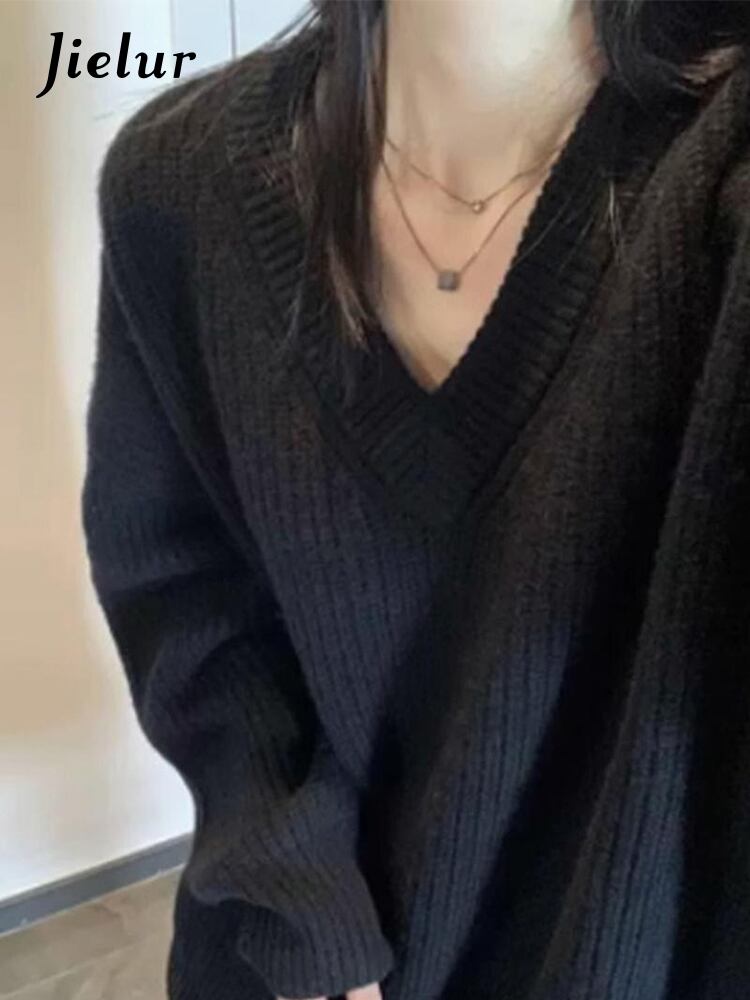 送料無料 Jielur 秋無地スリムシックな女性プルオーバーシンプルなベーシックストリートプルオーバー女性黒ルーズセーター ブラック オータム 秋物 ソリッドカラー AE12188787852055097001