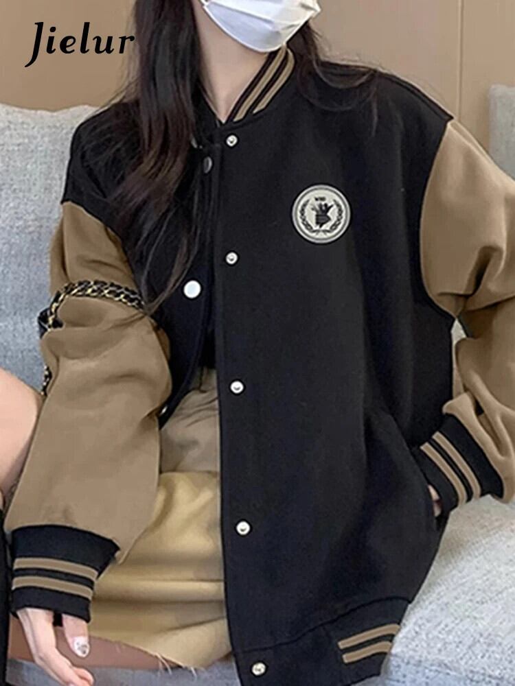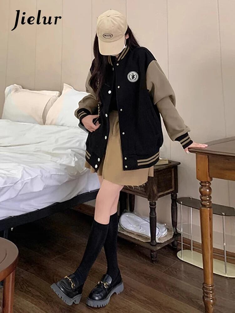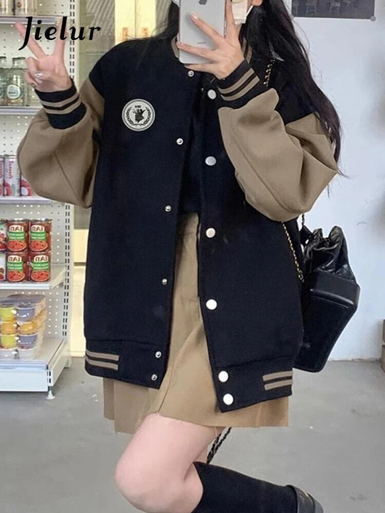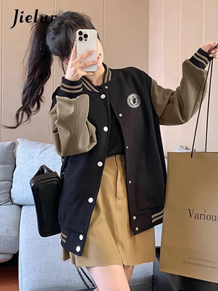 送料無料 Jielur アメリカンレトロ秋の基本イン女性ジャケットルーズスリム Chicly ジャケット女性黒ストリートトップ ブラック オータム 秋物 AE12188787827392808323